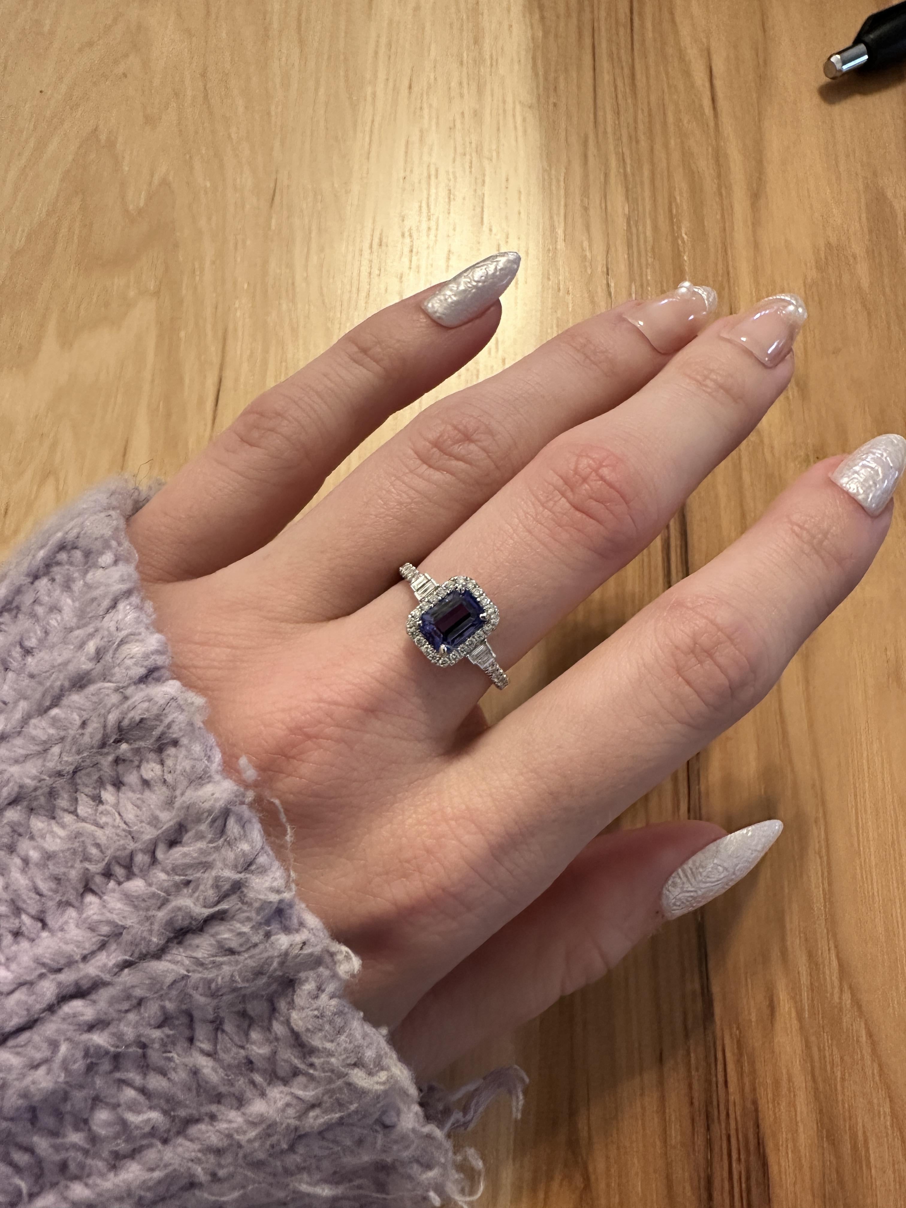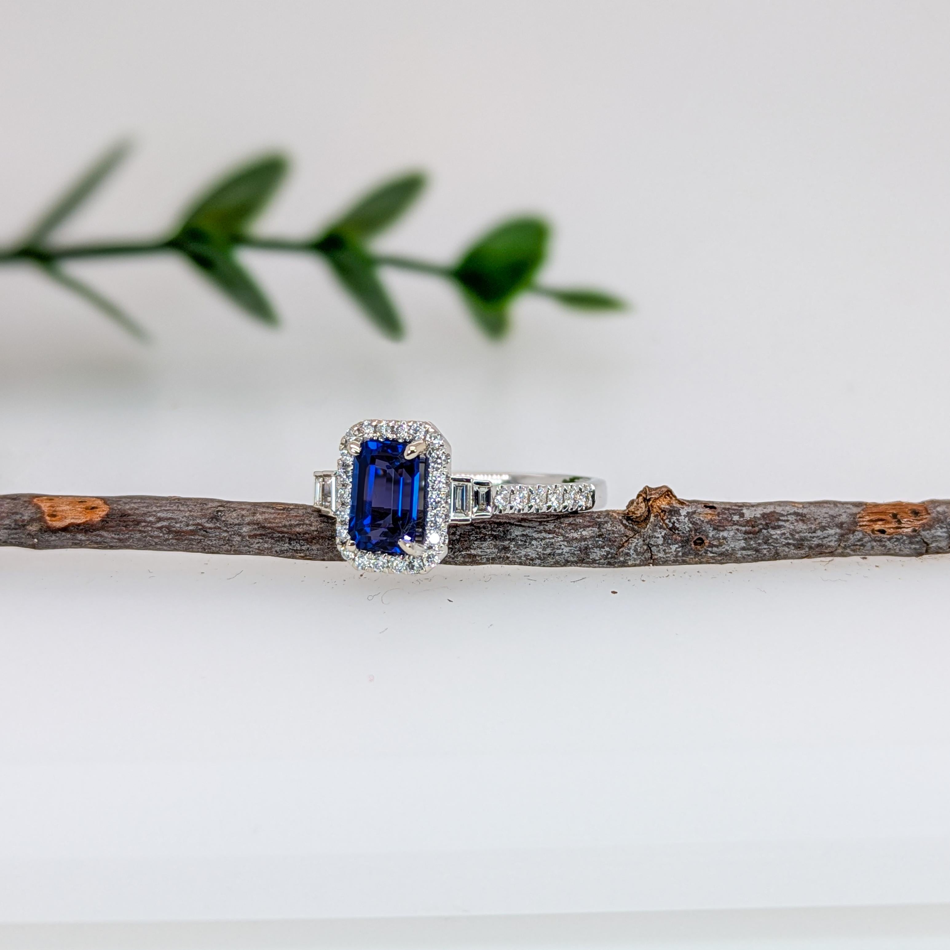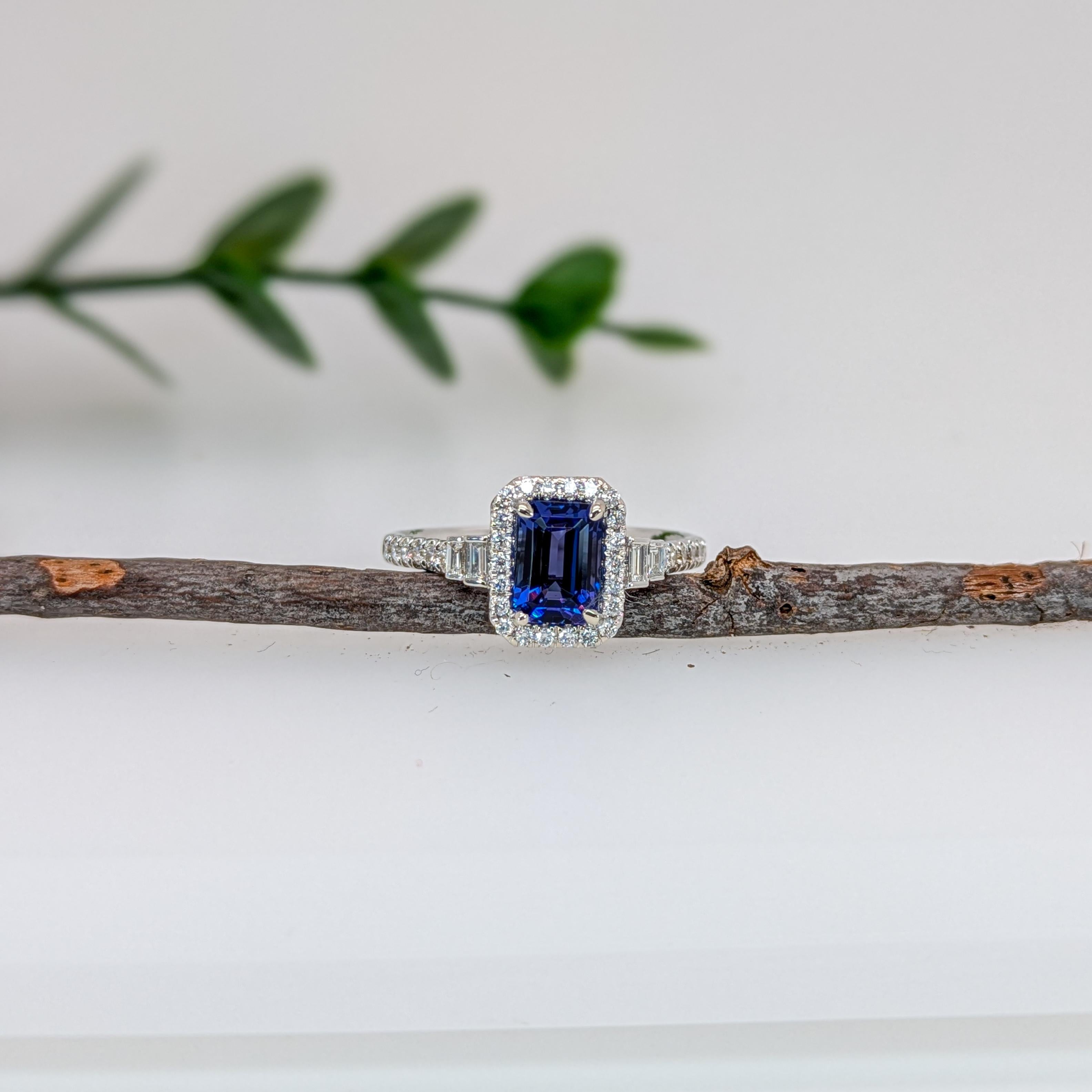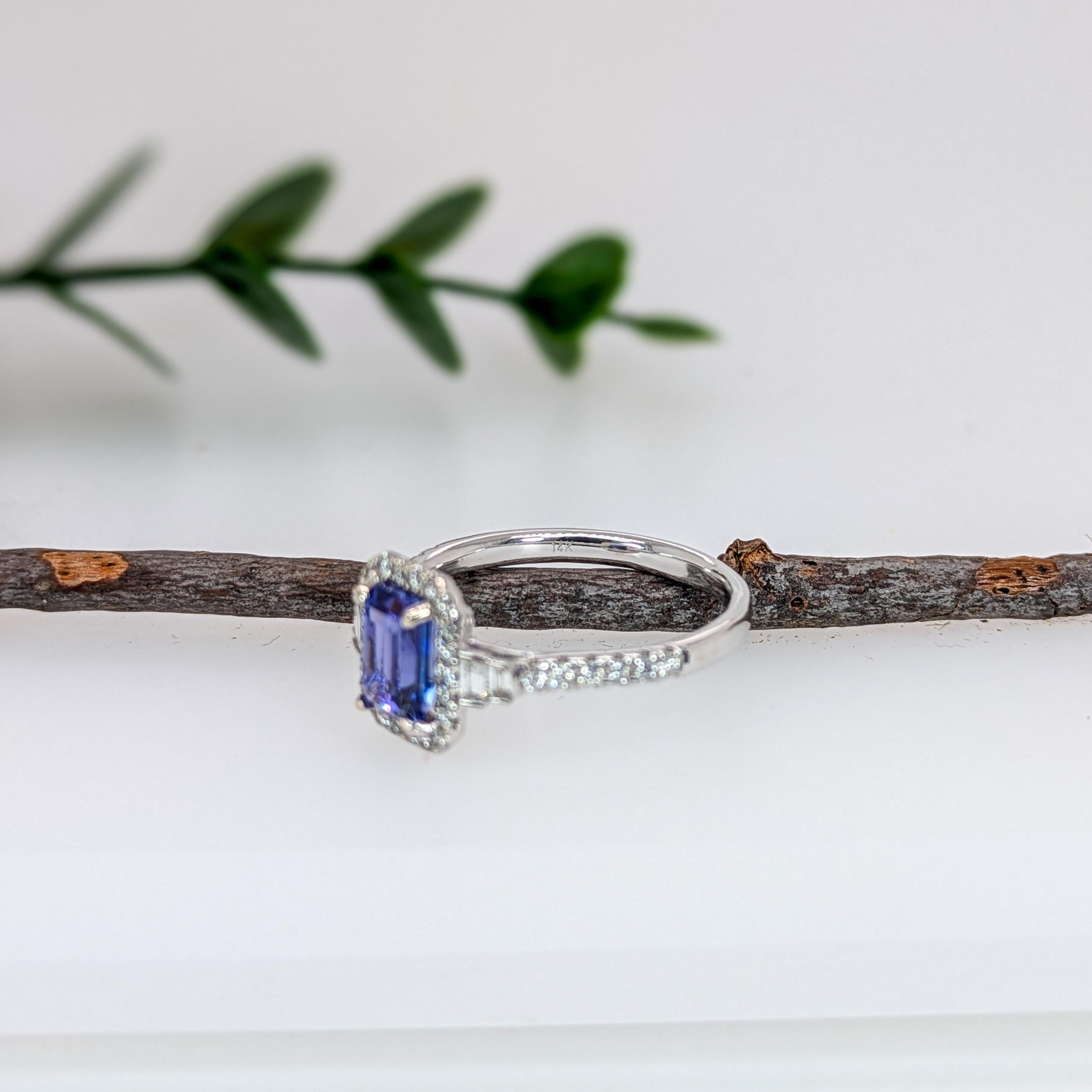 1.2ct Tanzanite Ring w Earth Mined Diamonds in Solid 14K White Gold | EM 7x5mm