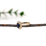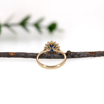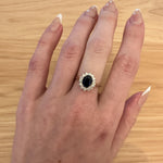 Introducing our Statement Princess Diana Inspired Blue Sapphire Ring in 14K Yellow Gold. Featuring a 1.4ct Sapphire and a natural diamond halo, this ring adds a touch of elegance to any outfit. Make a statement with this unique piece.