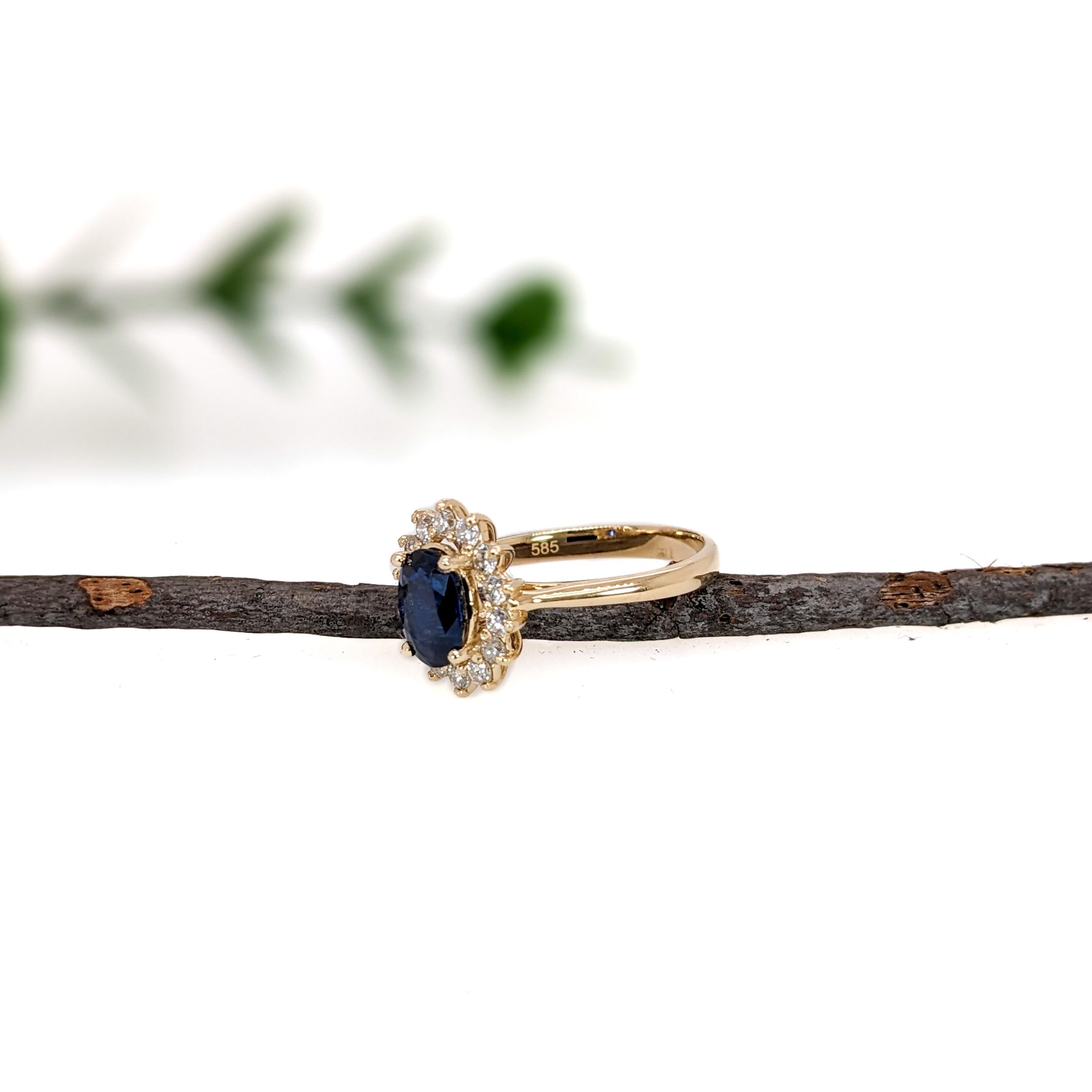 Alice 1.4cts Sapphire Ring w Natural Diamond Halo in 14K Yellow Gold | Oval 8x6mm