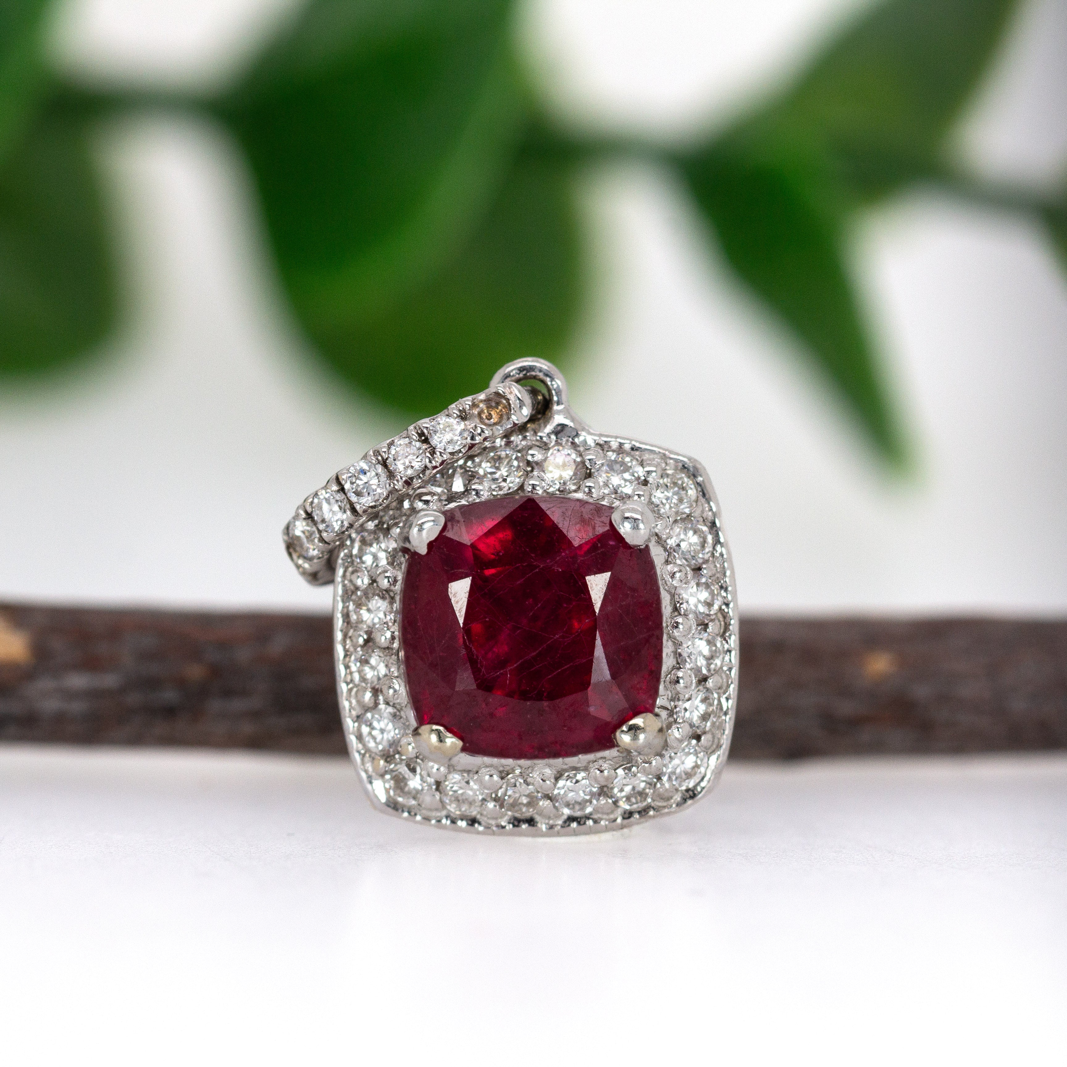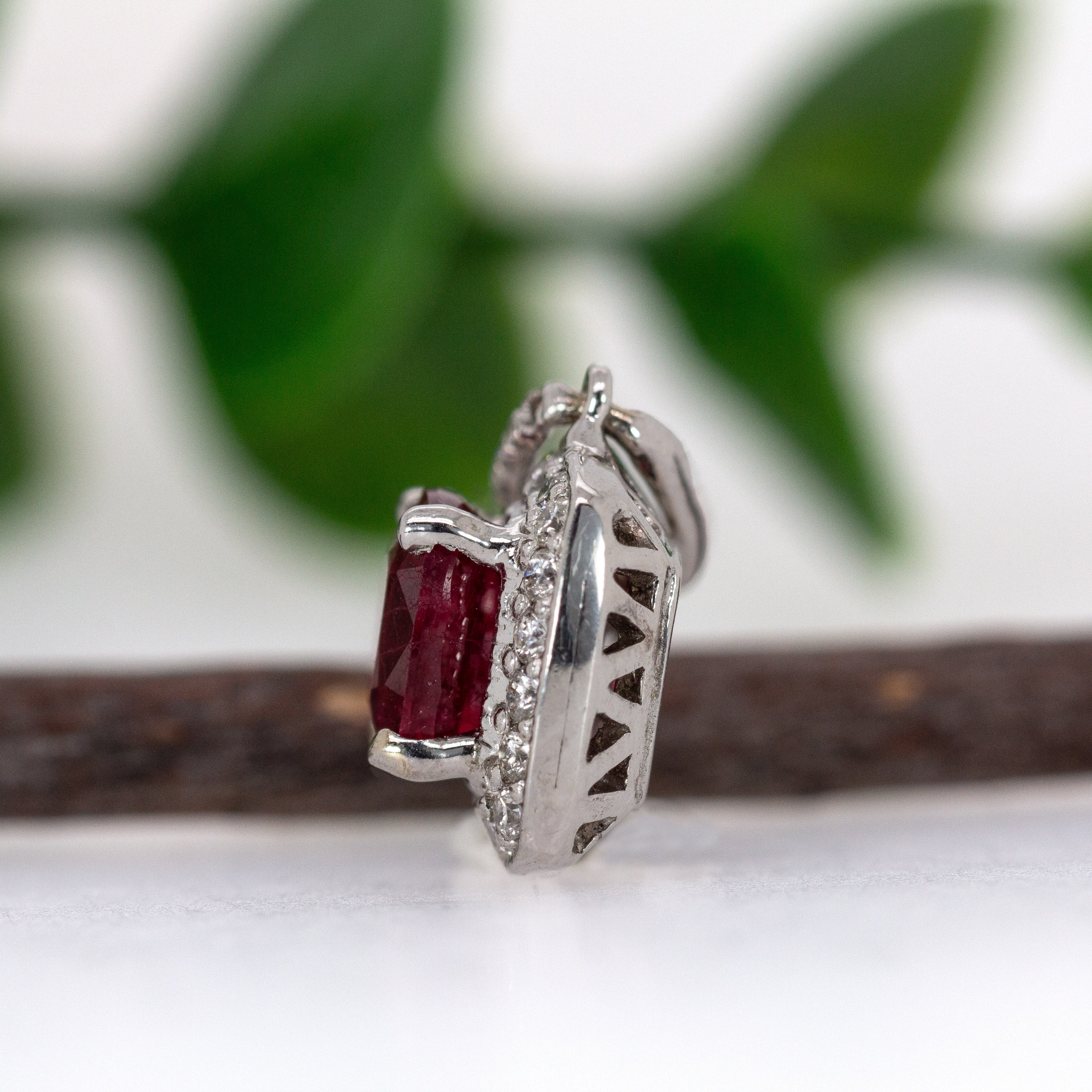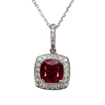 14K White Gold 1.24ct Madagascar Ruby and Natural Diamond Halo Pendant