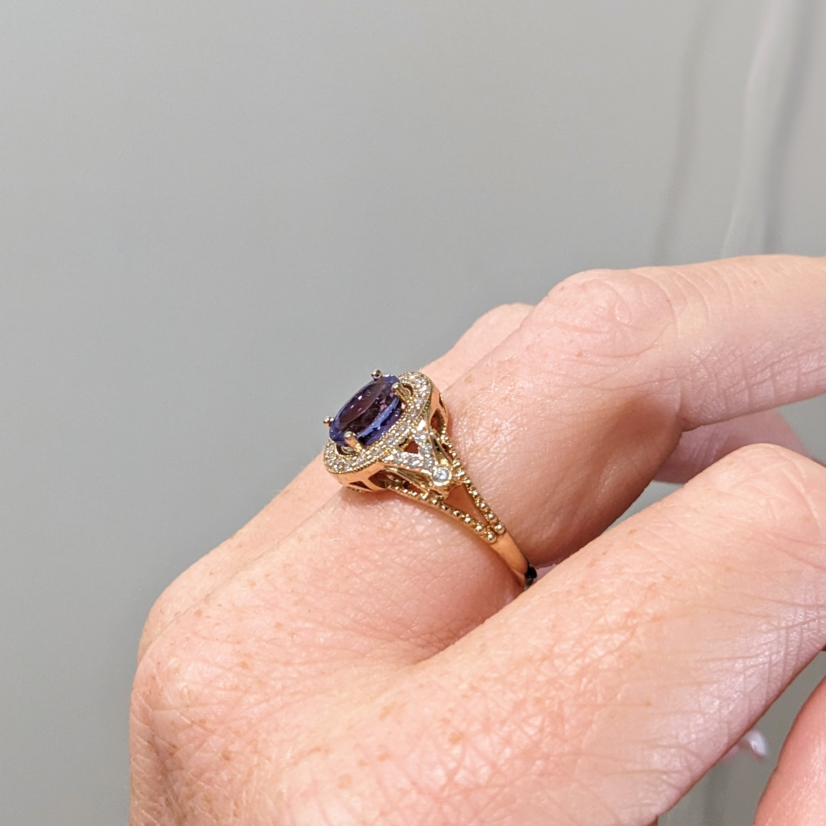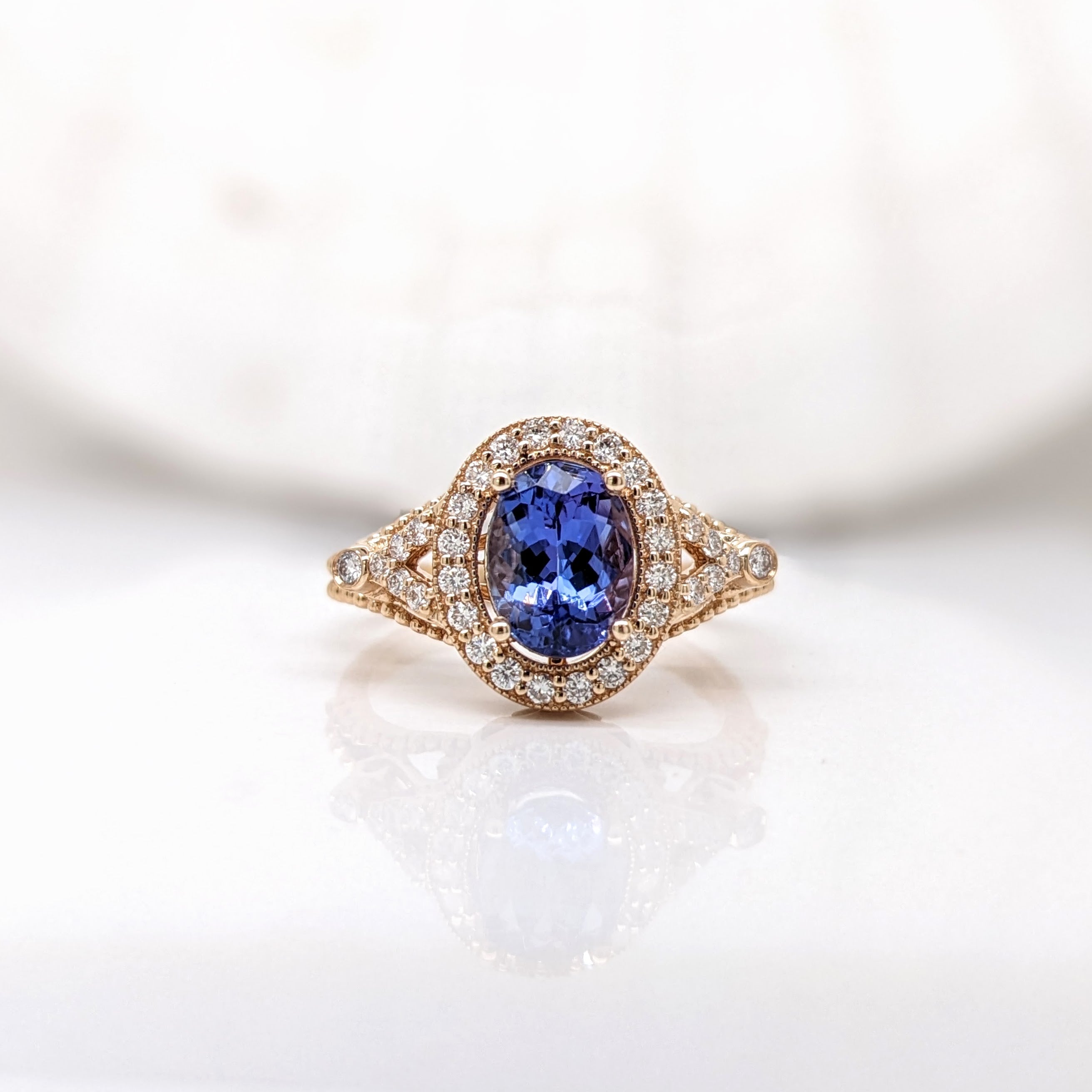 1.5ct Tanzanite Ring w Earth Mined Diamonds in Solid 14K Yellow Gold | Oval 8x6mm