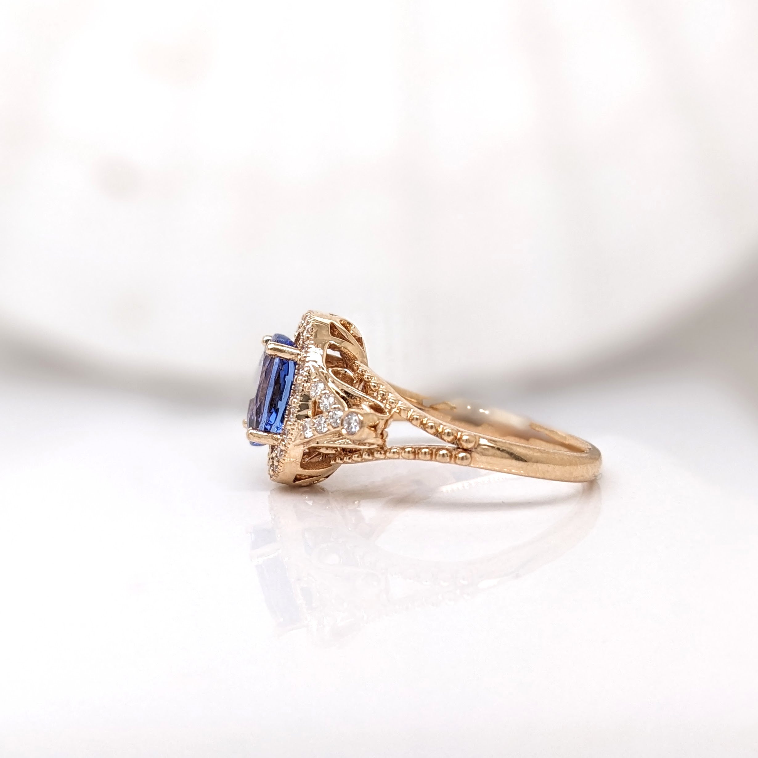 This beautiful ring features a 1.52 carat Tanzanite gemstone with natural earth mined diamonds and milgrain detail, all set in solid 14K gold. This Tanzanite ring makes a lovely December birthstone gift for your loved ones!