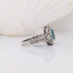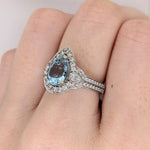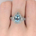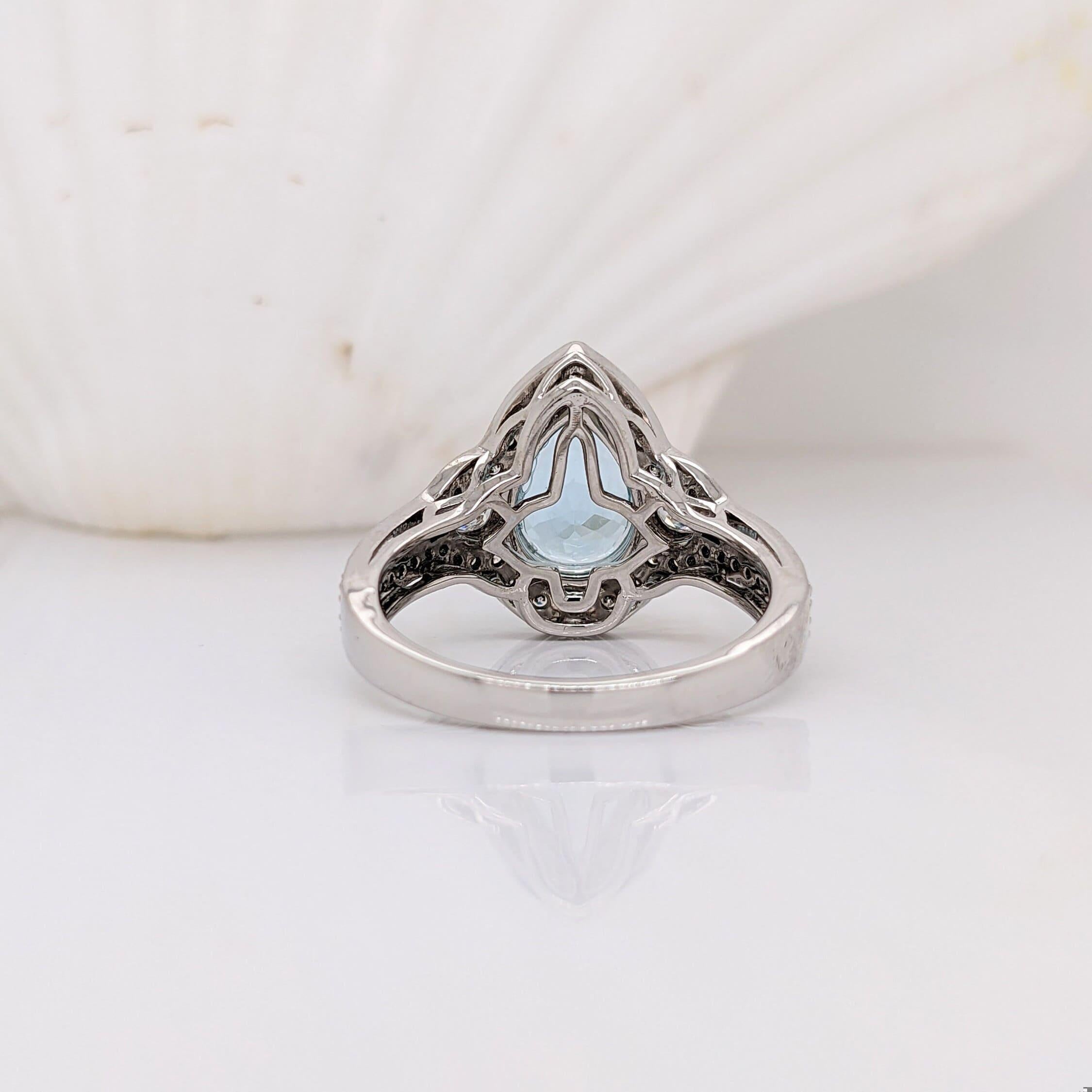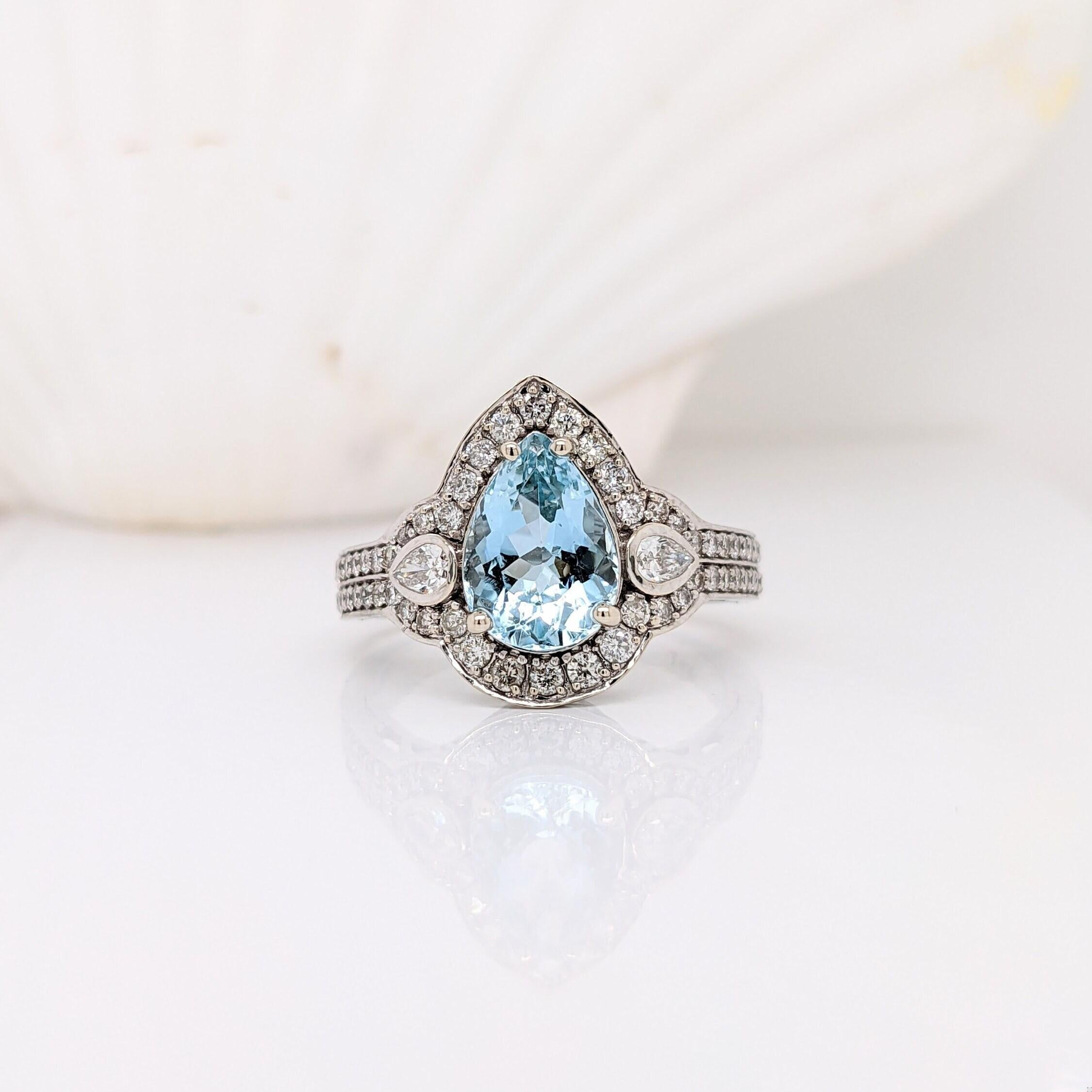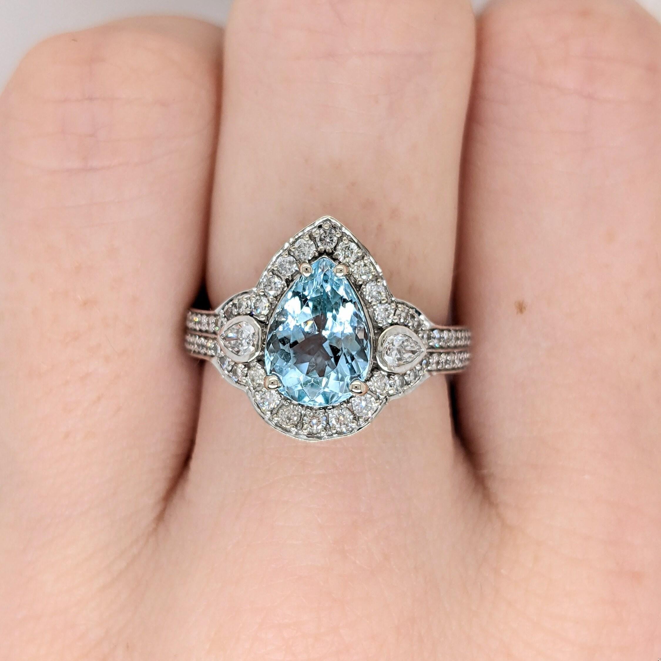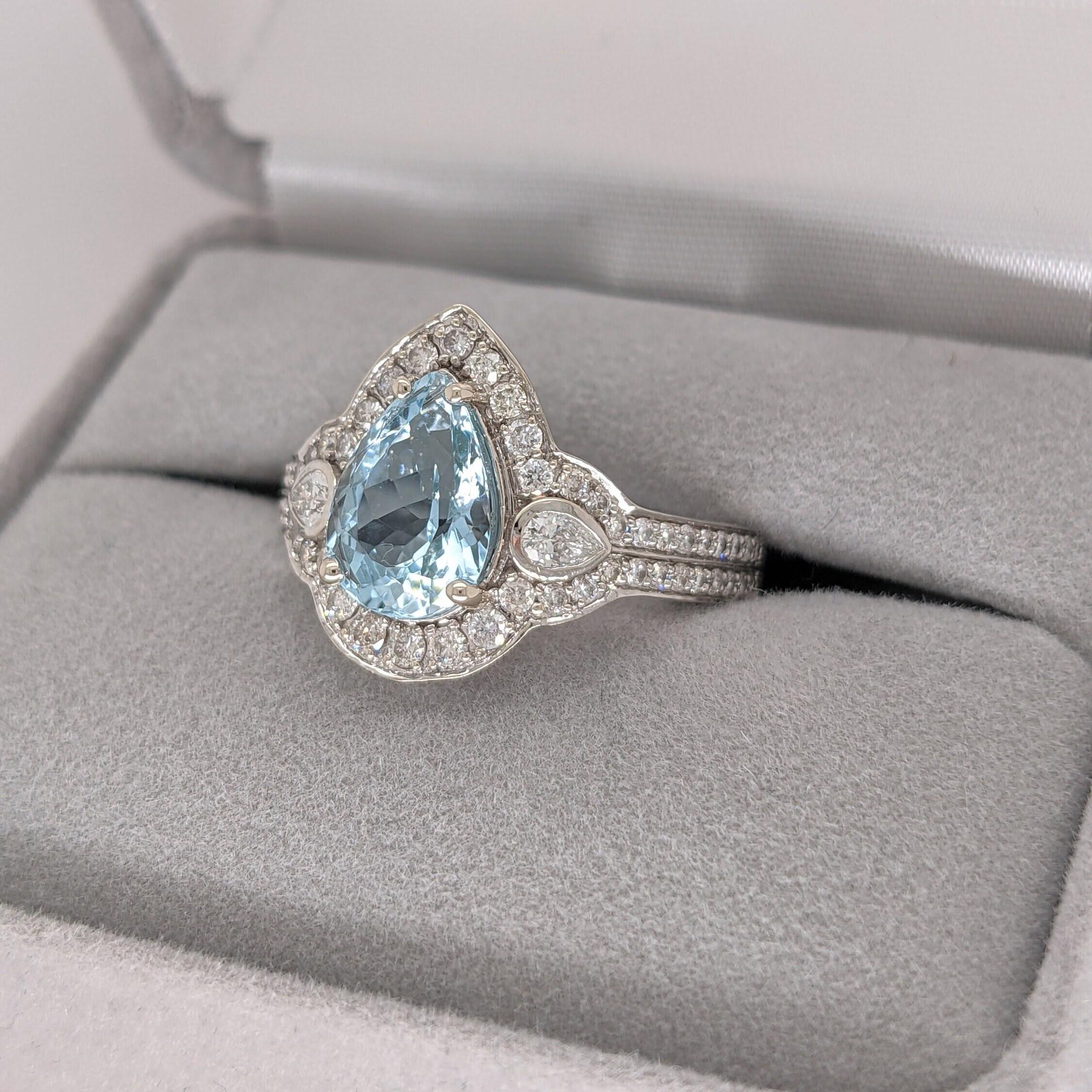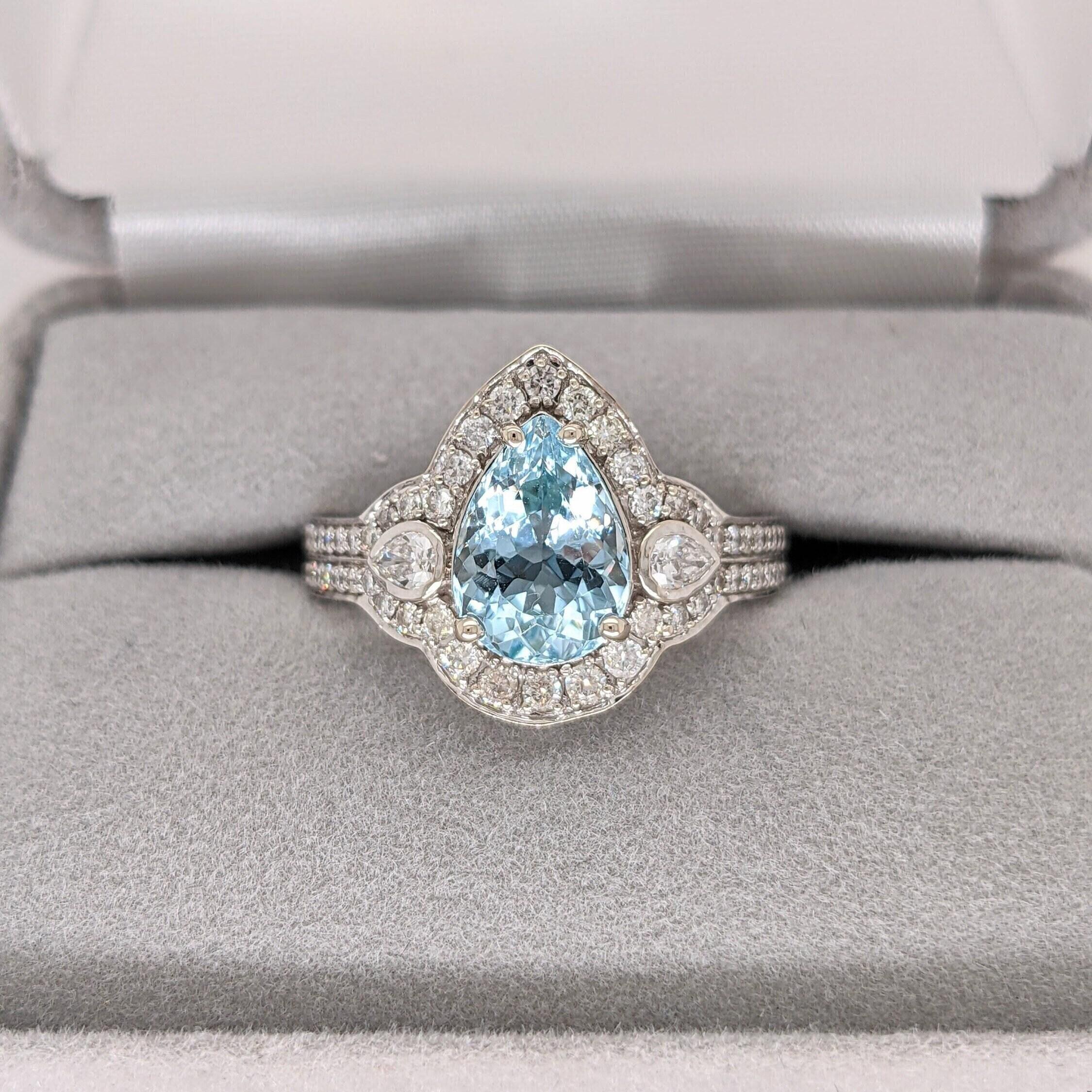 1.6ct Santa Maria Aquamarine Ring w Natural Diamonds in Solid 14K White Gold | Pear Shape 10x7mm | March Birthstone