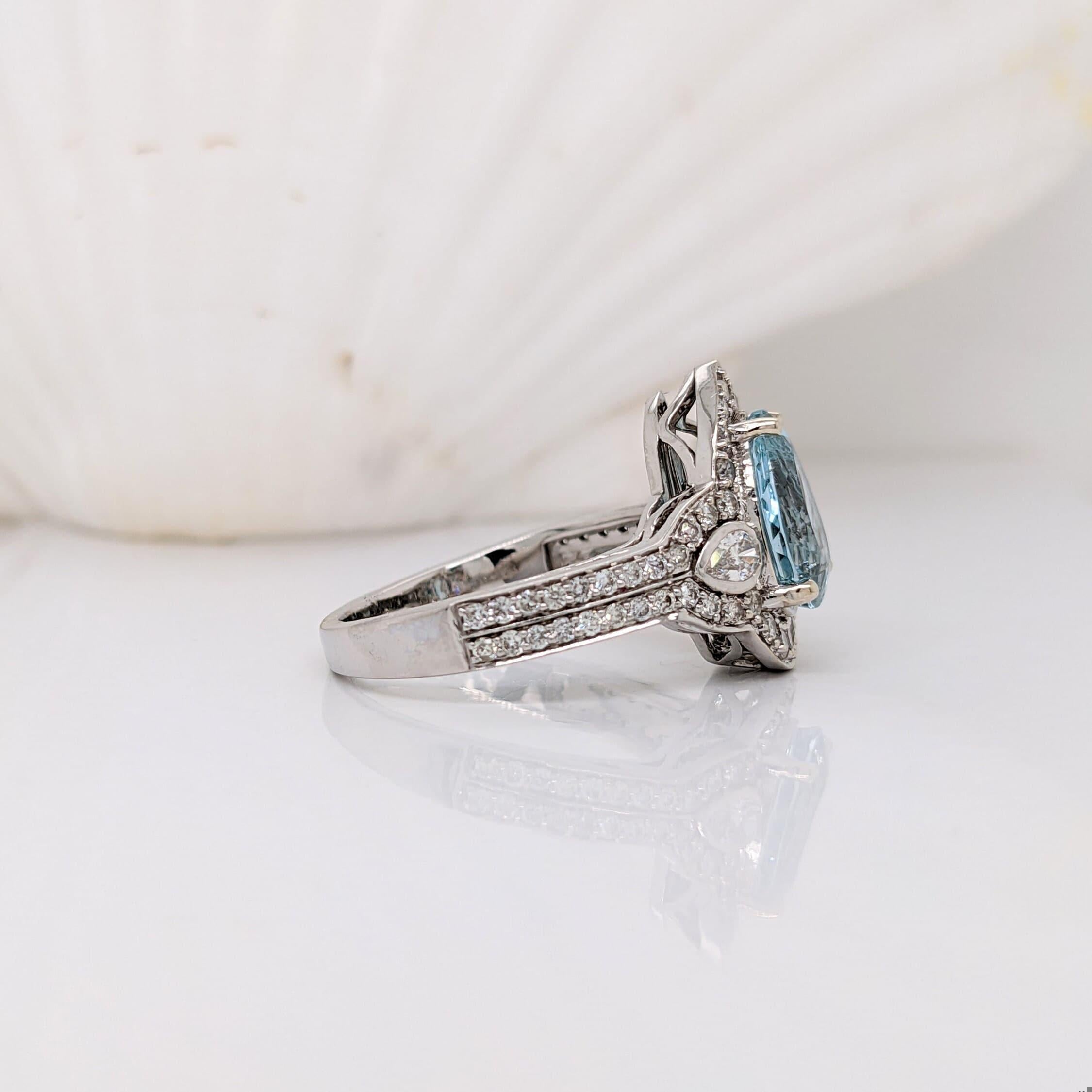 1.6ct Santa Maria Aquamarine Ring w Natural Diamonds in Solid 14K White Gold