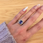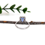 1.6ct Tanzanite Ring w Mixed Diamond Halo in Solid 14K White Gold | EM 8x6mm