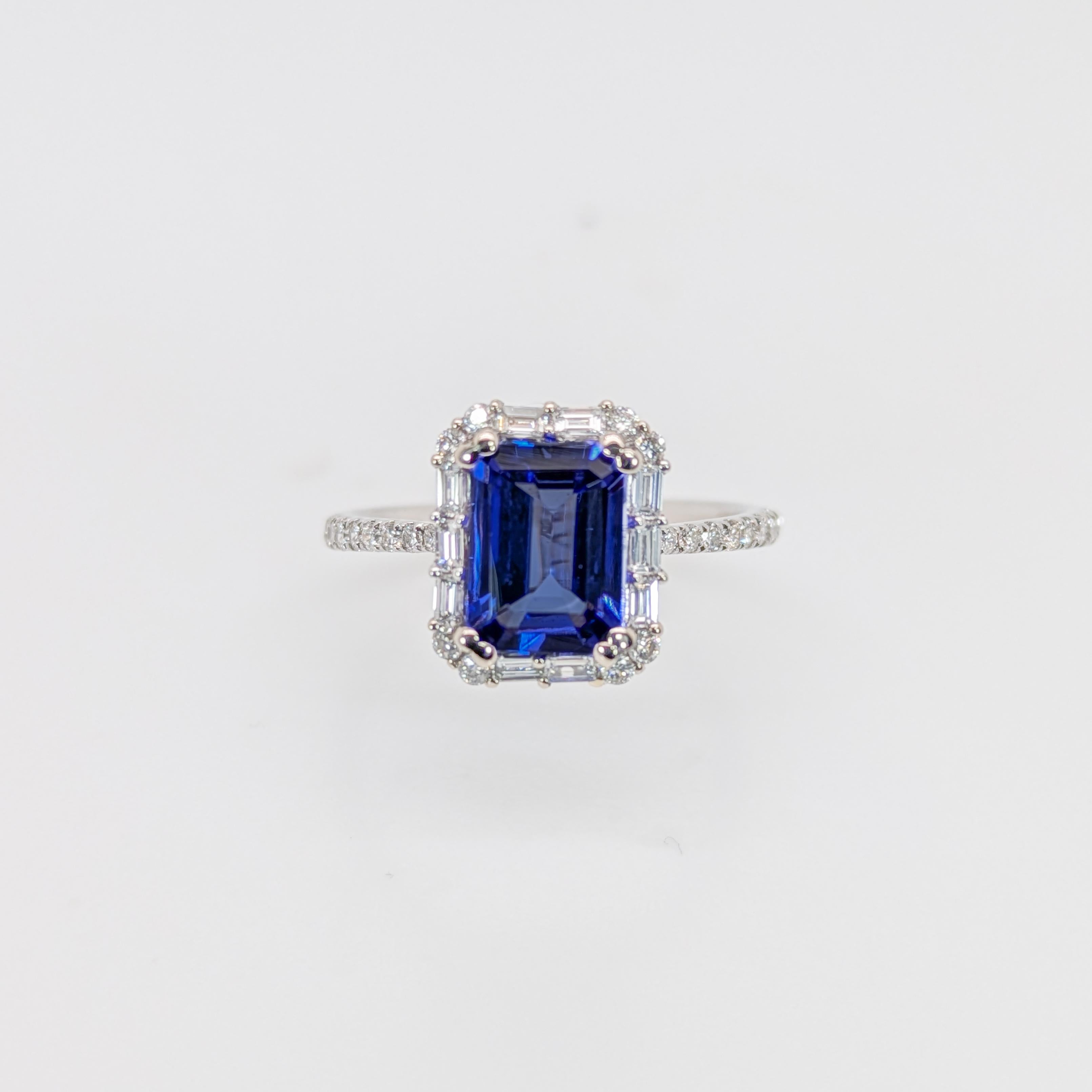 Elevate your style with our 1.6ct Tanzanite Ring. Crafted in solid 14K white gold, it showcases a stunning emerald cut 8x6mm Tanzanite stone and sparkling baguette diamonds sourced from the earth. This Tanzanite ring makes a beautiful December birthstone gift for your loved ones!