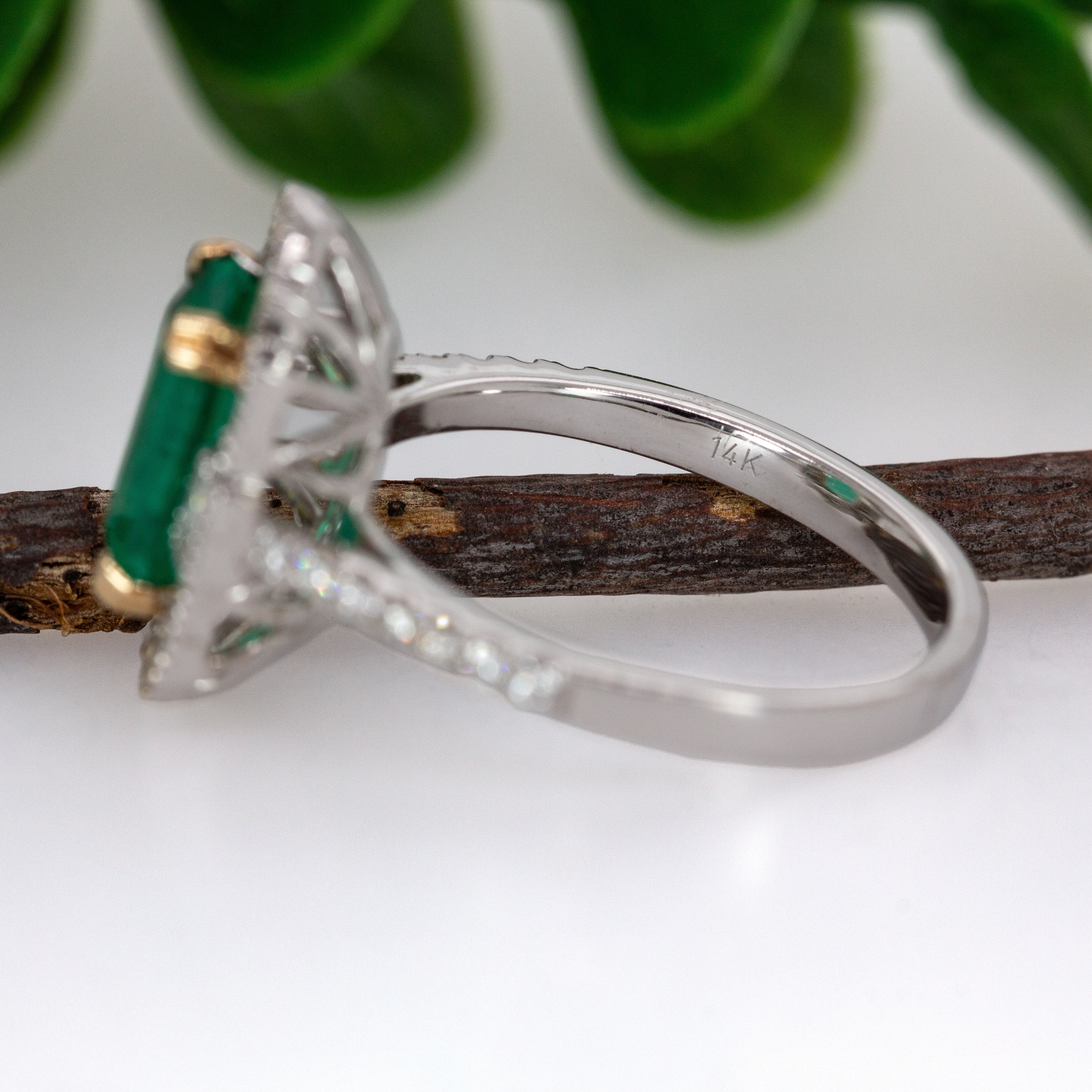 1.8ct Colombian Emerald Ring w Natural Diamond Accents in 14K Gold | EM 9x6mm