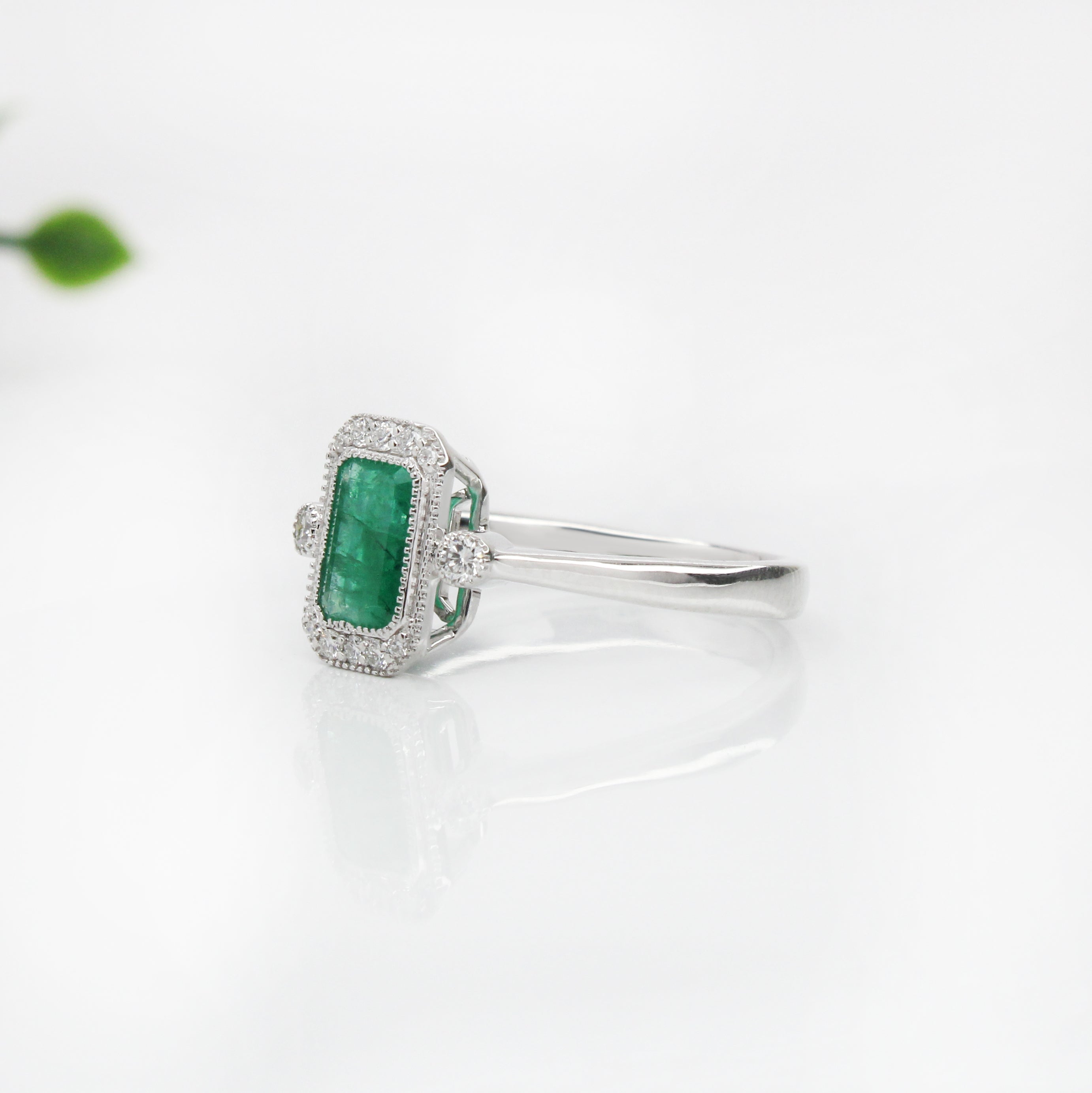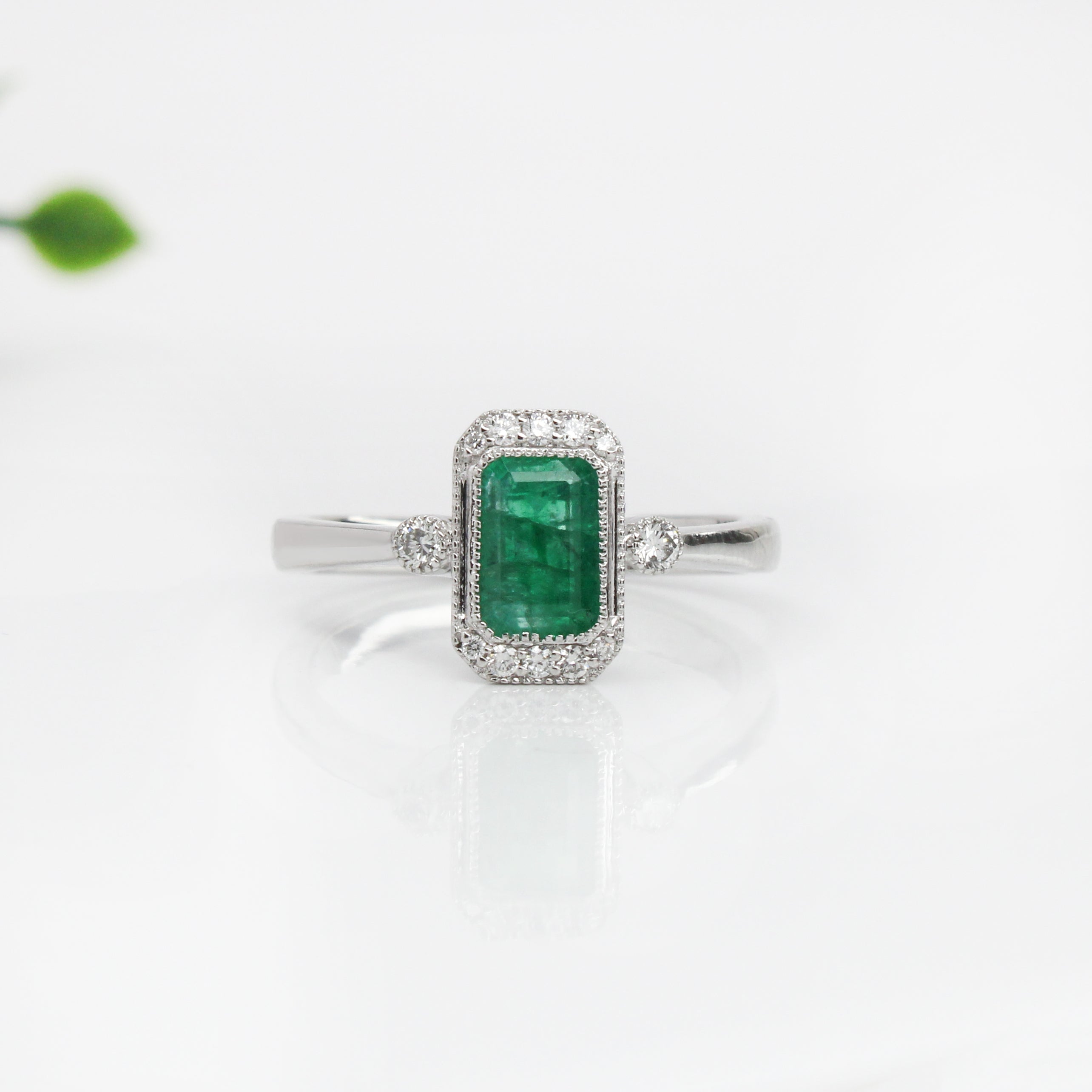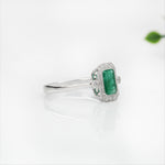 1ct Emerald Ring w Earth Mined Diamonds in Solid 14K White Gold | Emerald Cut 7x5mm