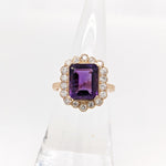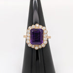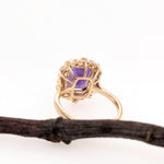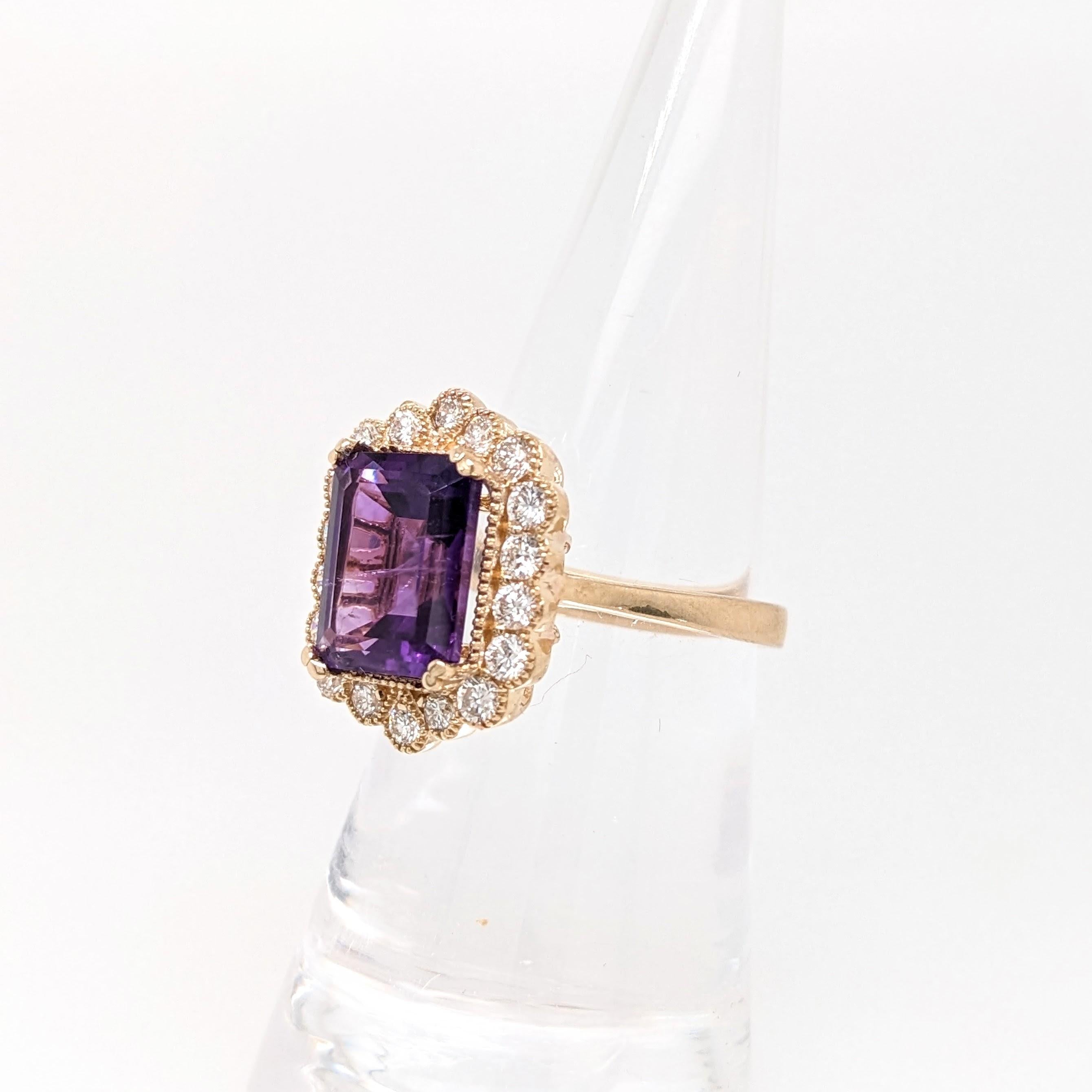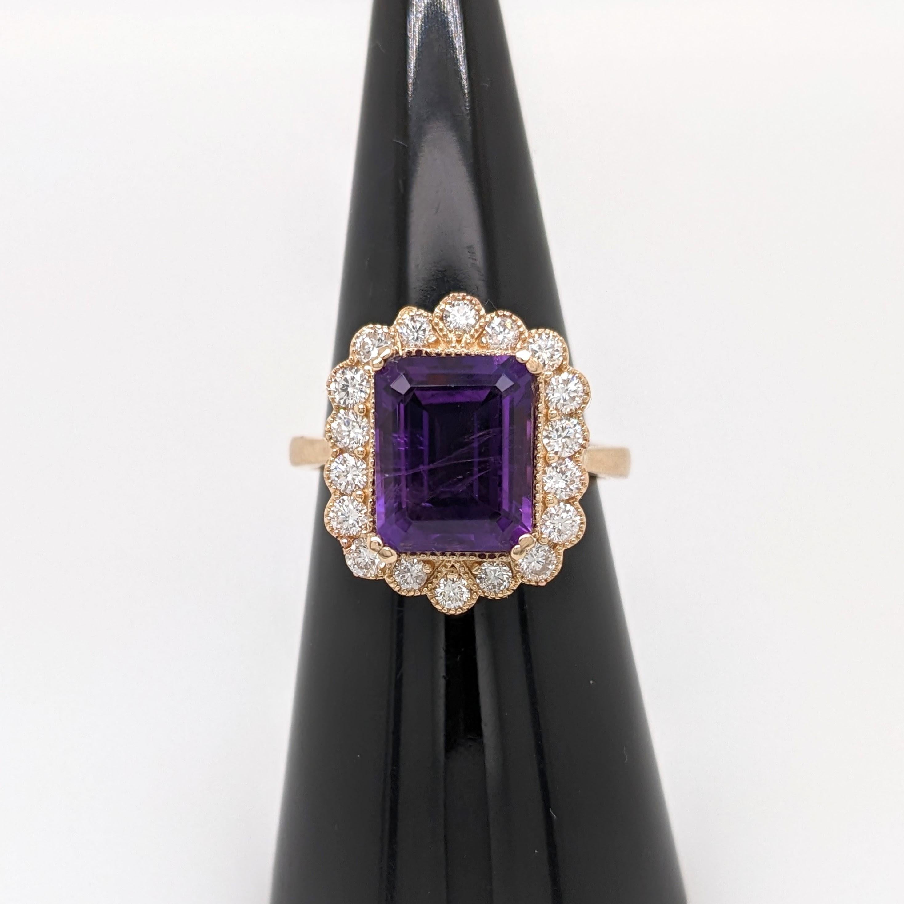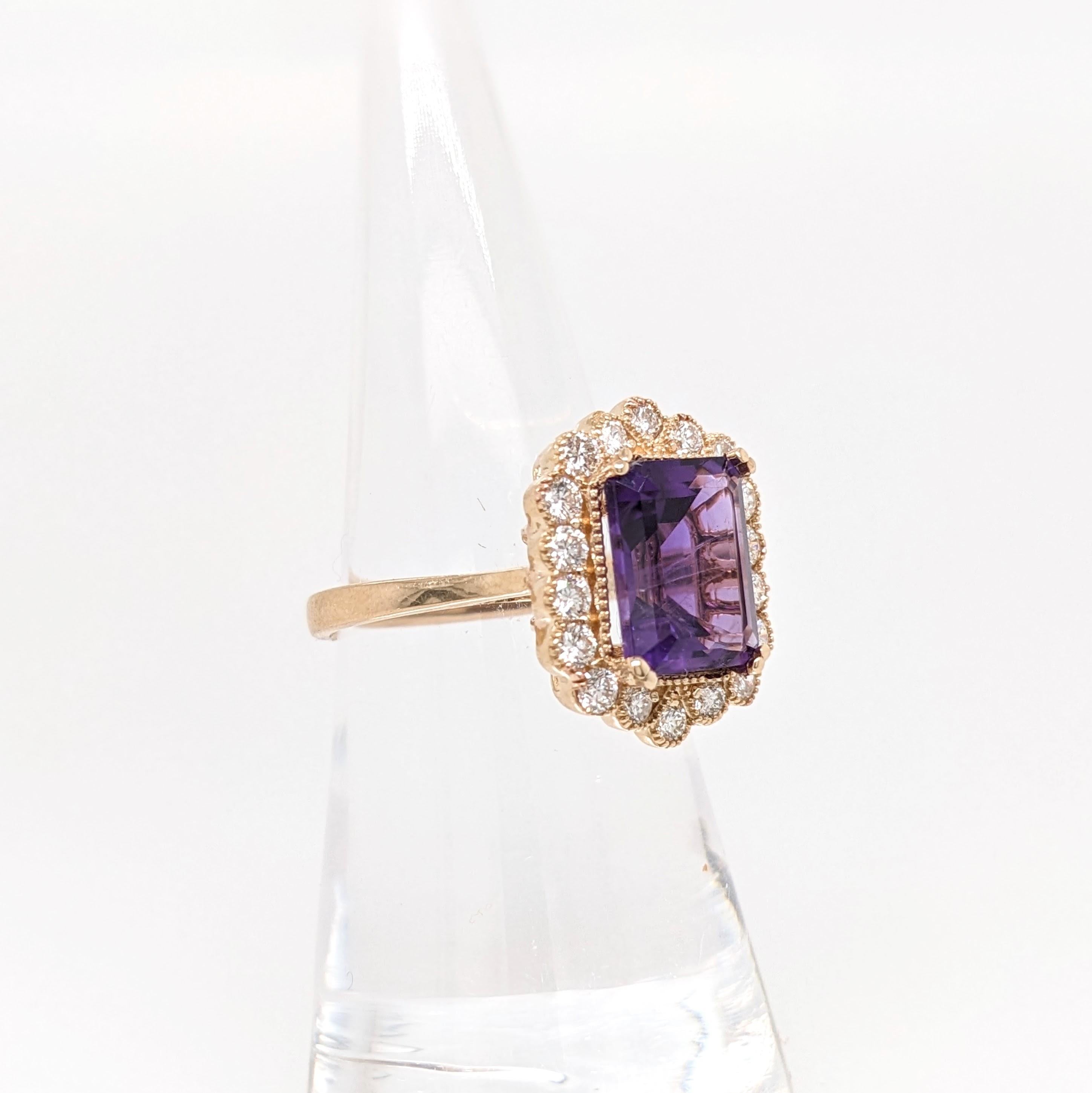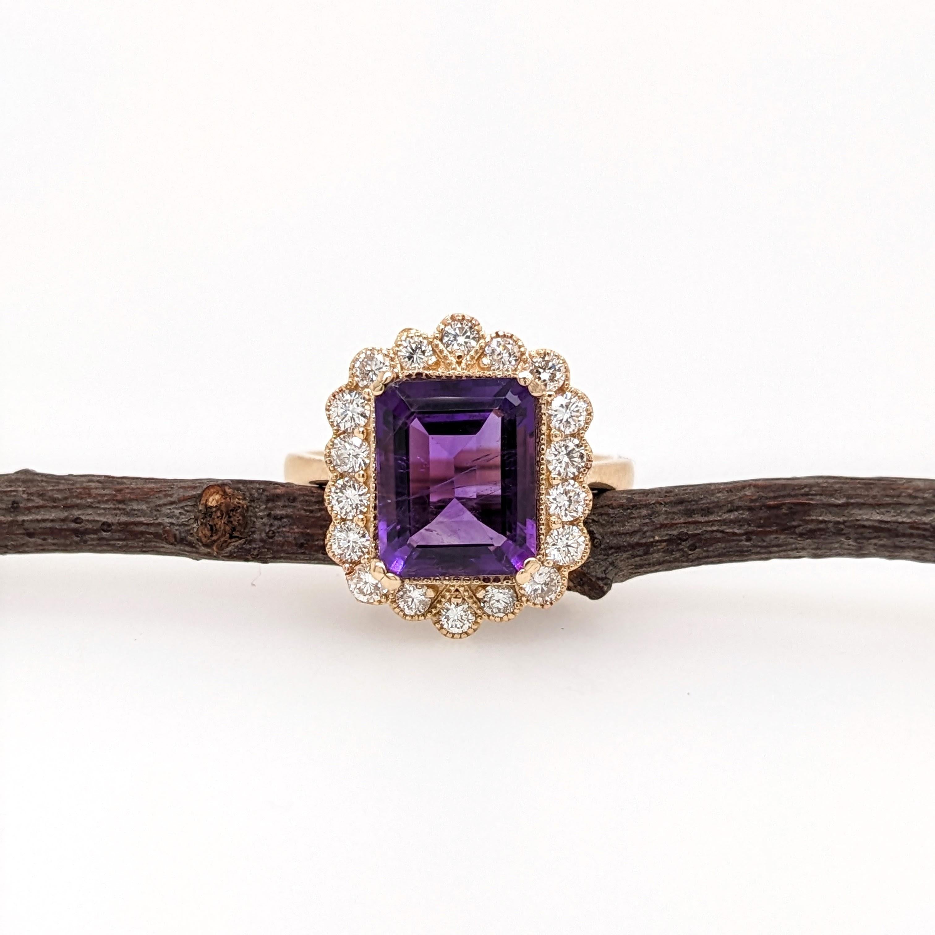 3.1ct Amethyst Ring w Earth Mined Diamonds in Solid 14K Yellow Gold EM 11x8mm