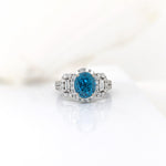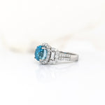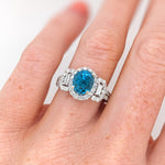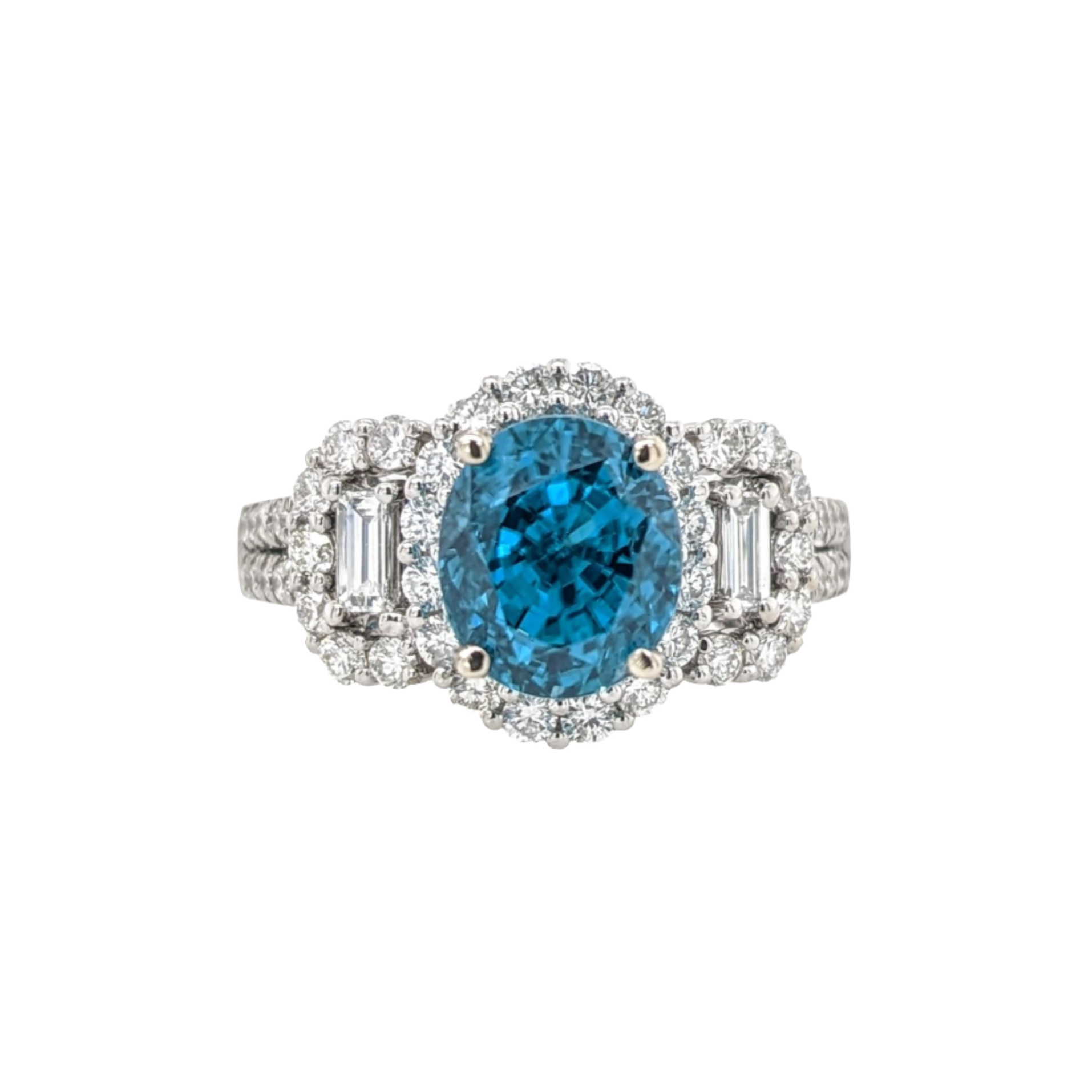This beautiful ring features a 4.13 carat oval Blue Zircon gemstone with natural earth mined diamonds set in solid 14K gold. This ring makes a lovely December birthstone gift for your loved ones!