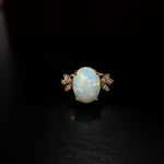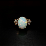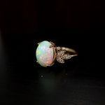 4.6ct Opal Ring w Earth Mined Diamonds in Solid 14k Rose Gold | Oval 14x10mm | October Birthstone
