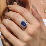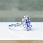 4ct Tanzanite Ring w Earth Mined Diamonds in Solid 14k White Gold | EM 11.5x7mm