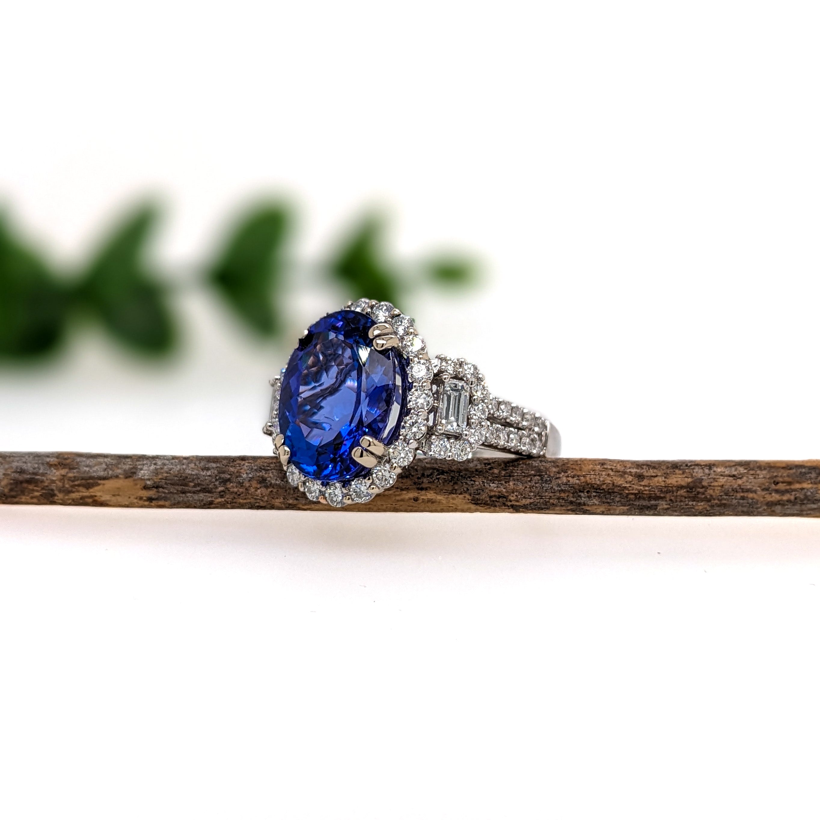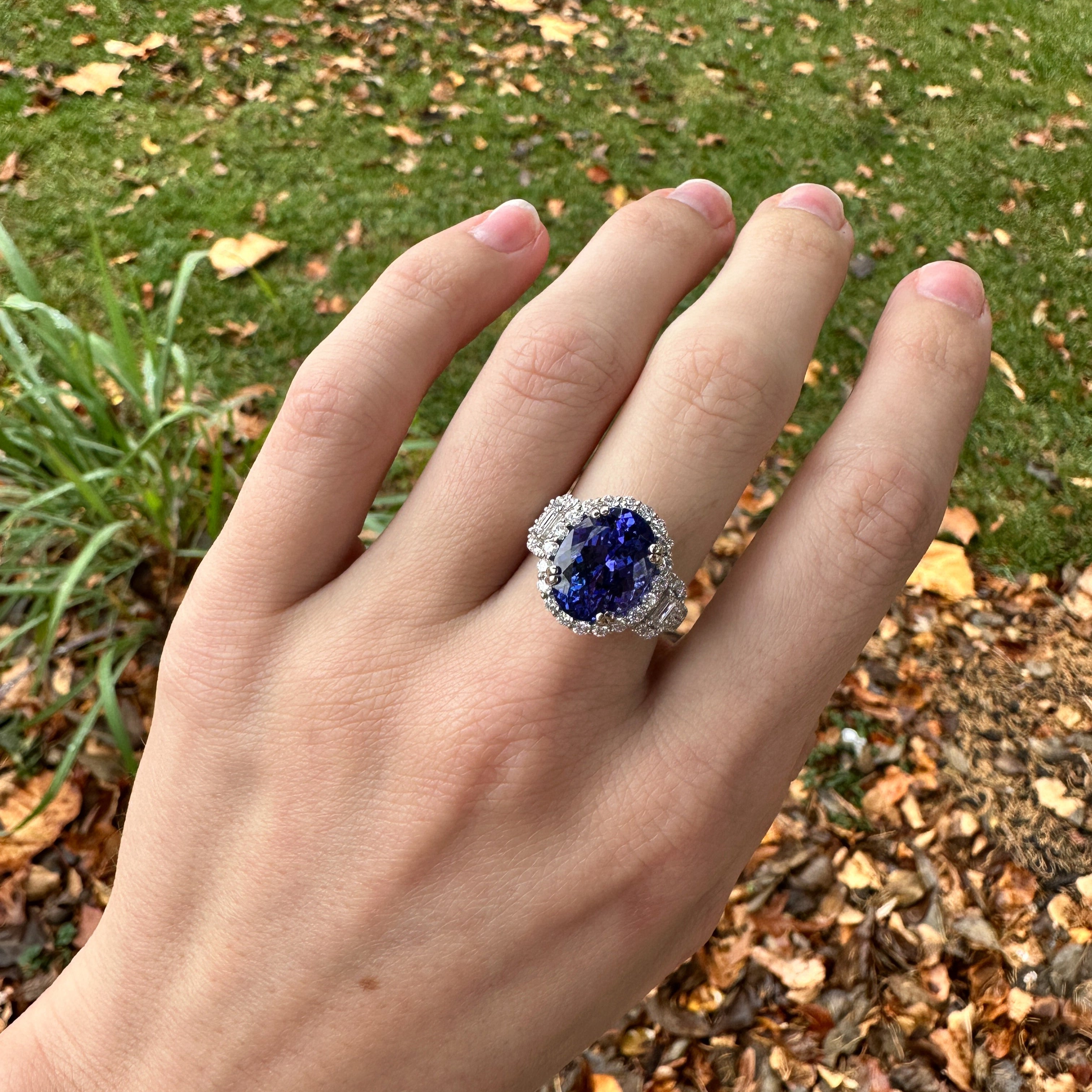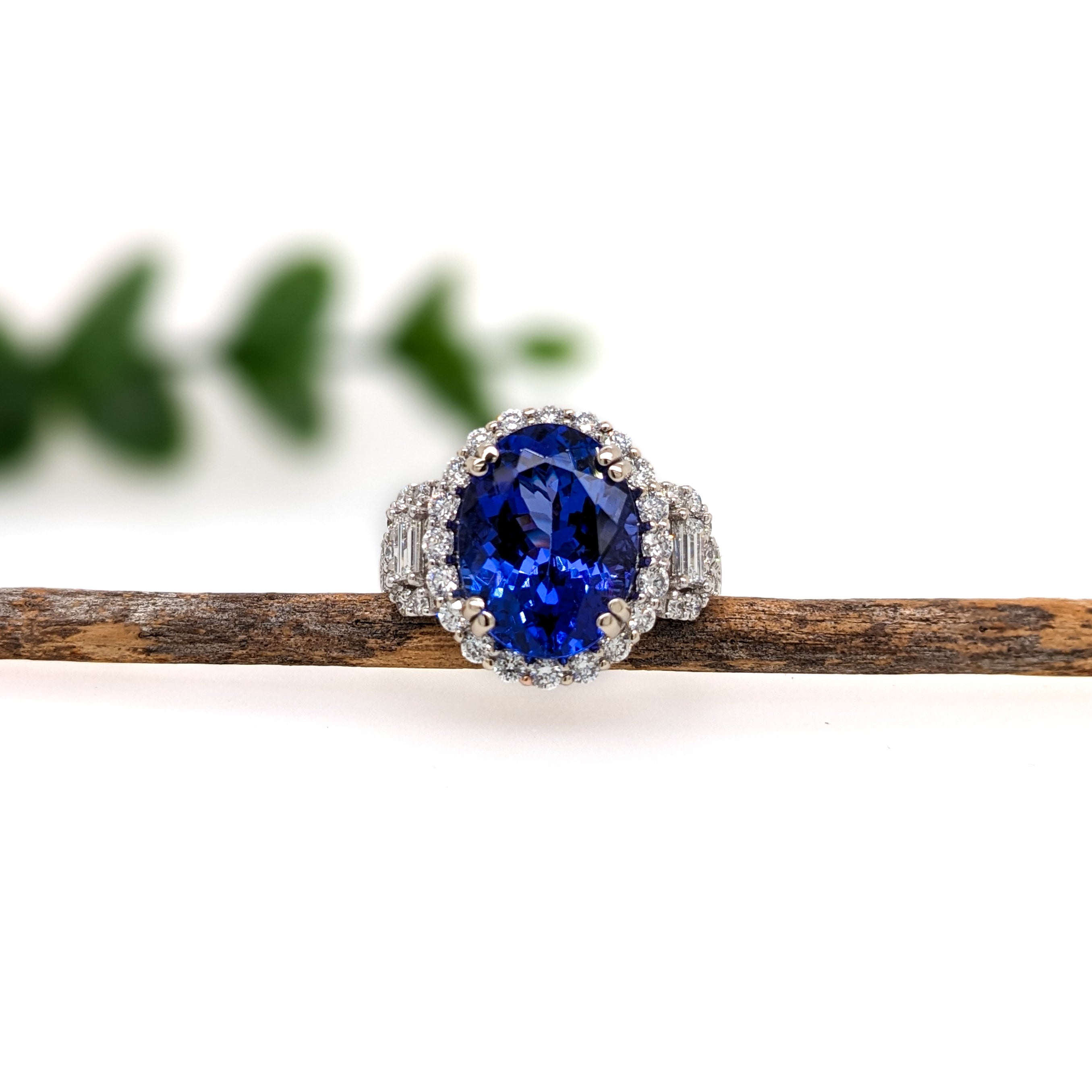 5.7ct Tanzanite Ring w Earth Mined Diamonds in 14K Solid Gold | Oval 13x10mm