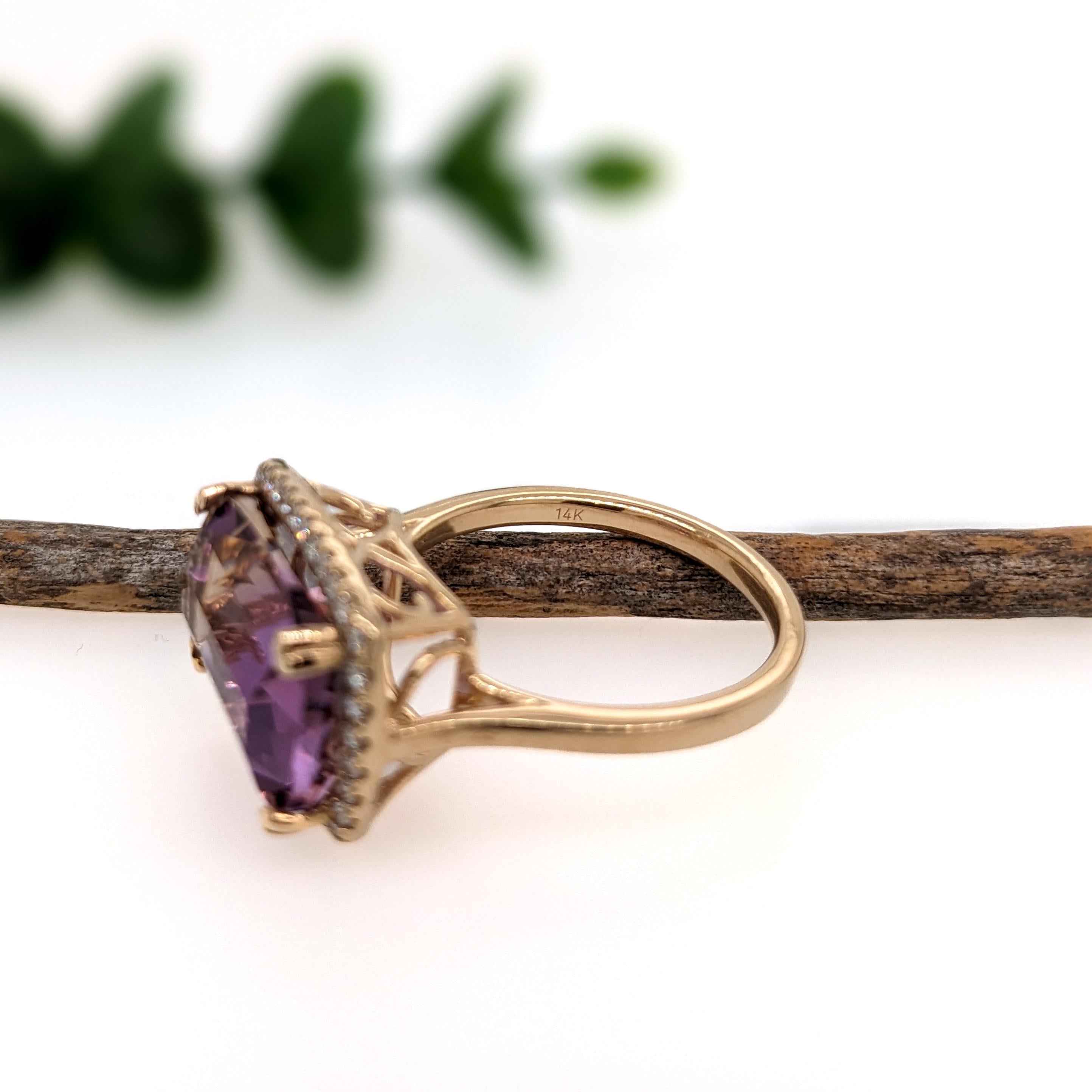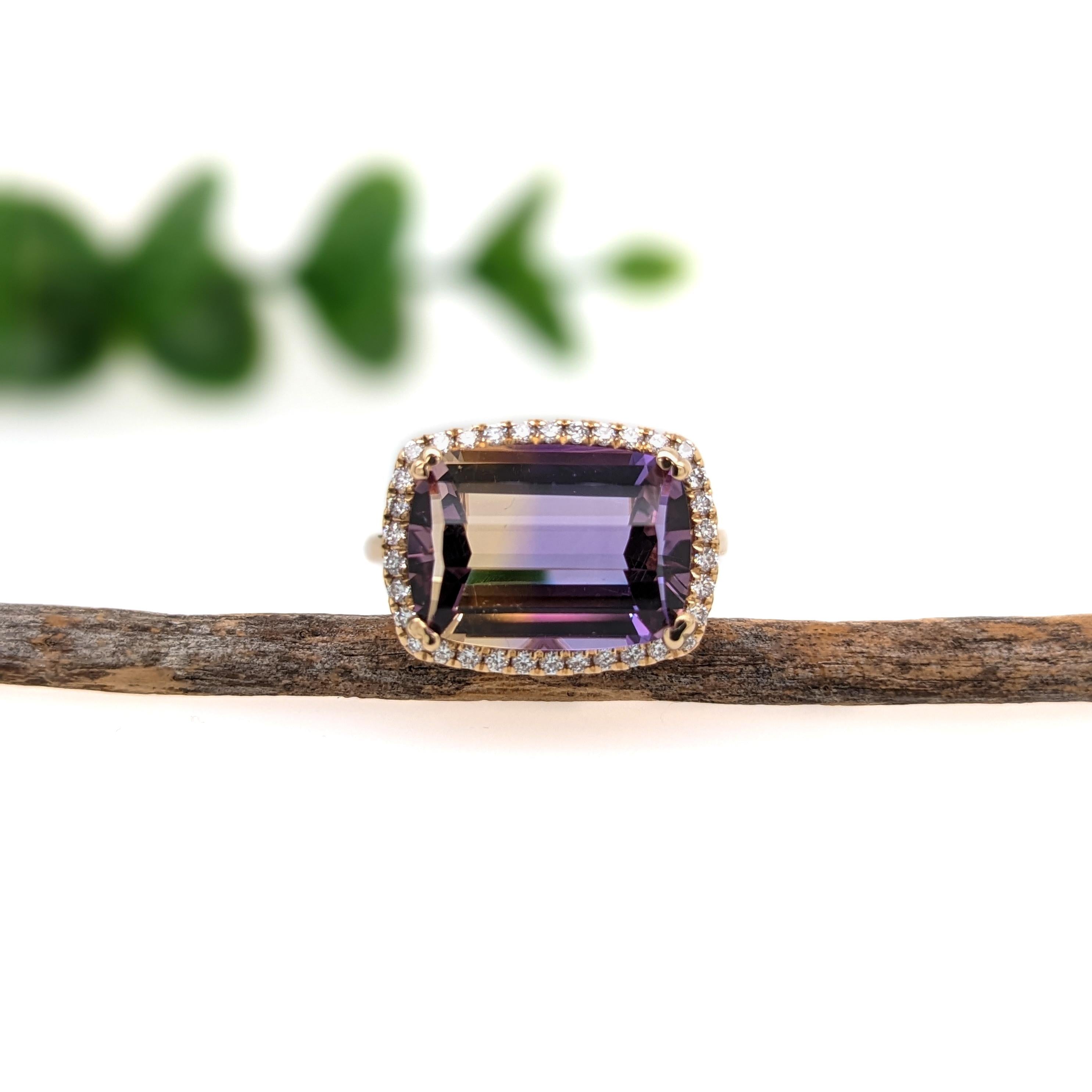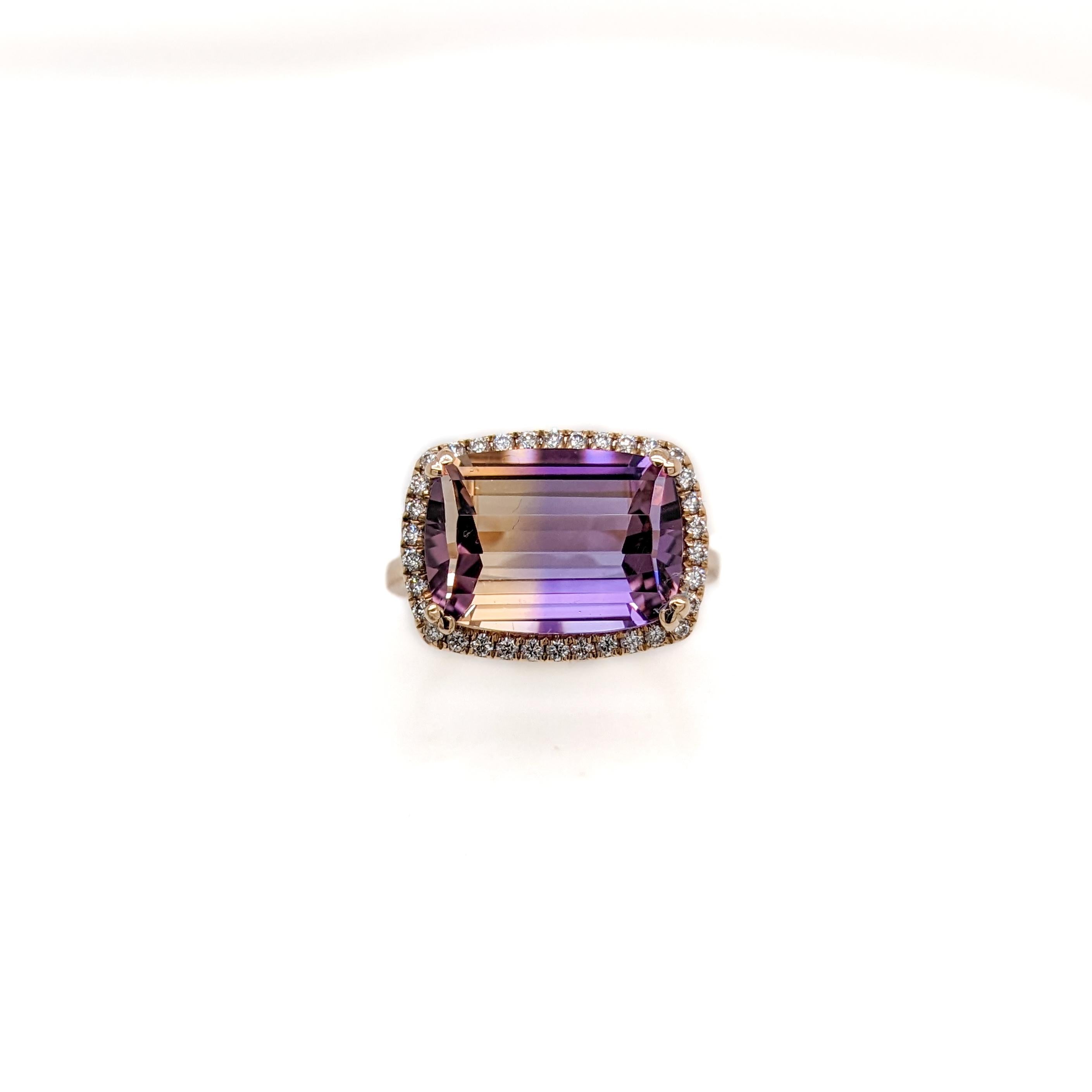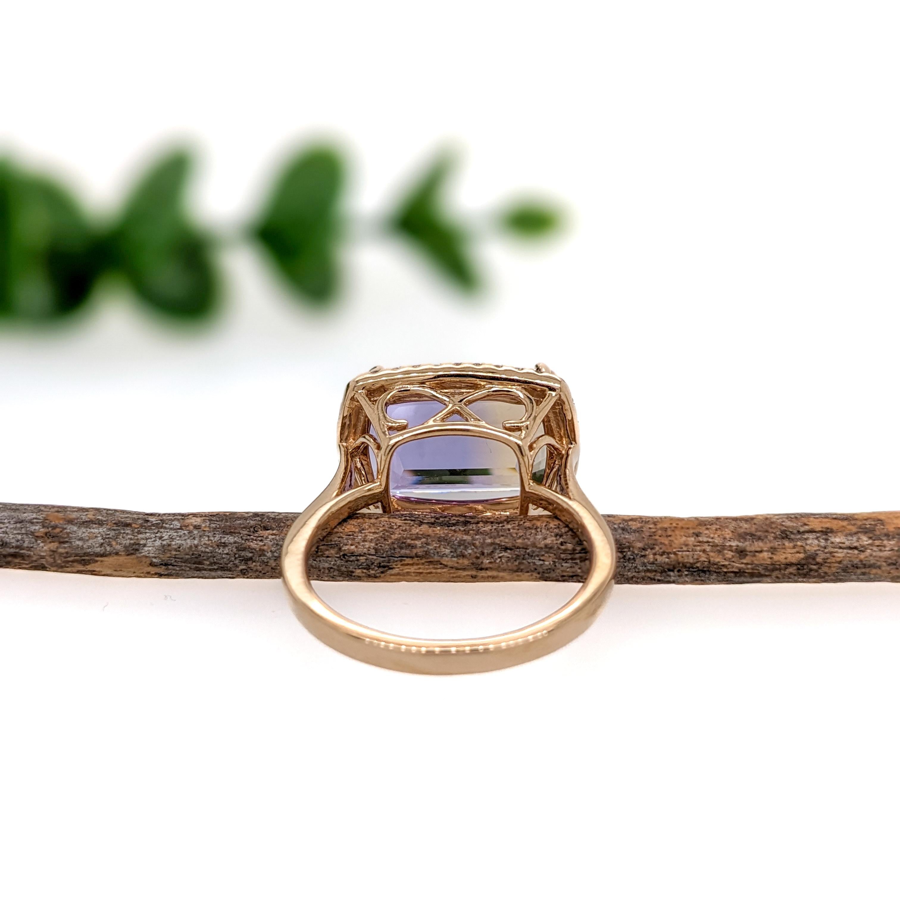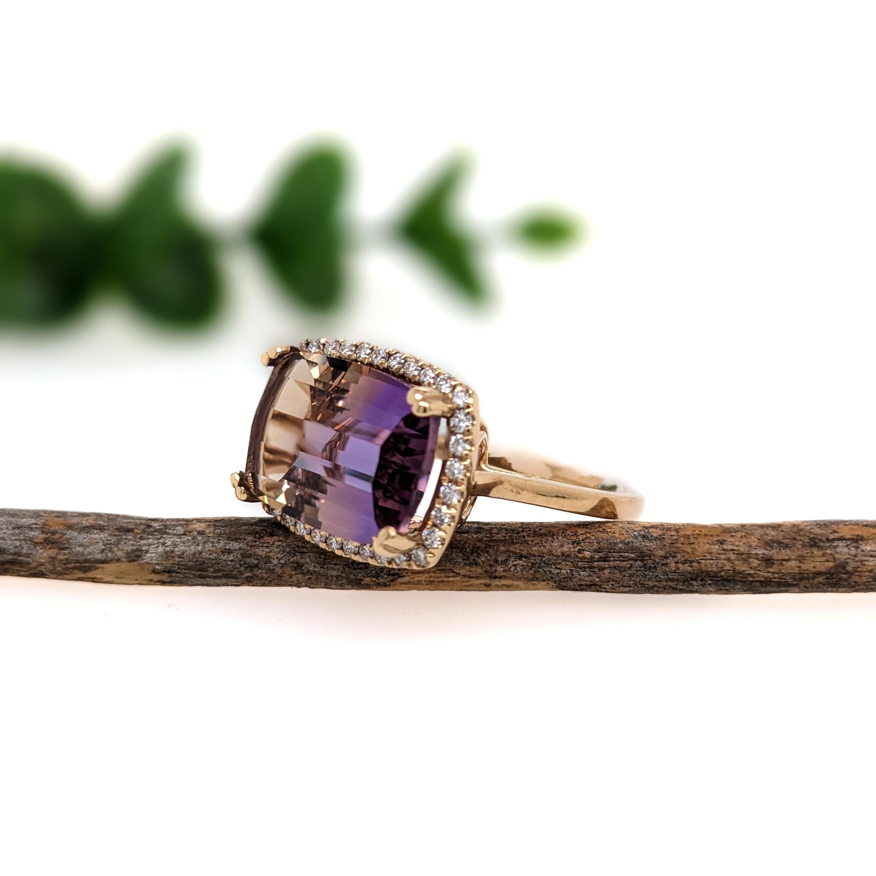 6.38ct Ametrine Ring w Earth Mined Diamonds in Solid 14K Gold | Cushion 14x10mm