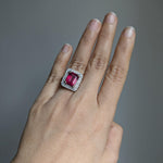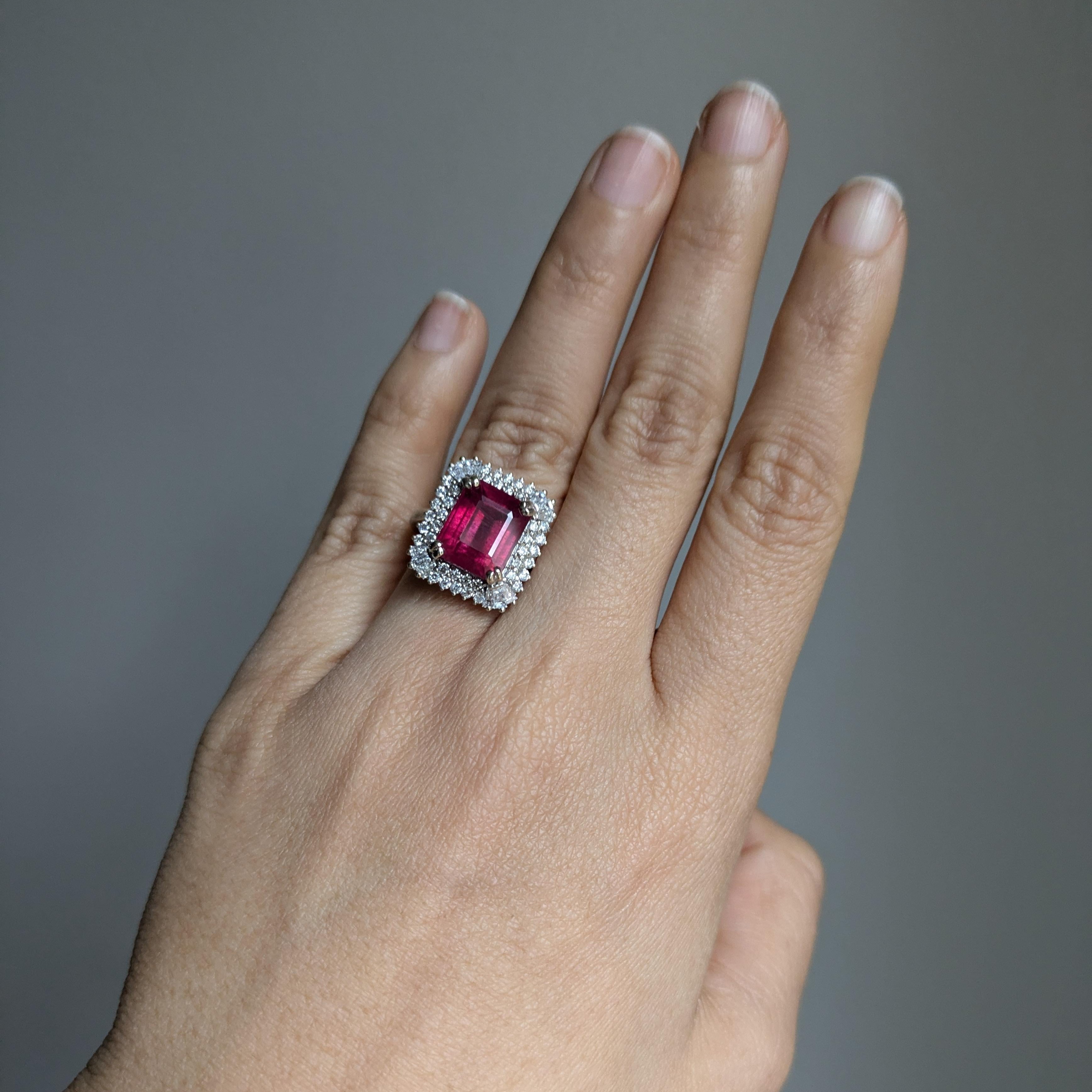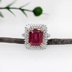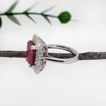 6.7ct Statement Ruby Ring w Natural Diamond Halo in 14K White Gold | EM 11x9mm