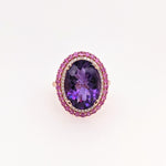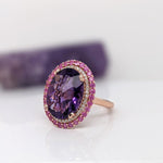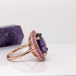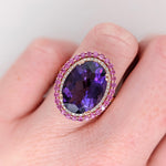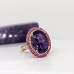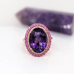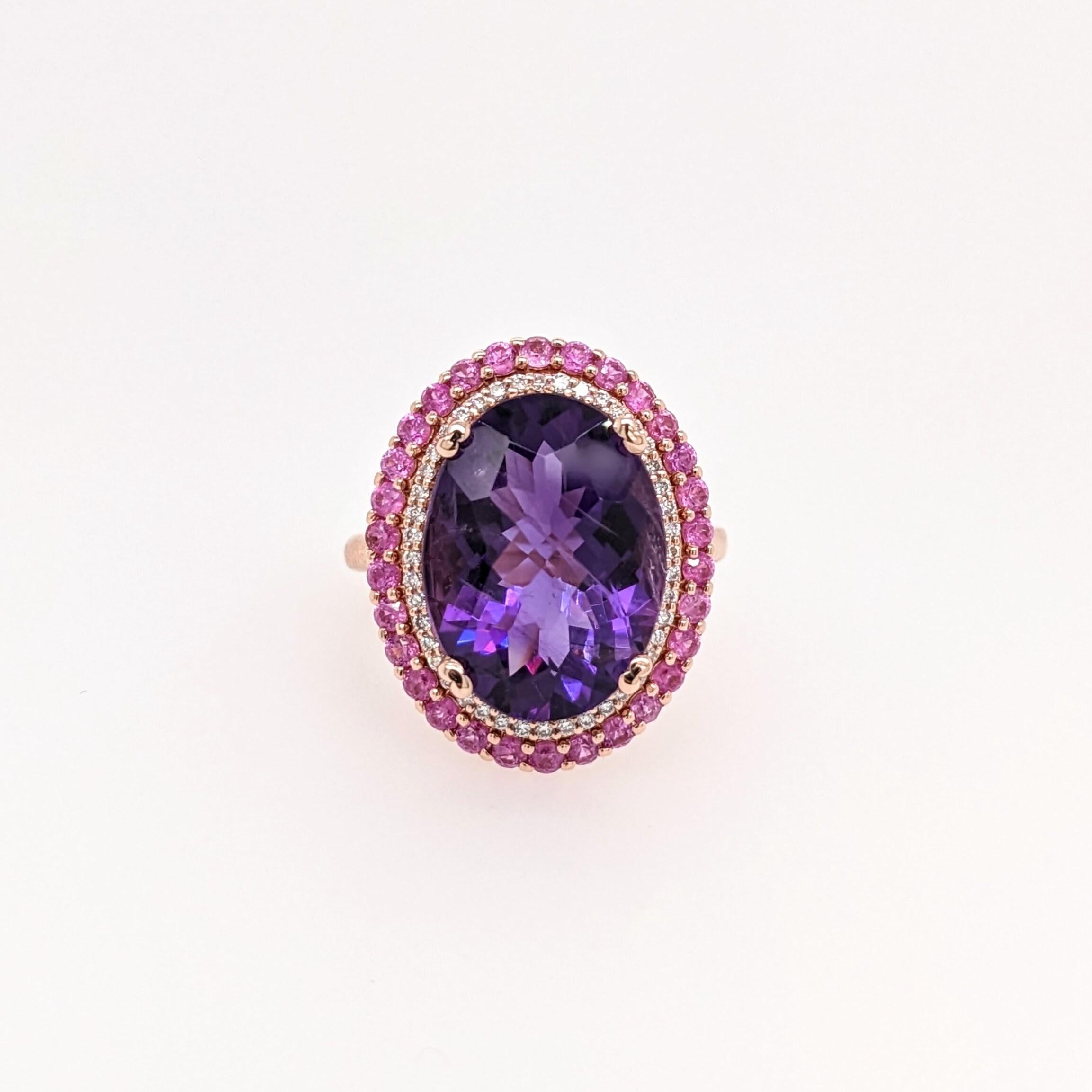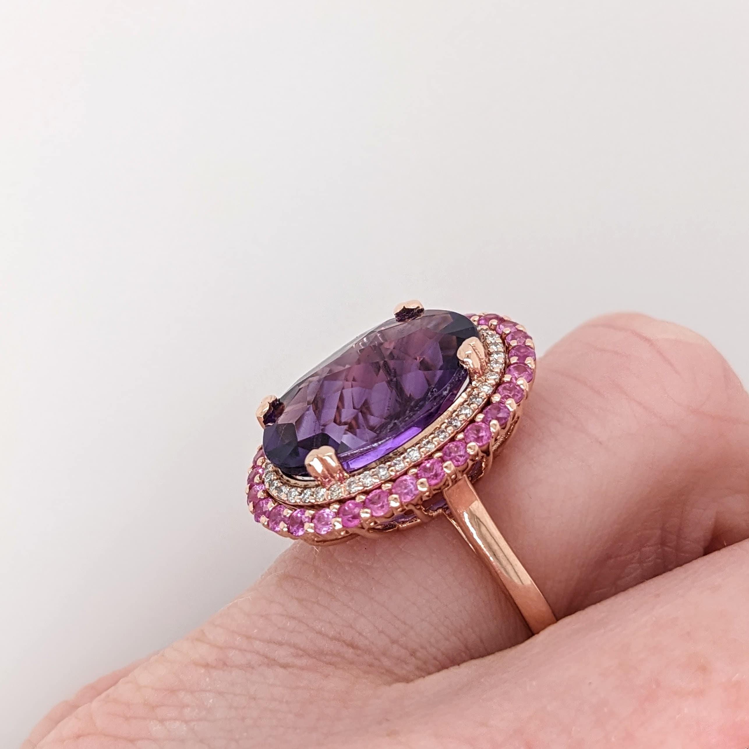 7ct Royal Purple Amethyst Ring w Pink Sapphires & Earth Mined Diamonds in Solid 14K Rose Gold 11x8mm