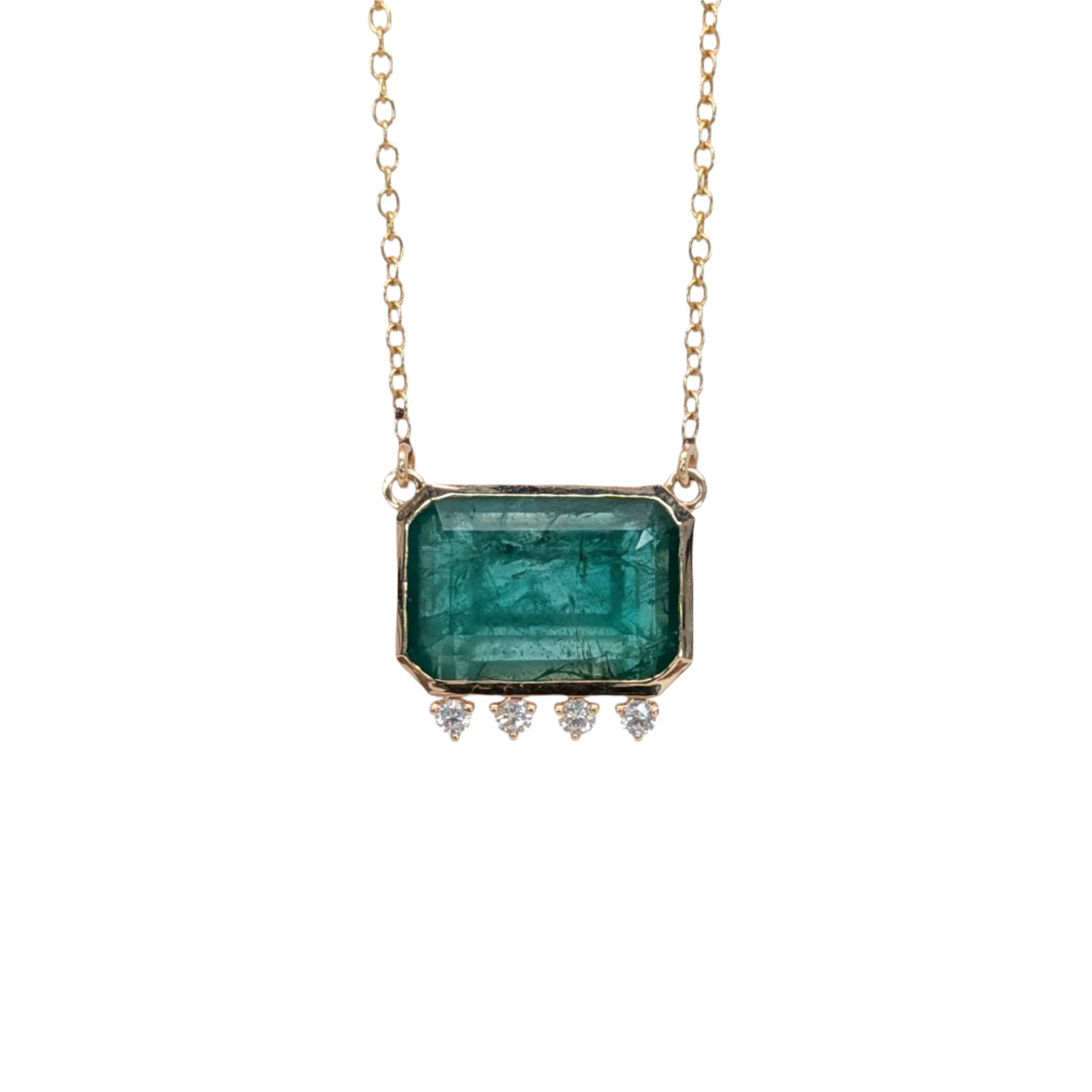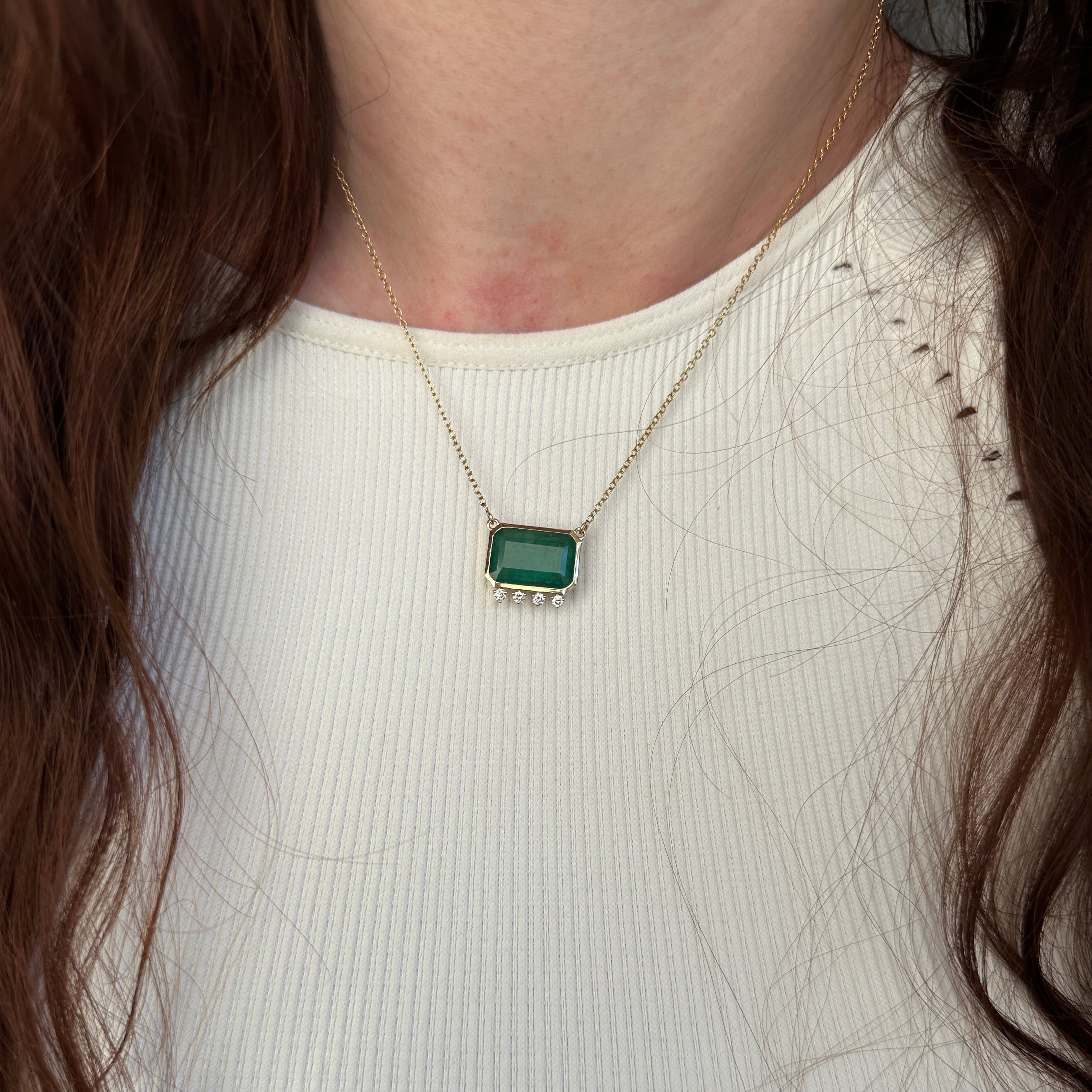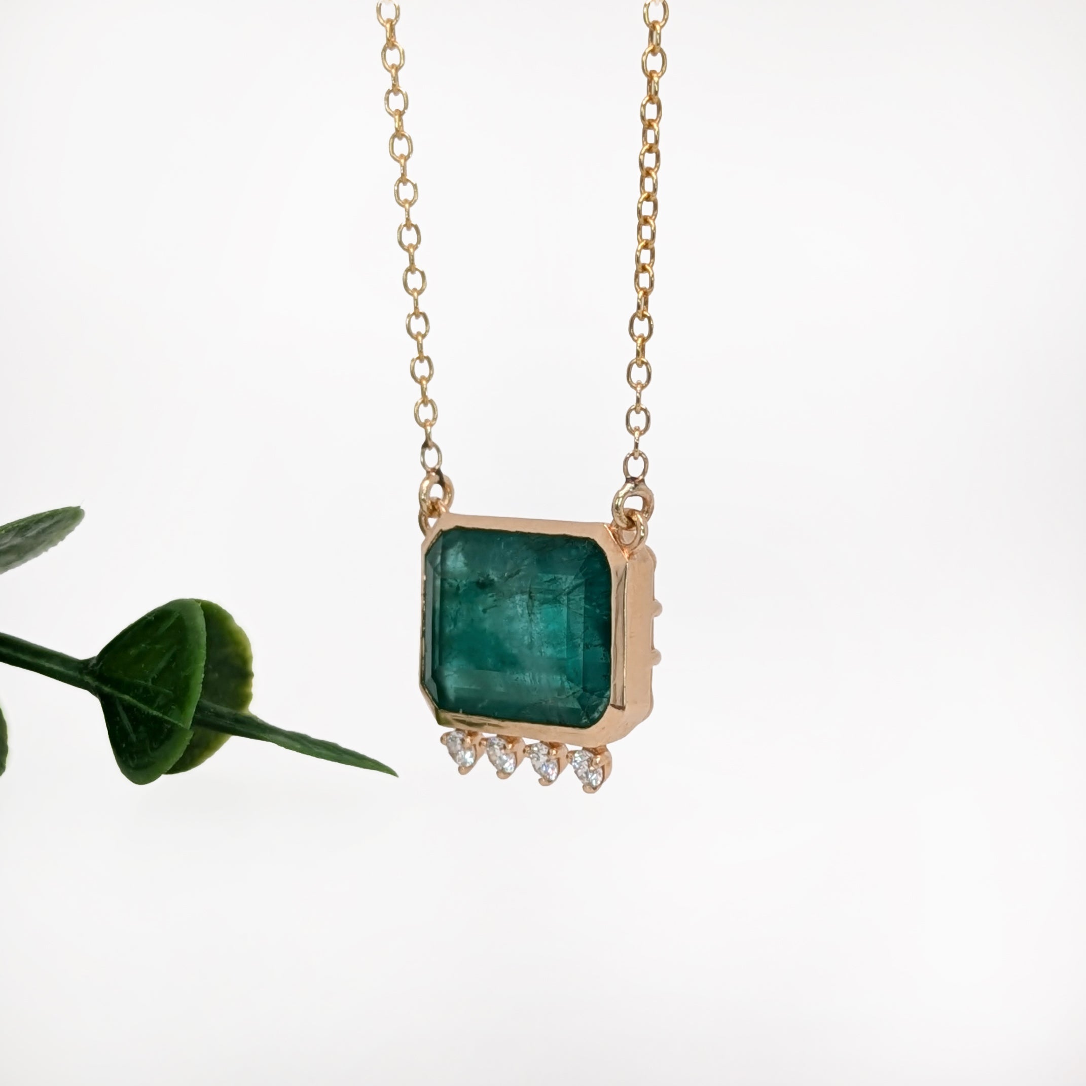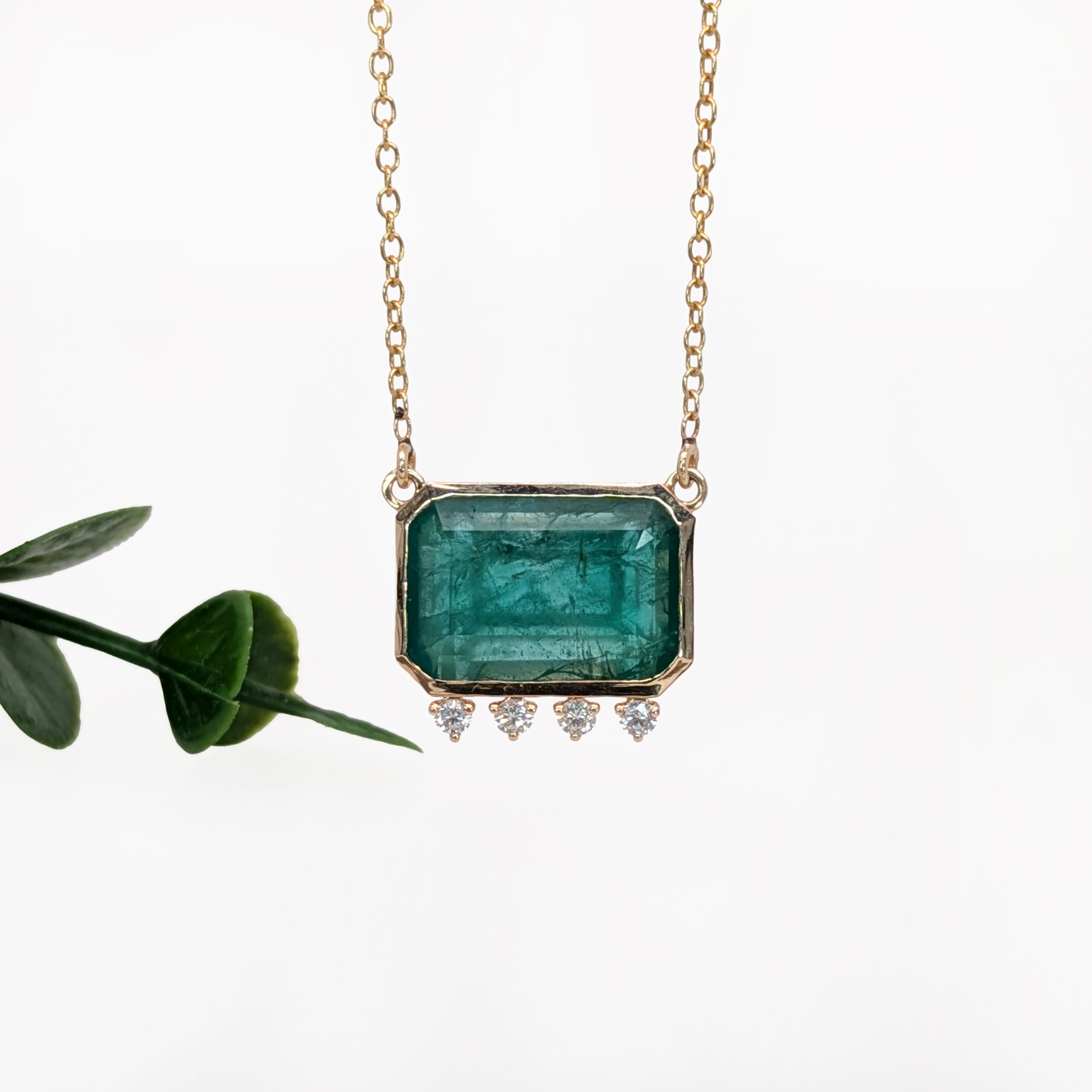 6ct Emerald Pendant w Natural Diamond Accents in Solid 14K Gold | EM 15x10mm