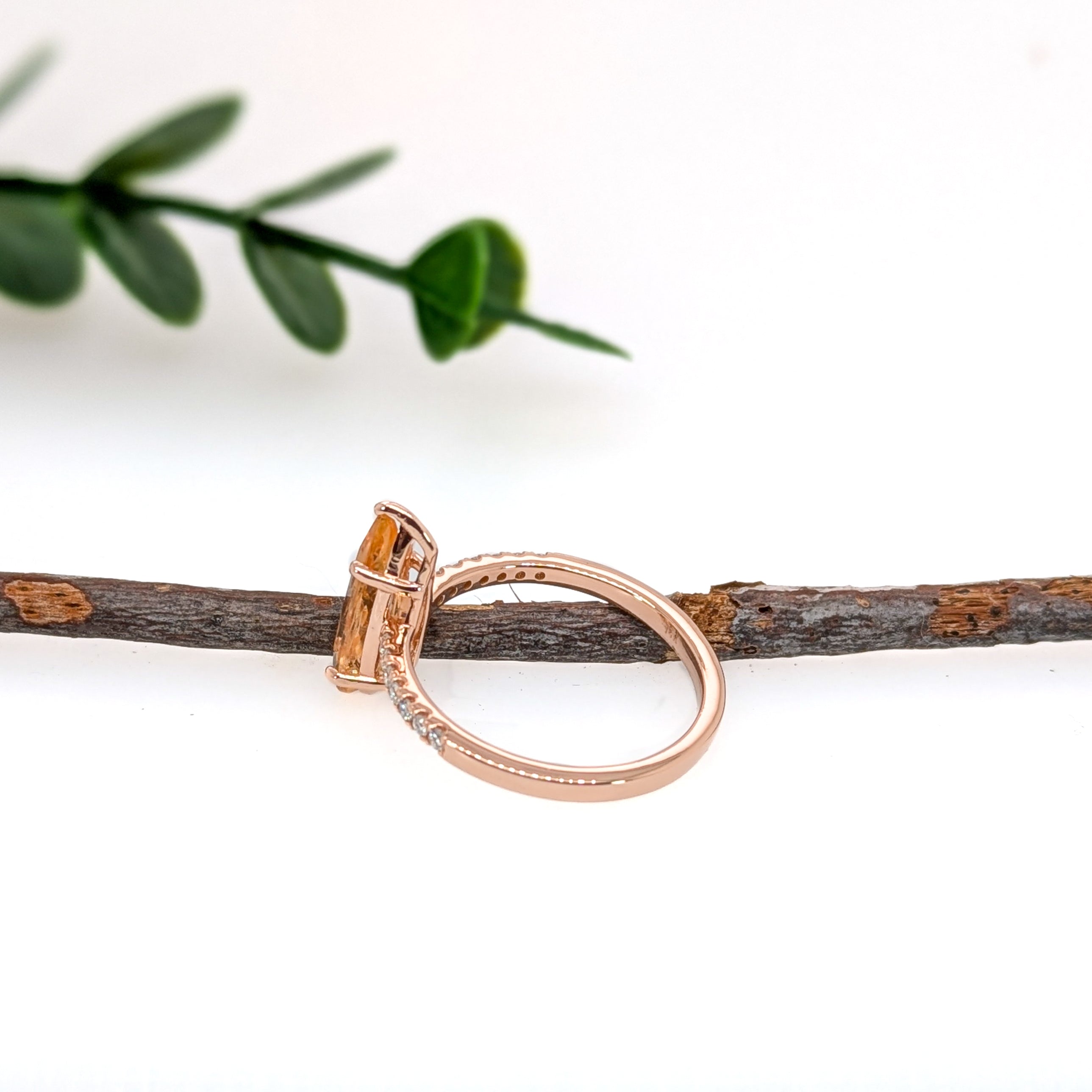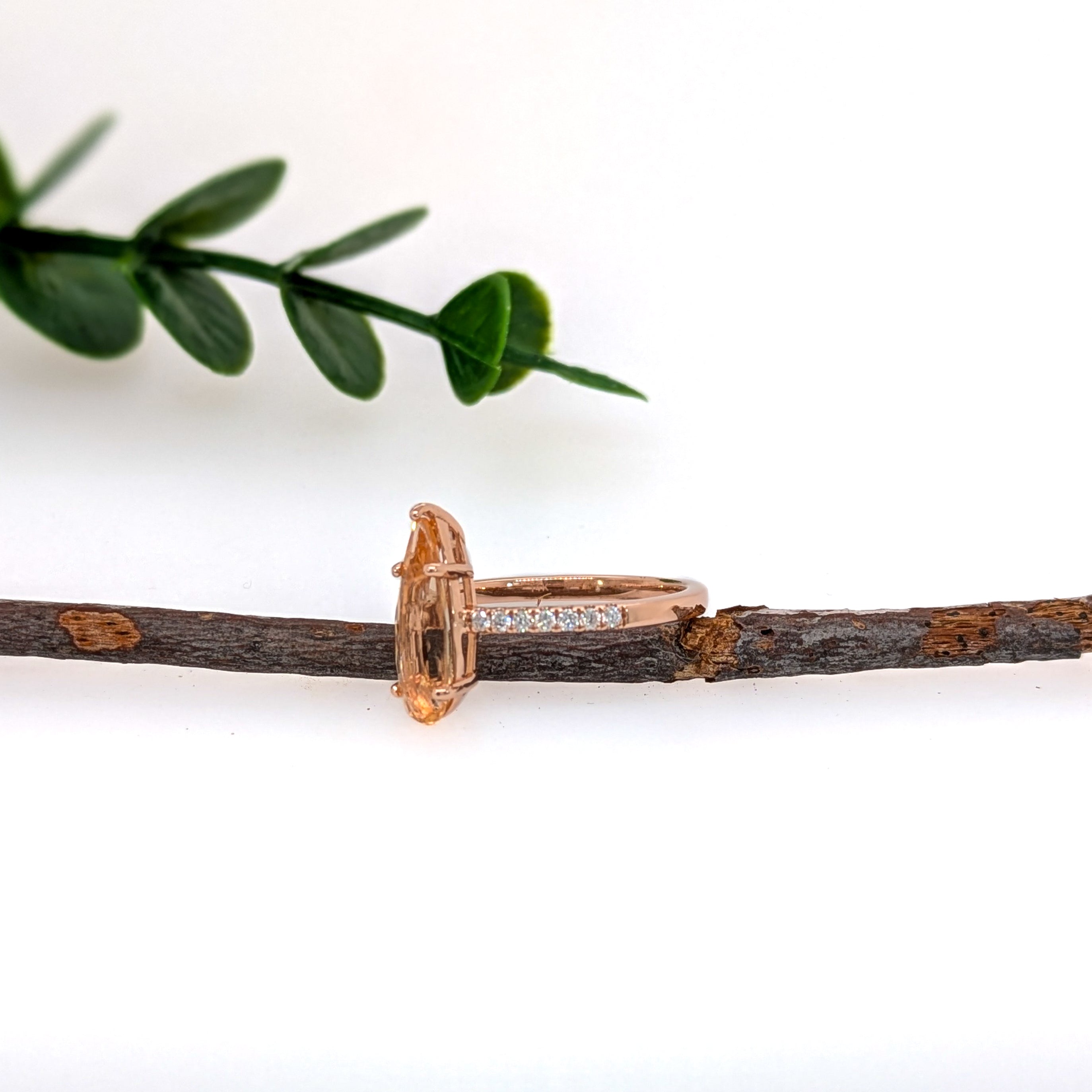 1.5ct Imperial Topaz Ring w Diamond Accents in Solid 14K Rose Gold | PE 13x4mm