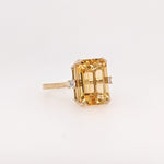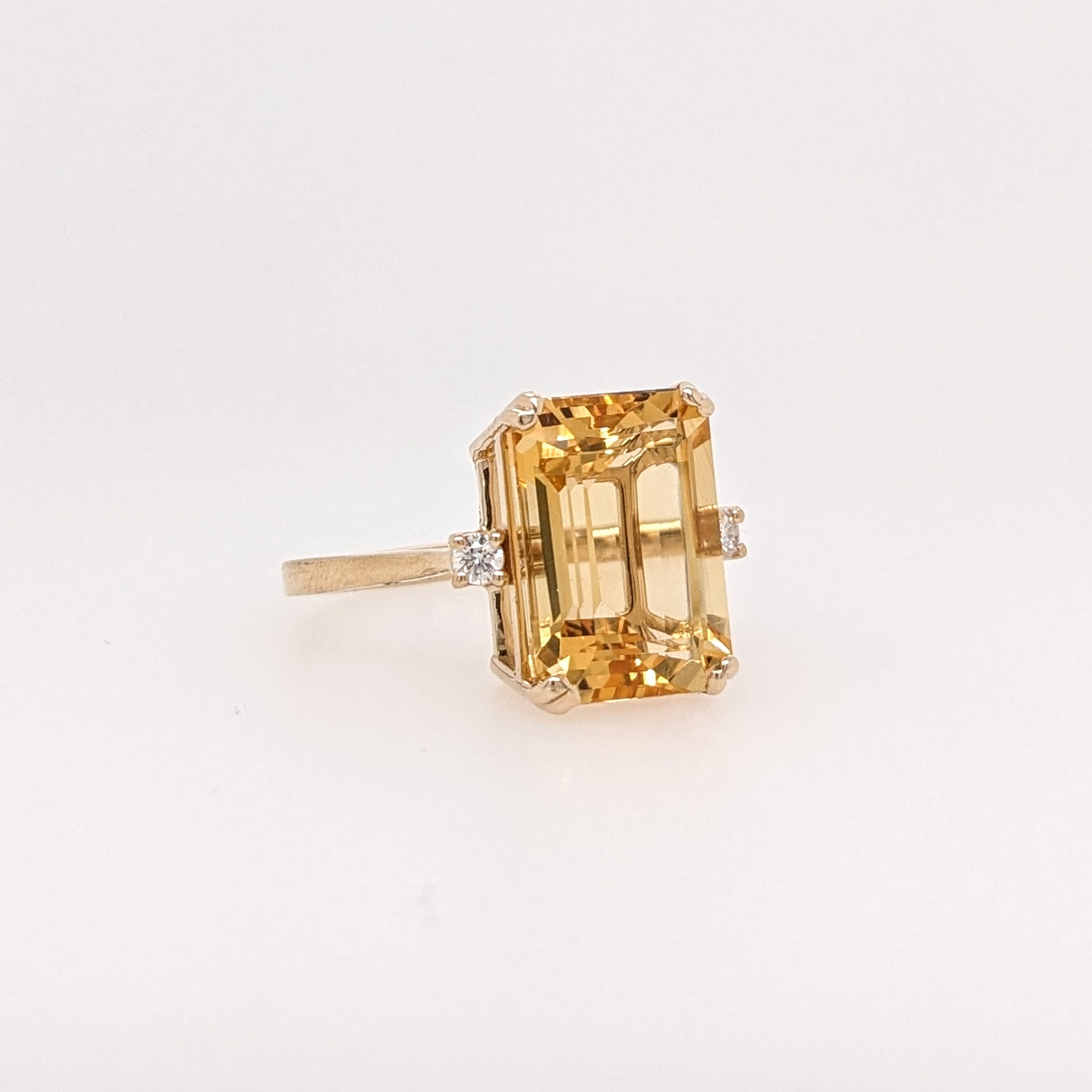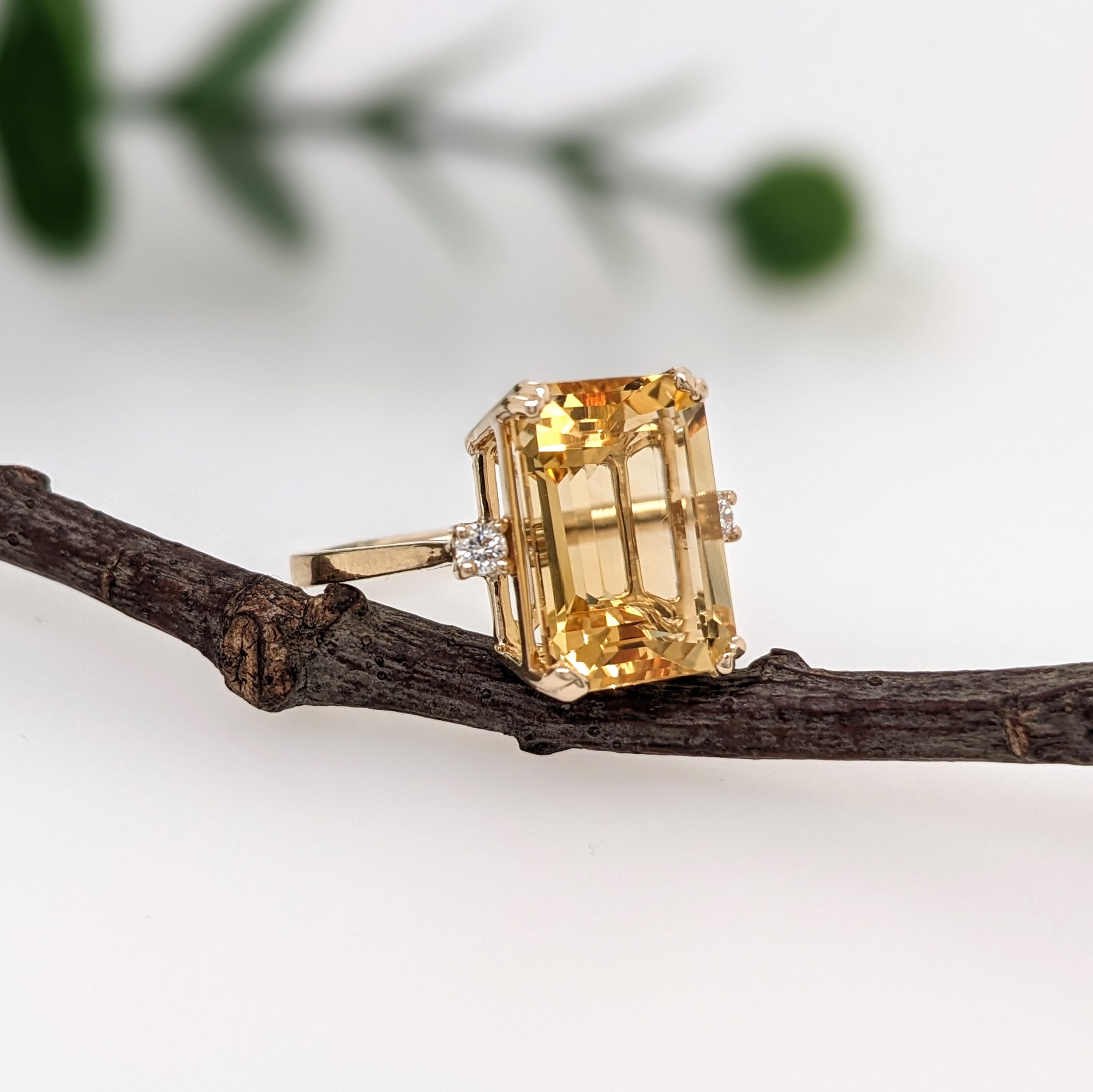 7ct Citrine Ring w Earth Mined Diamonds in Solid 14K Yellow Gold EM 14x10mm