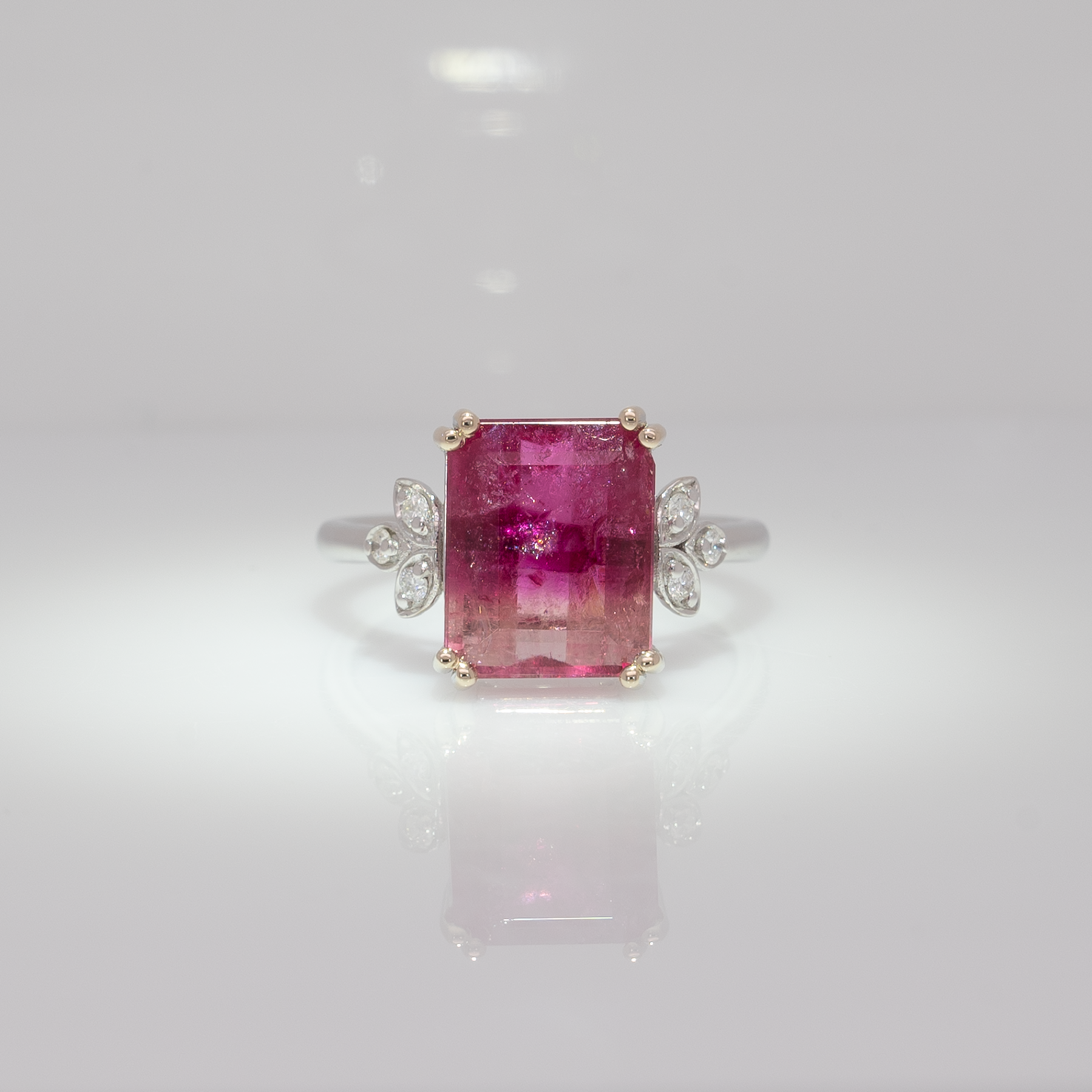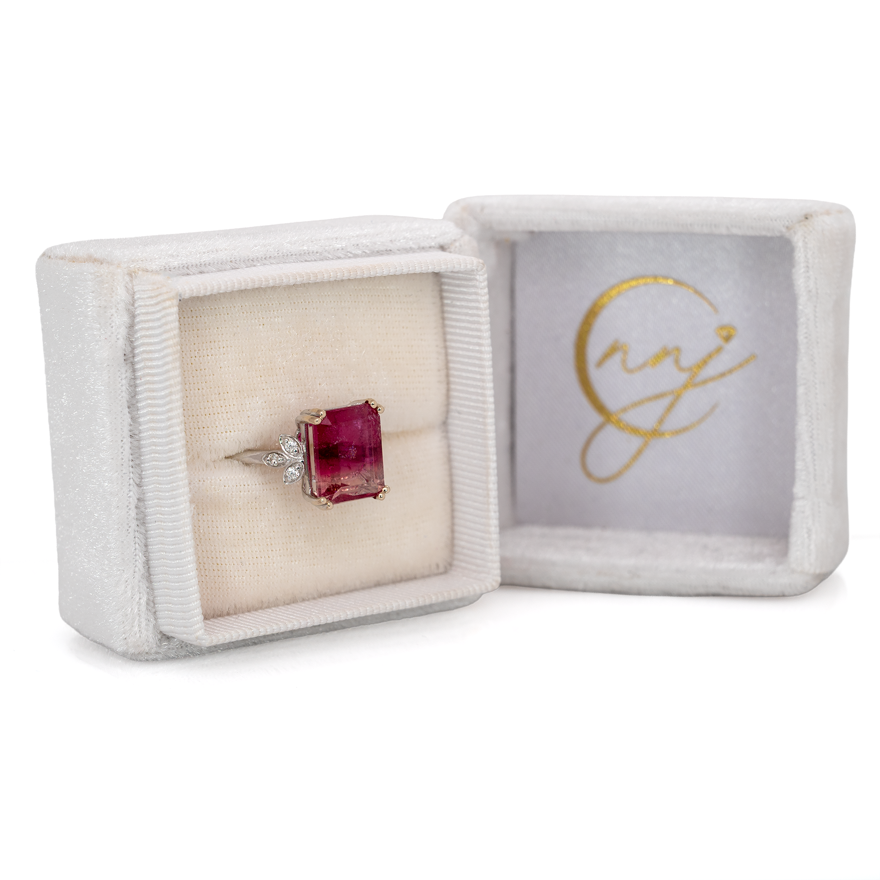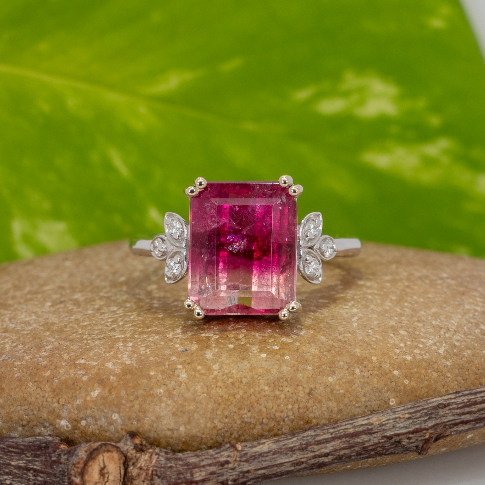 Solid 14K gold ring featuring a vibrant bi-color tourmaline centerpiece.