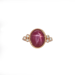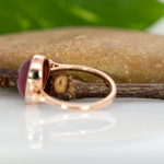 Solid 14K gold ring showcasing a vivid oval star ruby measuring 11.6 × 9mm.