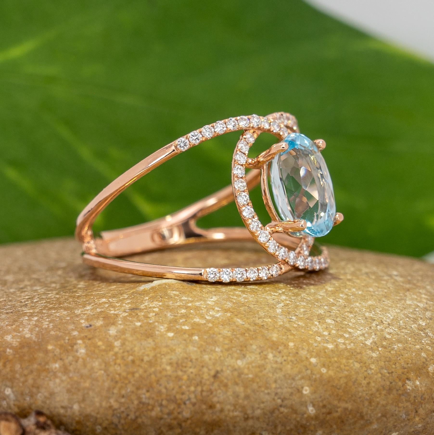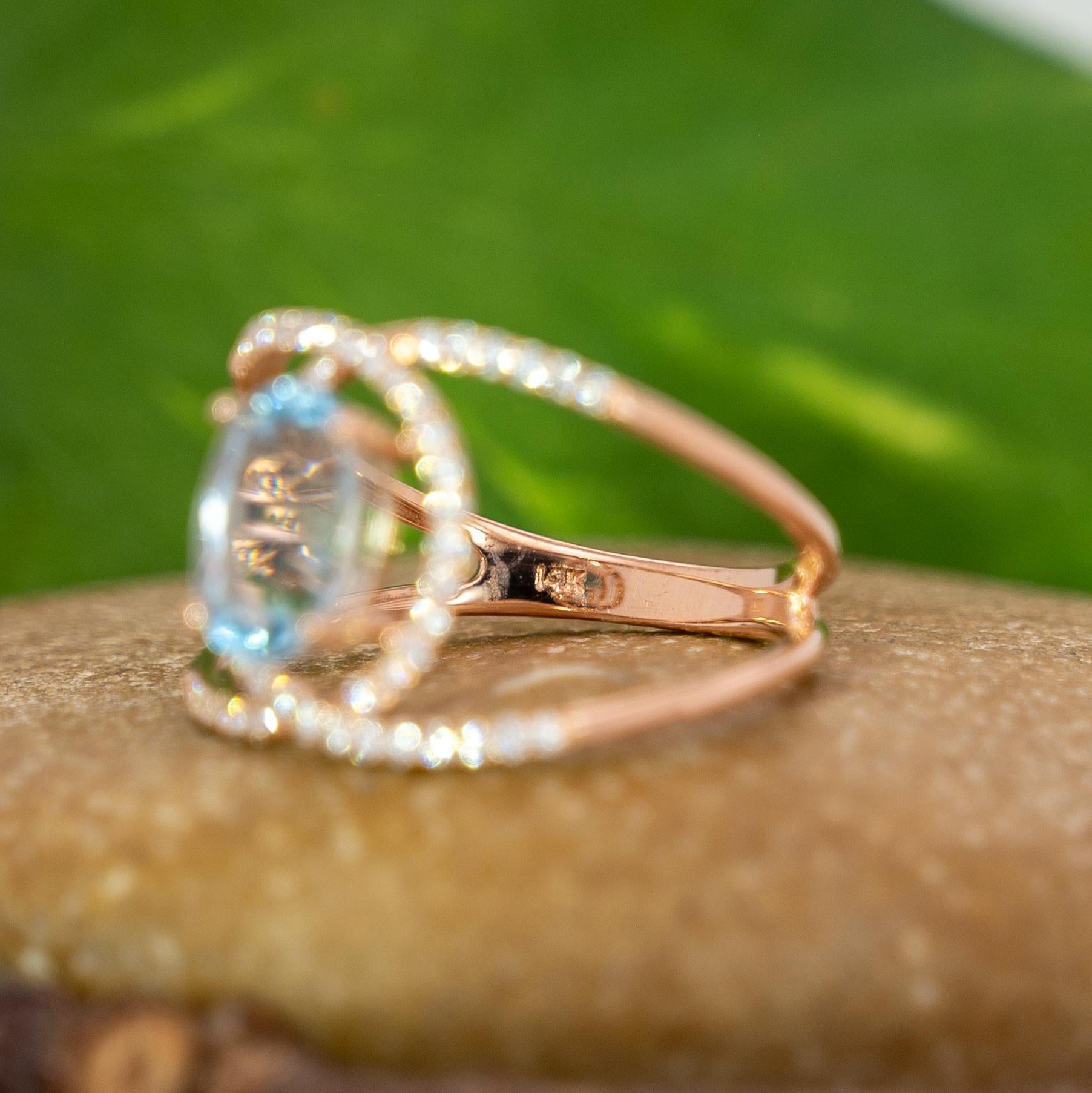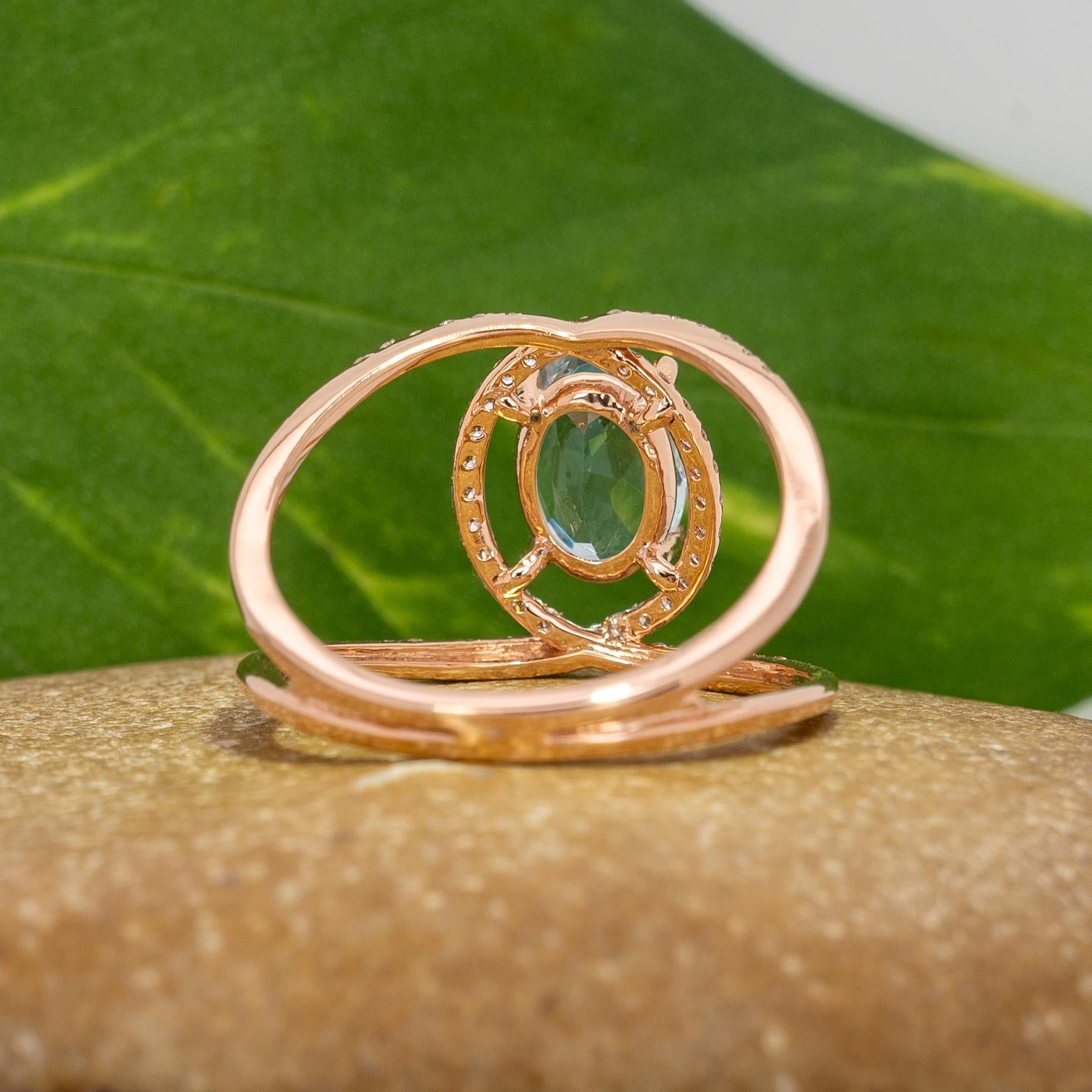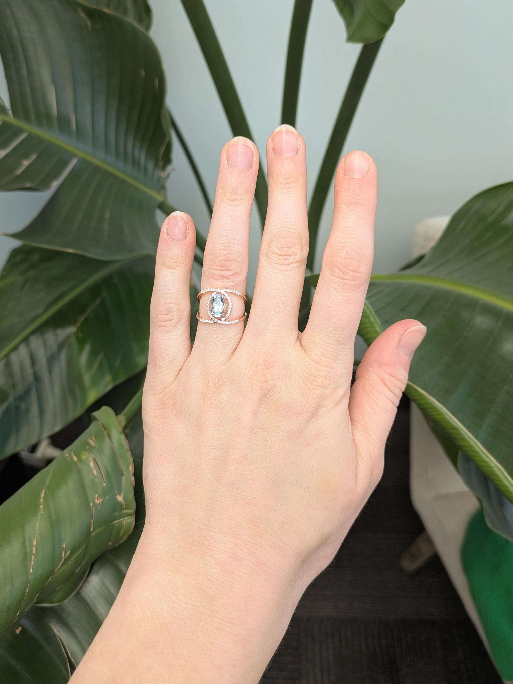 Althea Solid 14k Gold Aquamarine Ring with Natural Diamond Accents, Oval 8x6mm