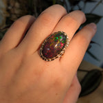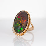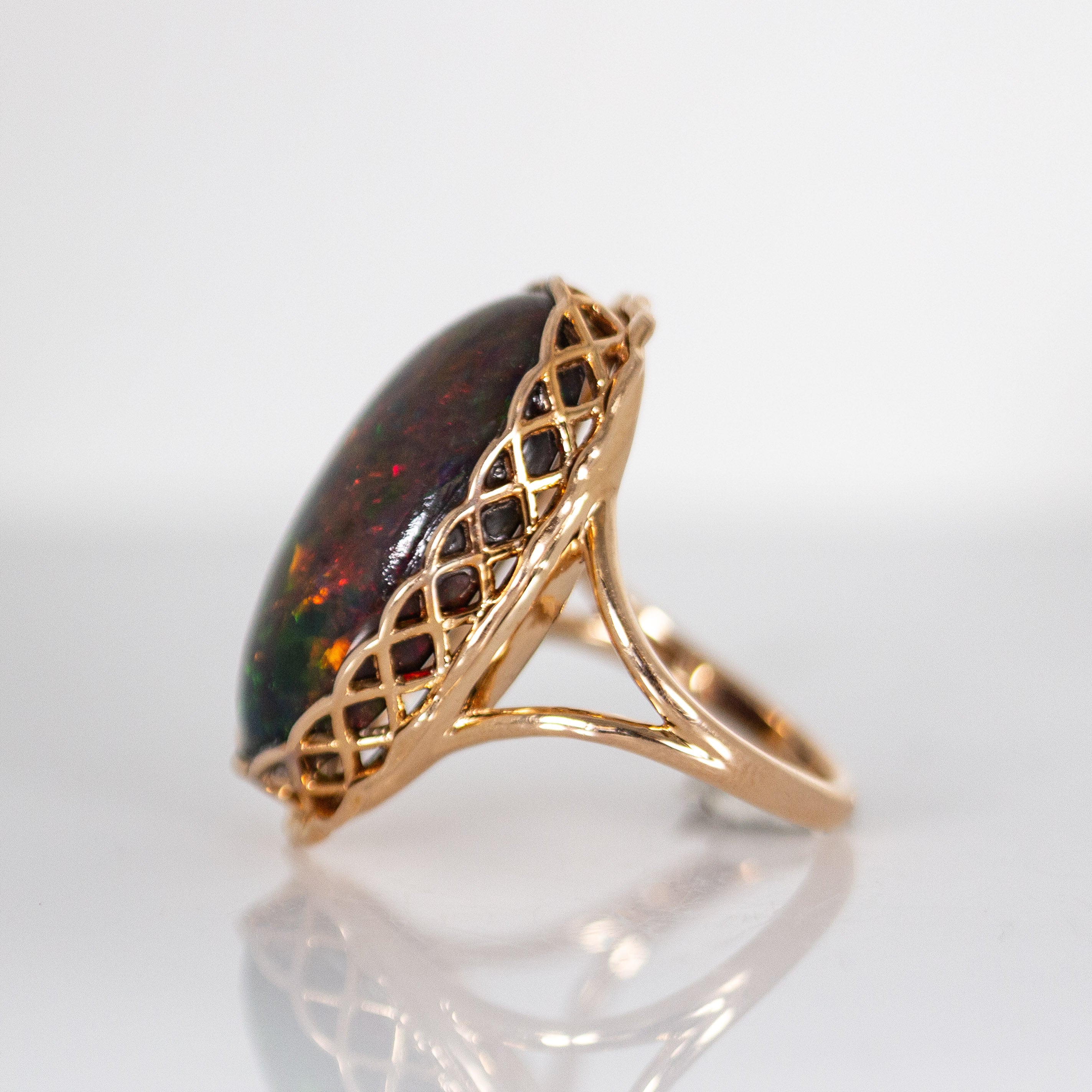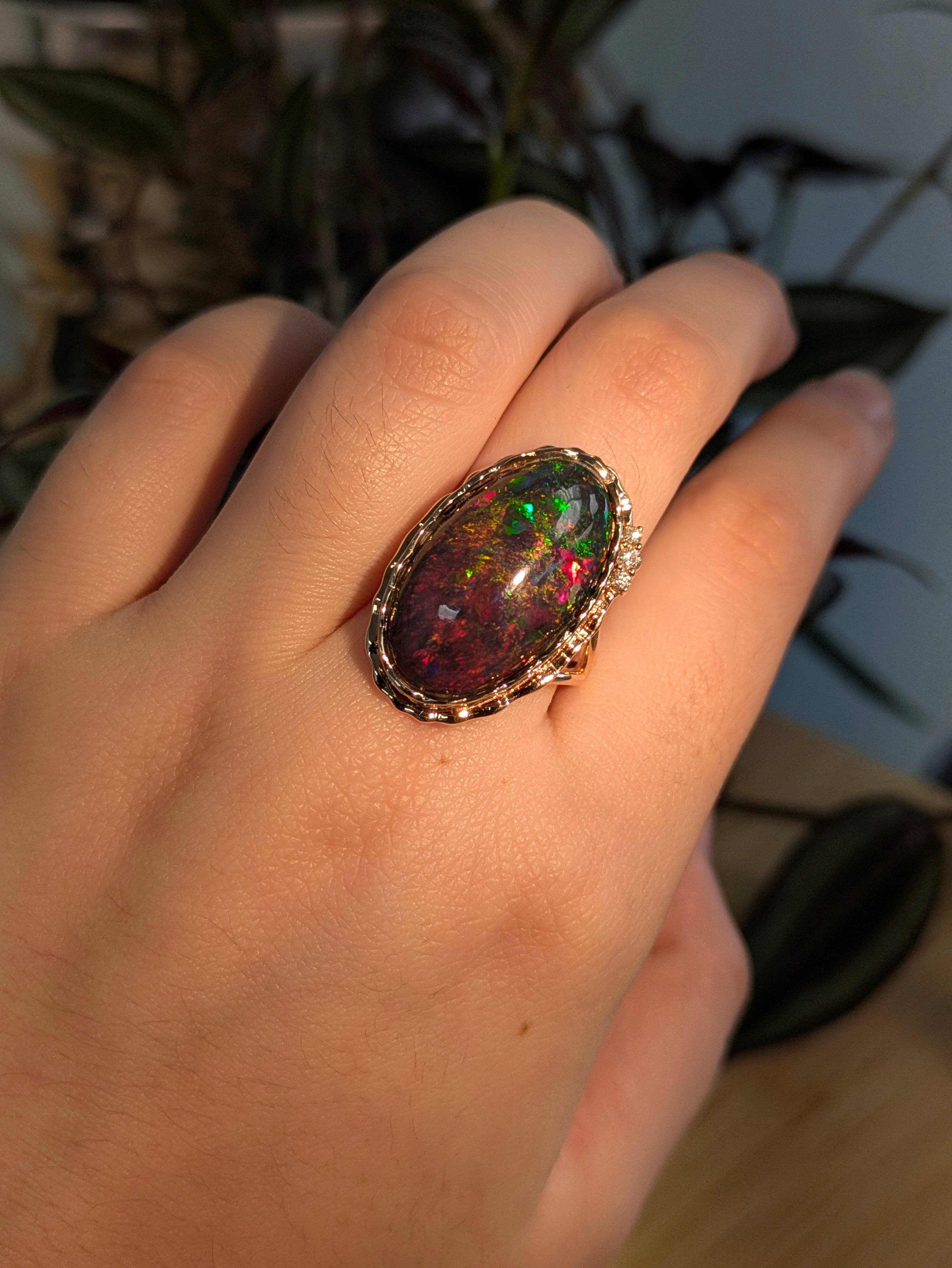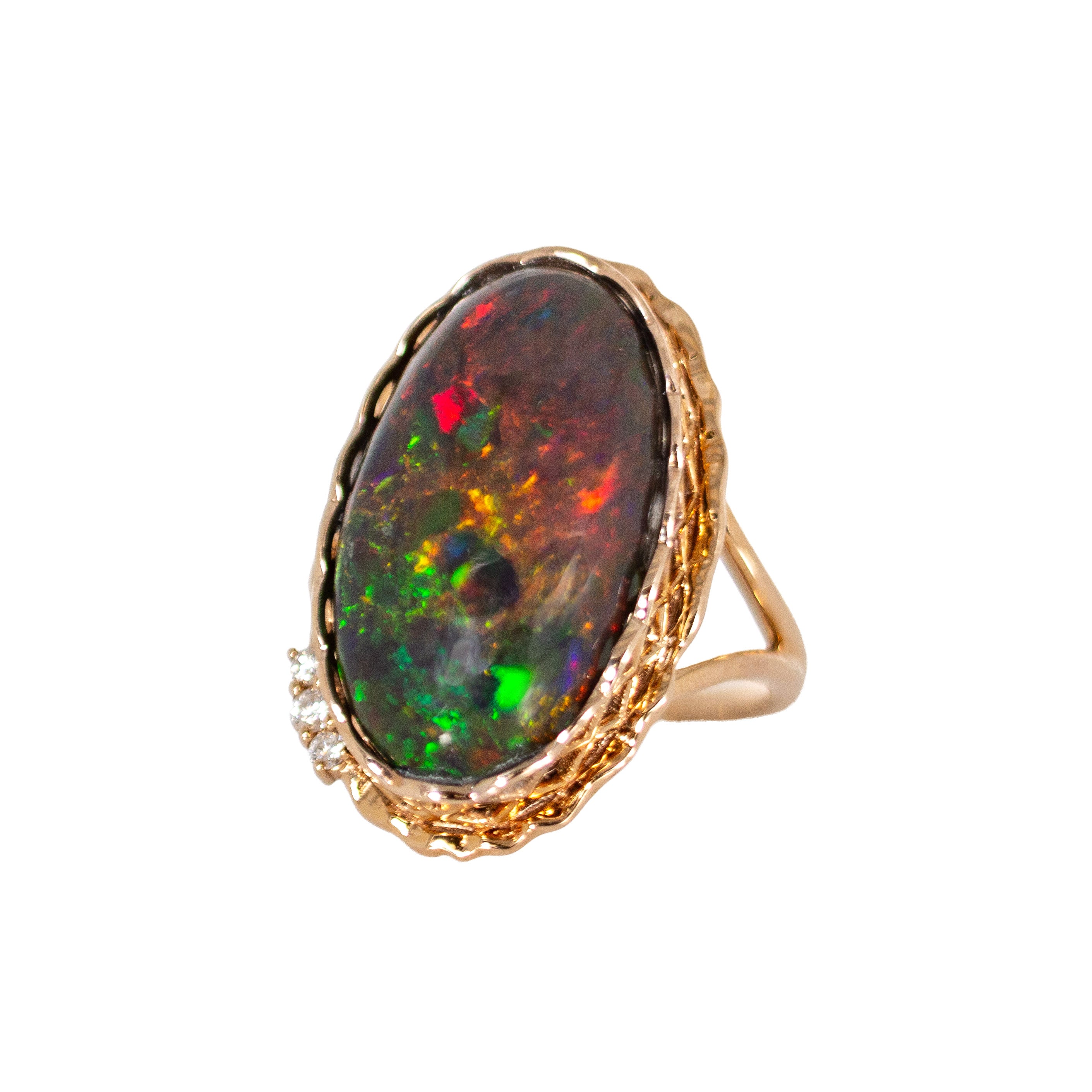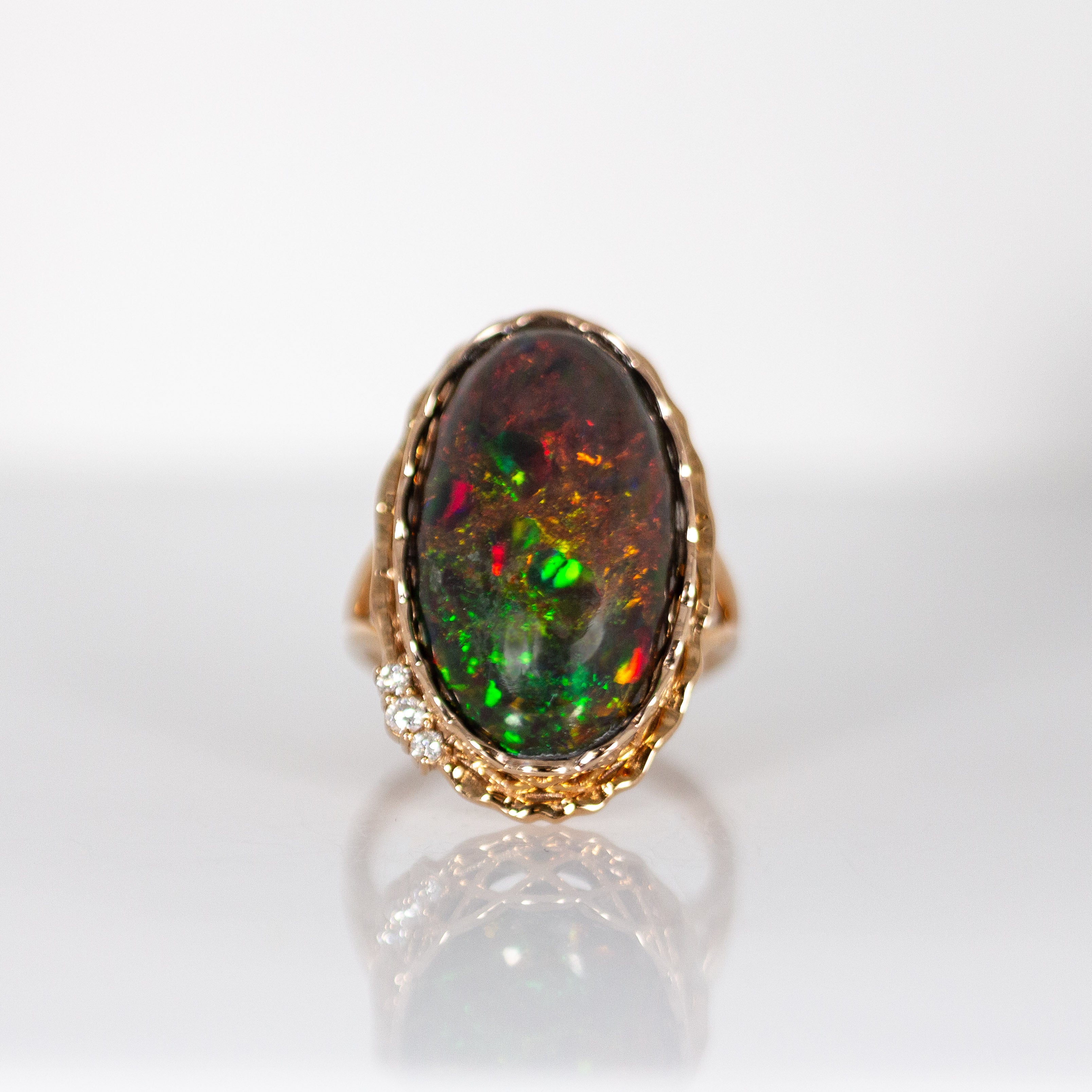 Jane 14K Rose Gold Black Opal Ring Diamonds Ring | Cabochon Gemstone 23.2x13.4mm