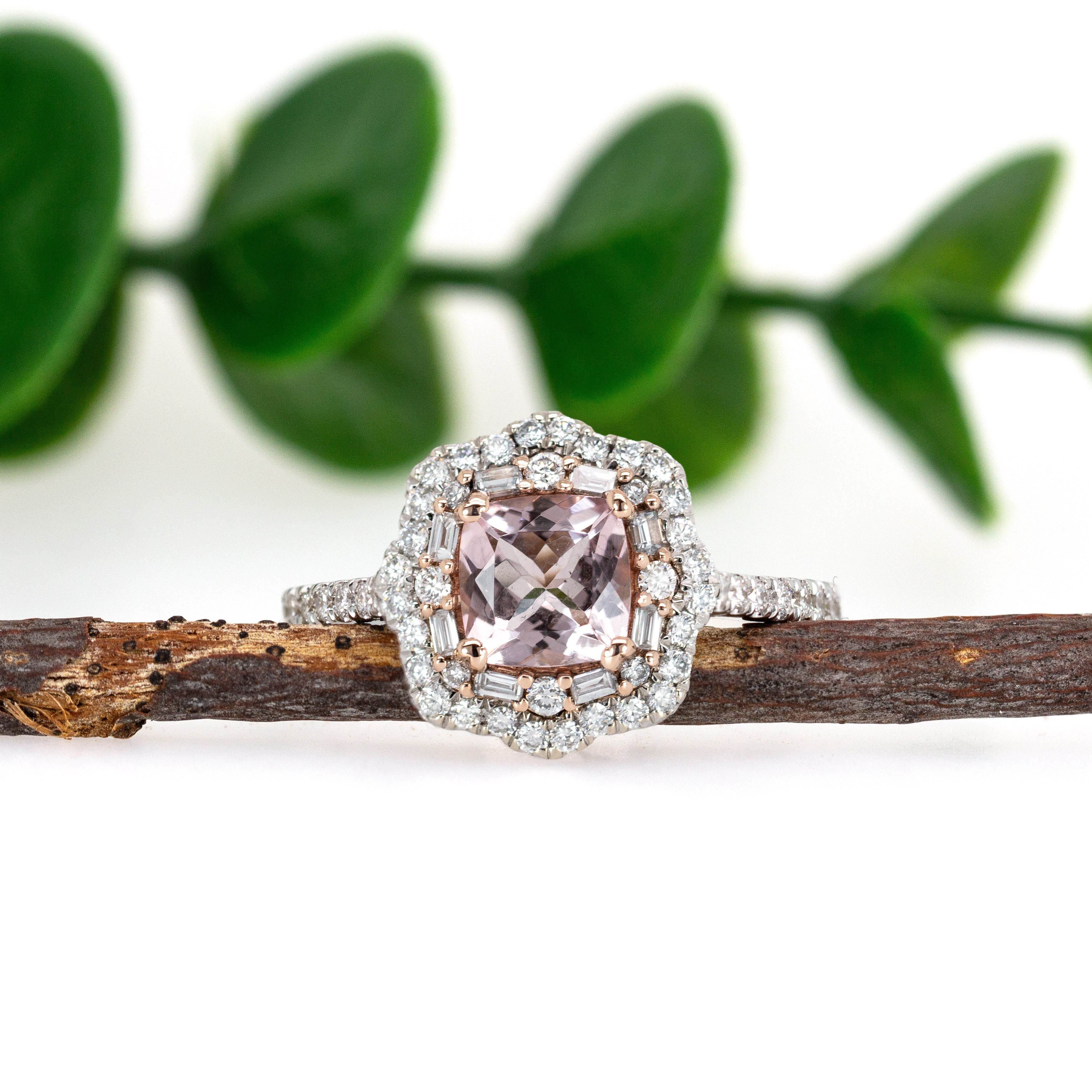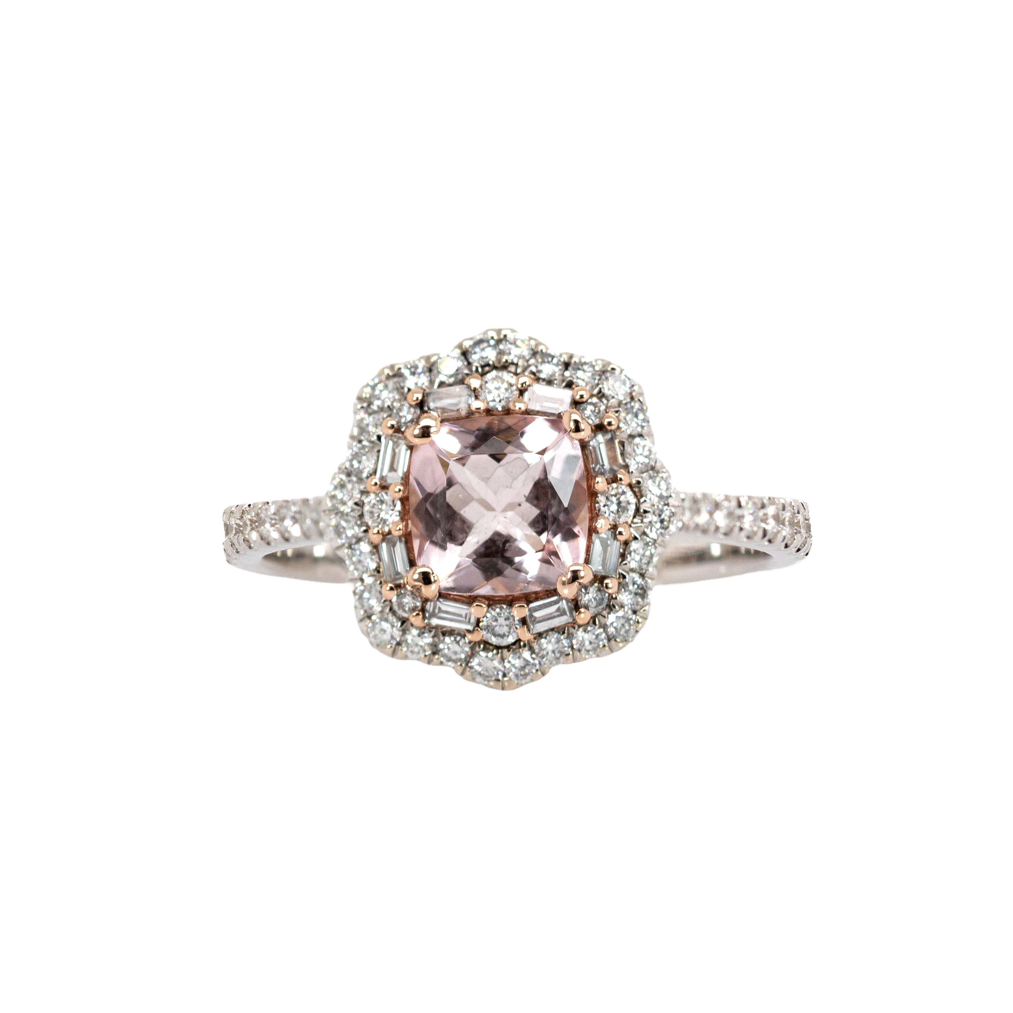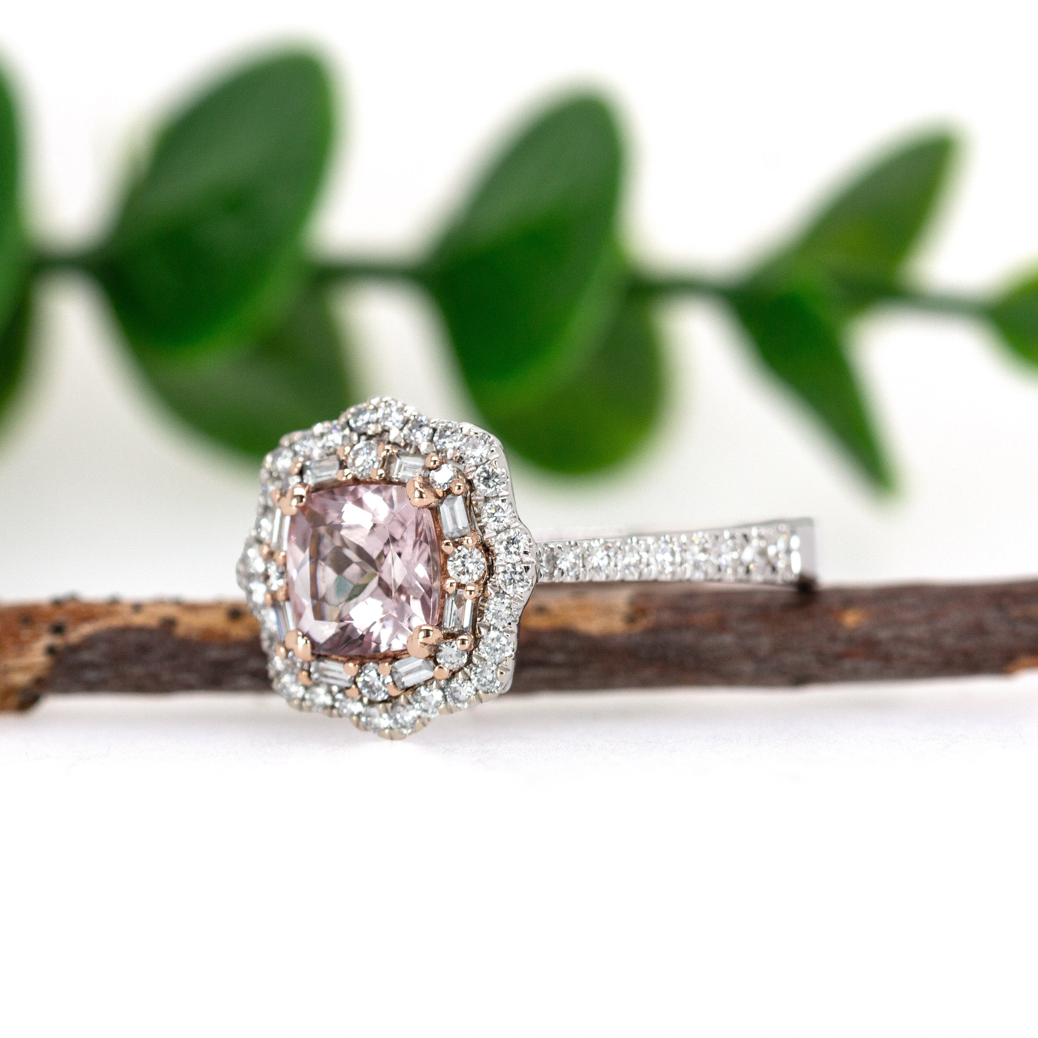 Sitara 14K White and Rose Gold Cor de Rosa Morganite Diamond Ring | Cushion Shape 6mm
