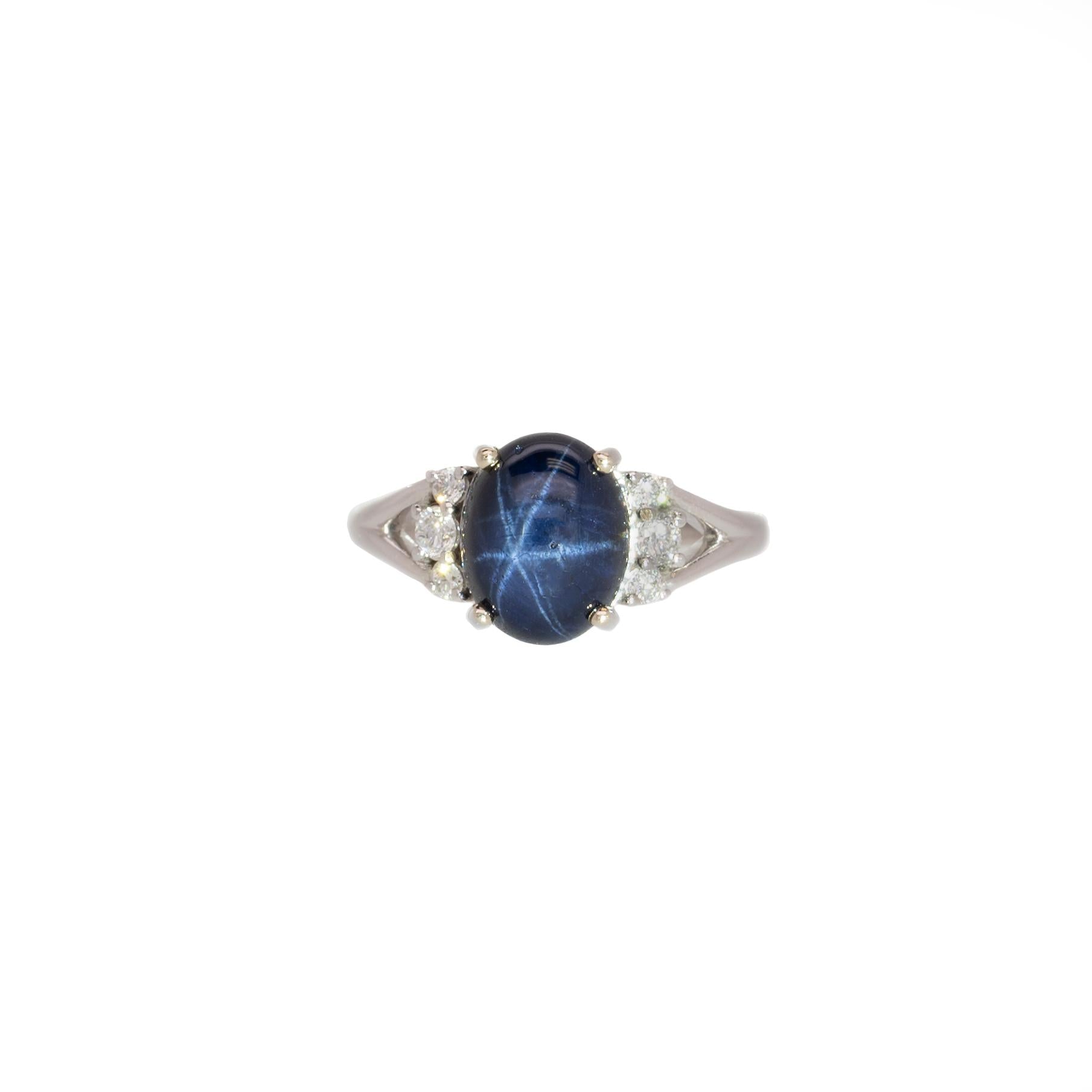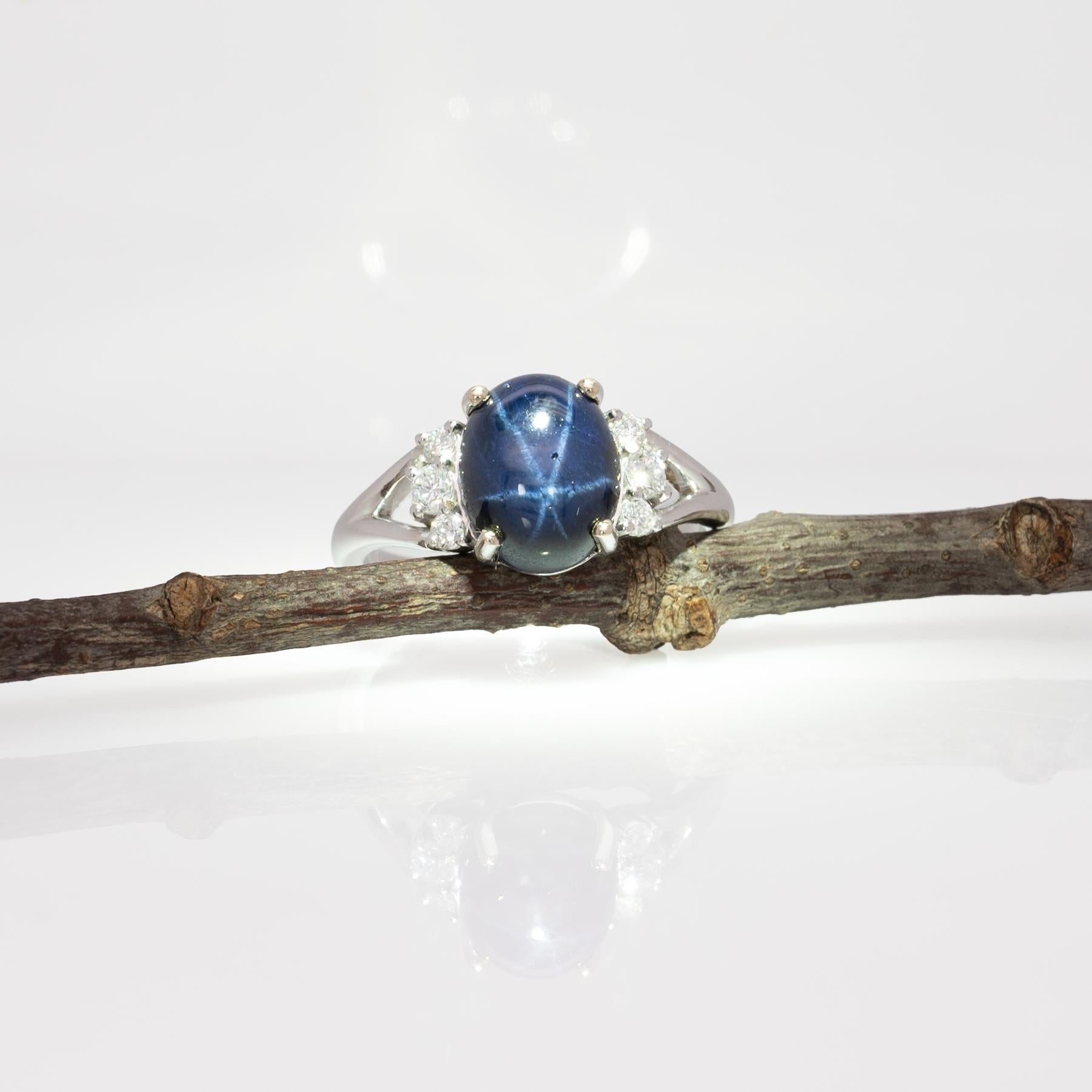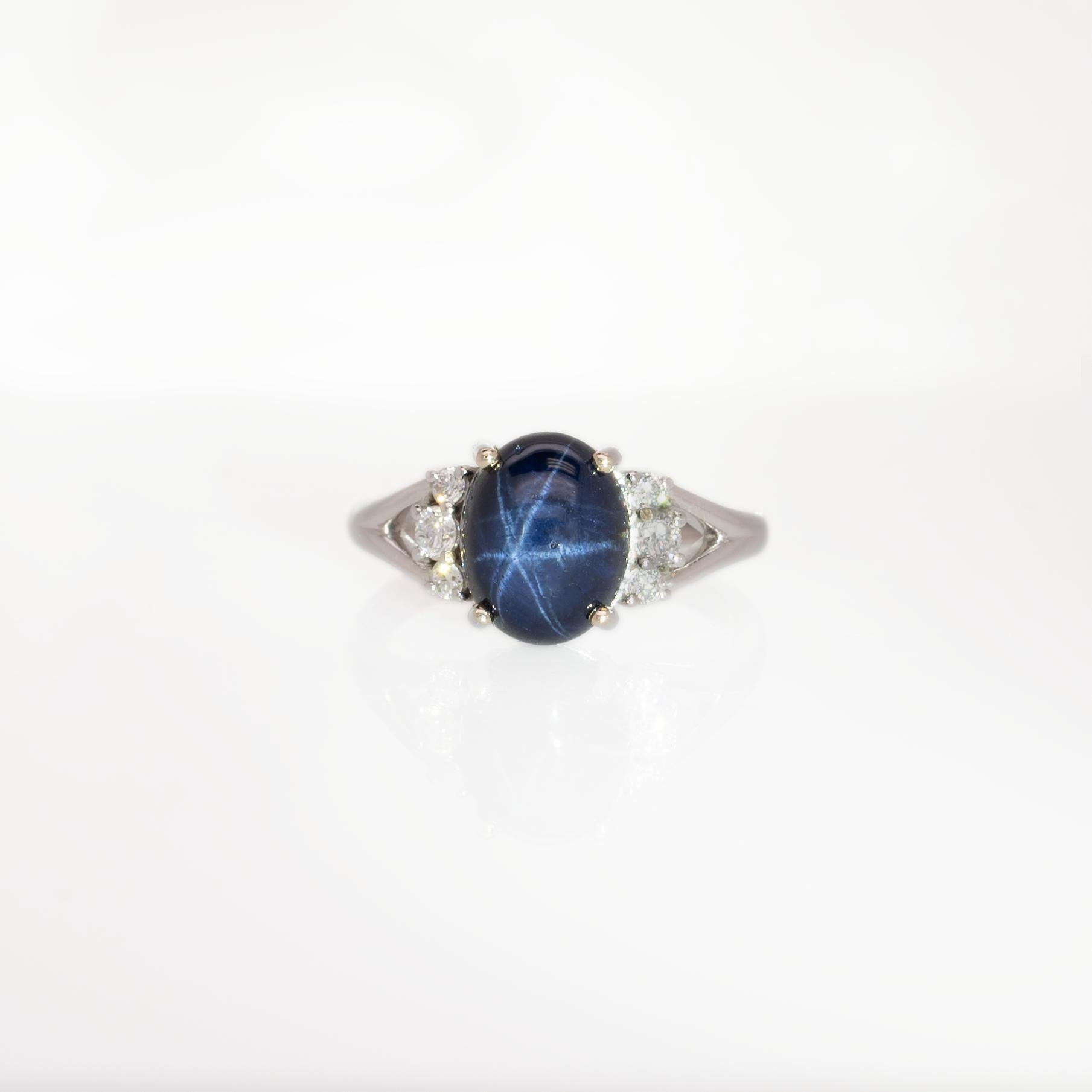 Aseel Solid 14k Gold Star Sapphire Ring with Natural Diamonds Accents, 10x8mm