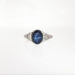 Solid 14k gold ring showcasing a captivating 10x8mm star sapphire centerpiece.