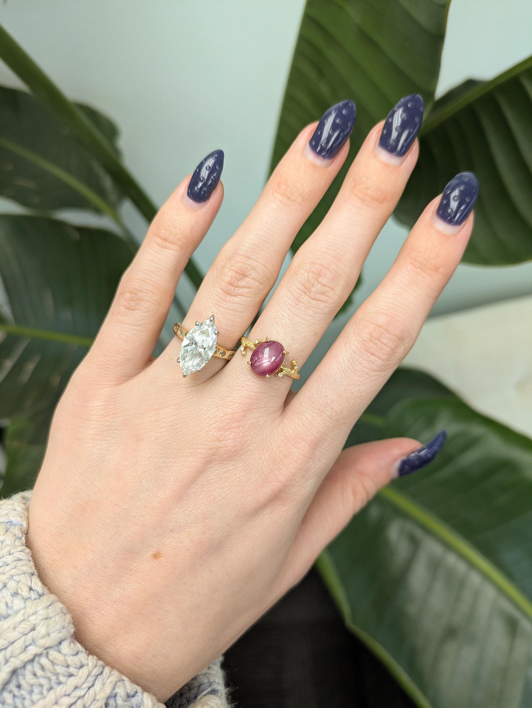 We can cast any of our designs to perfectly fit the shape and size of your center stone! Please share the dimensions of your gem along with the design that you are interested in and we will work up a quote.
