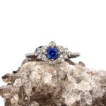 Stacy 14K White Gold AAA Ceylon Sapphire Diamonds Ring | Round 4.6mm