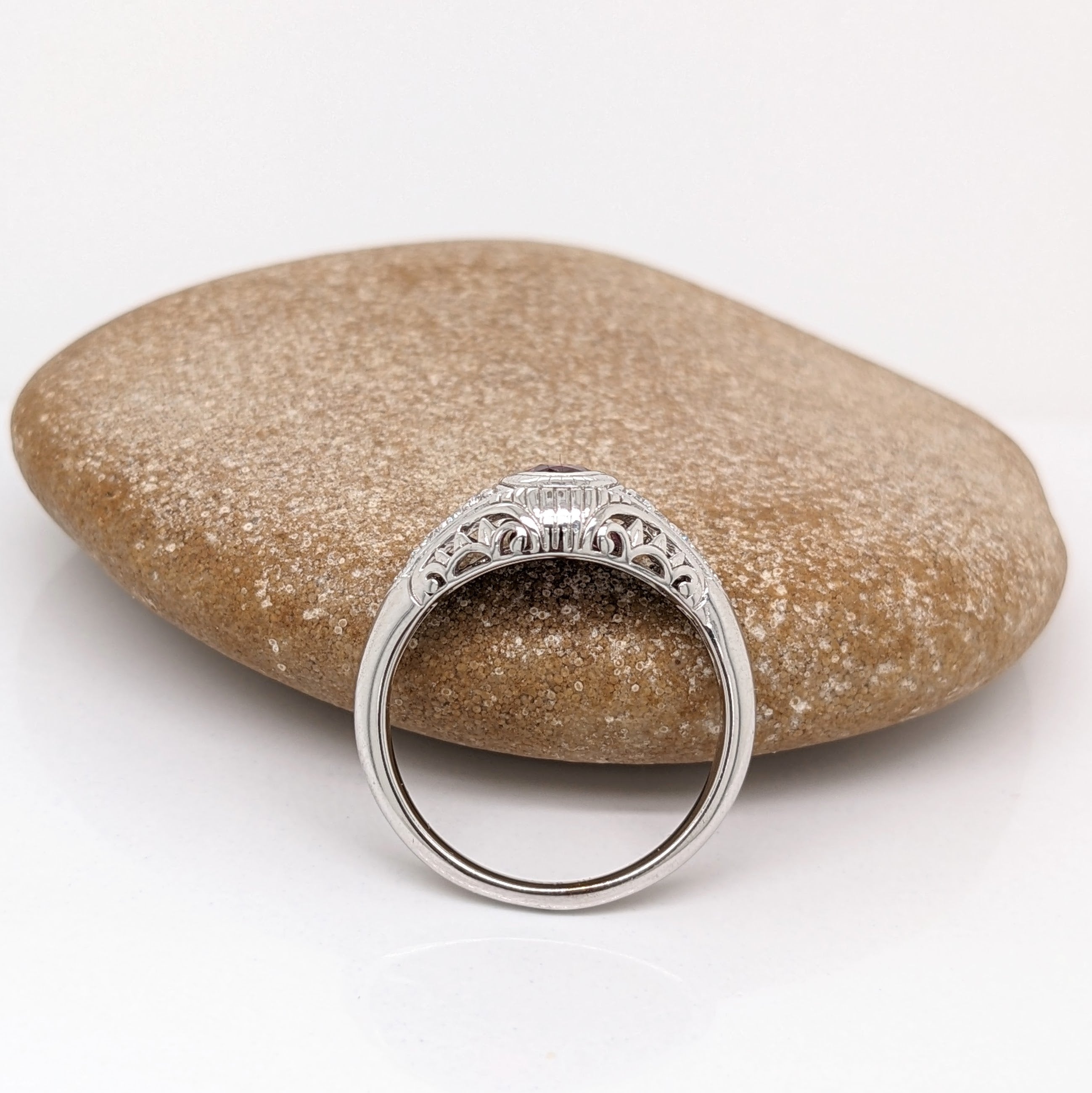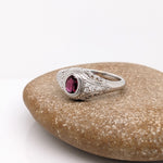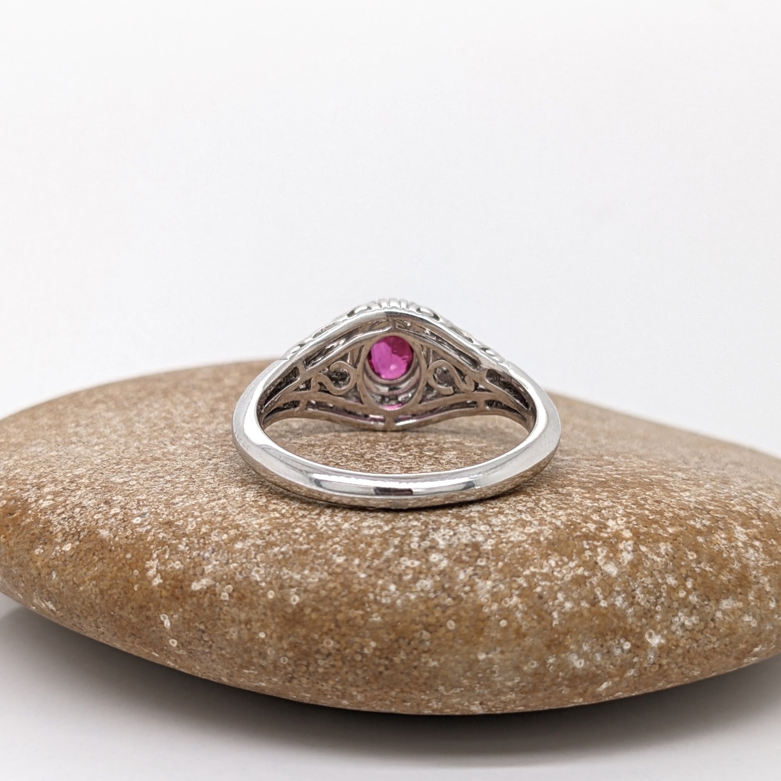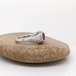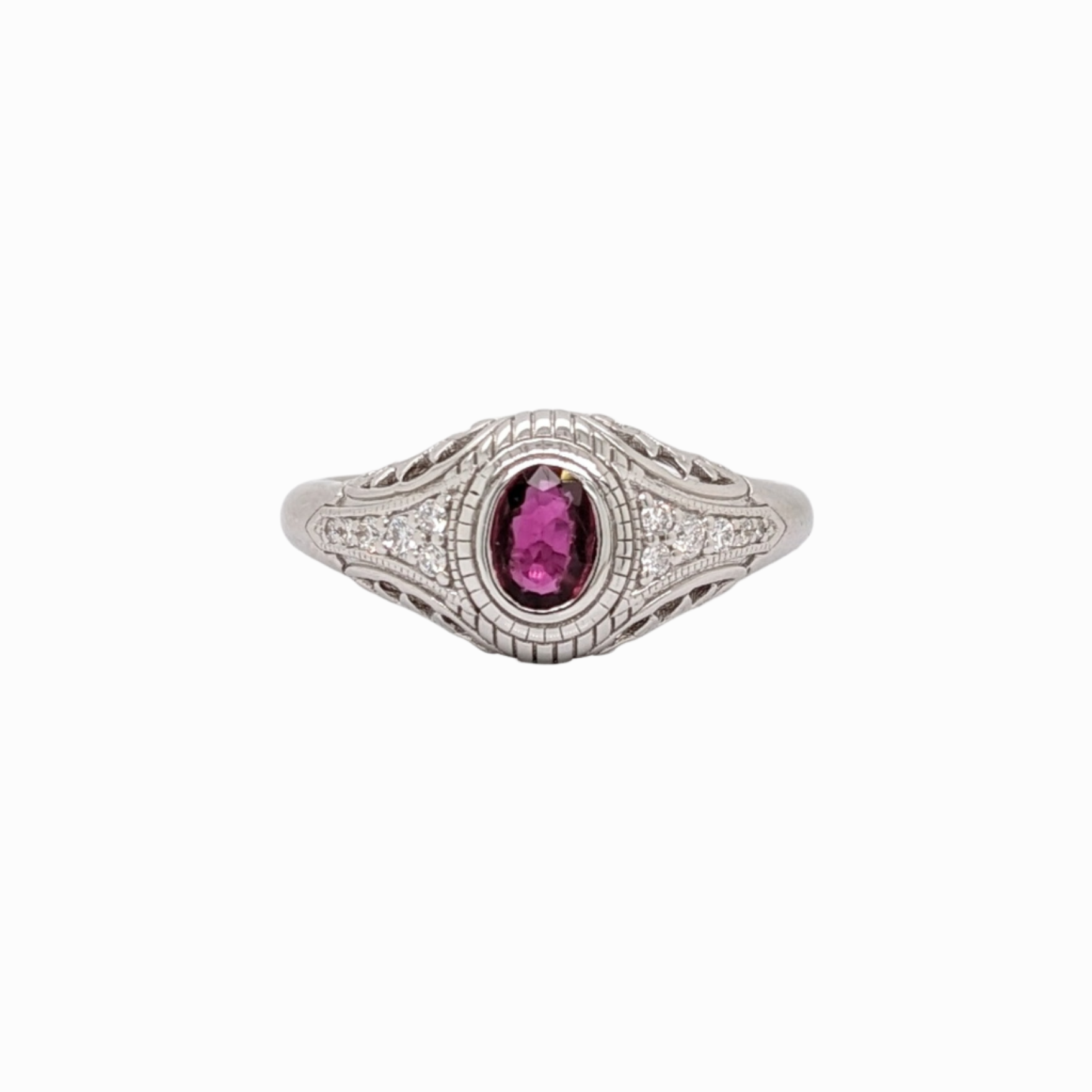 Vintage Inspired Ruby Ring w Earth Mined Diamonds in Solid 14K White Gold | Oval 5x4mm