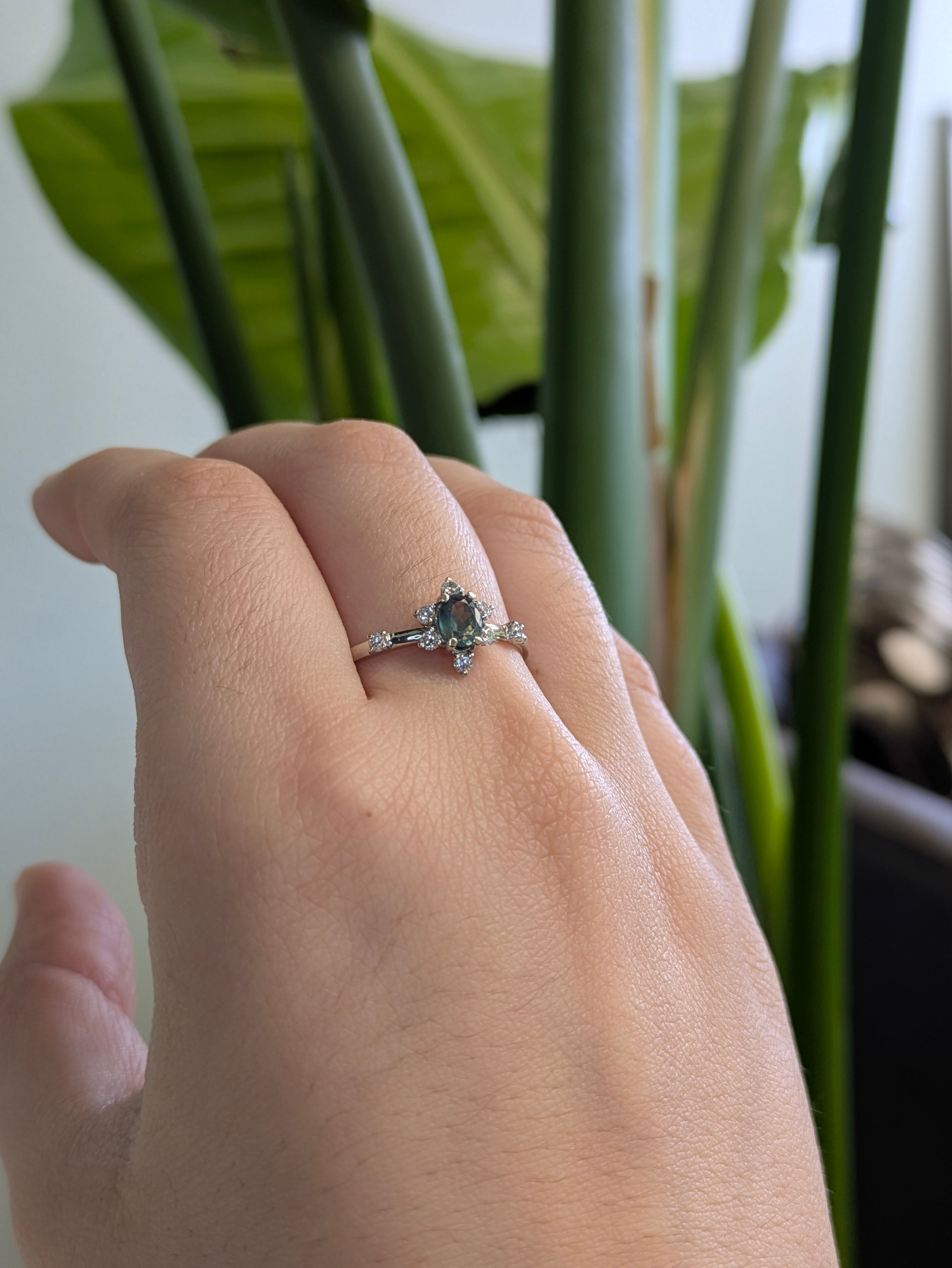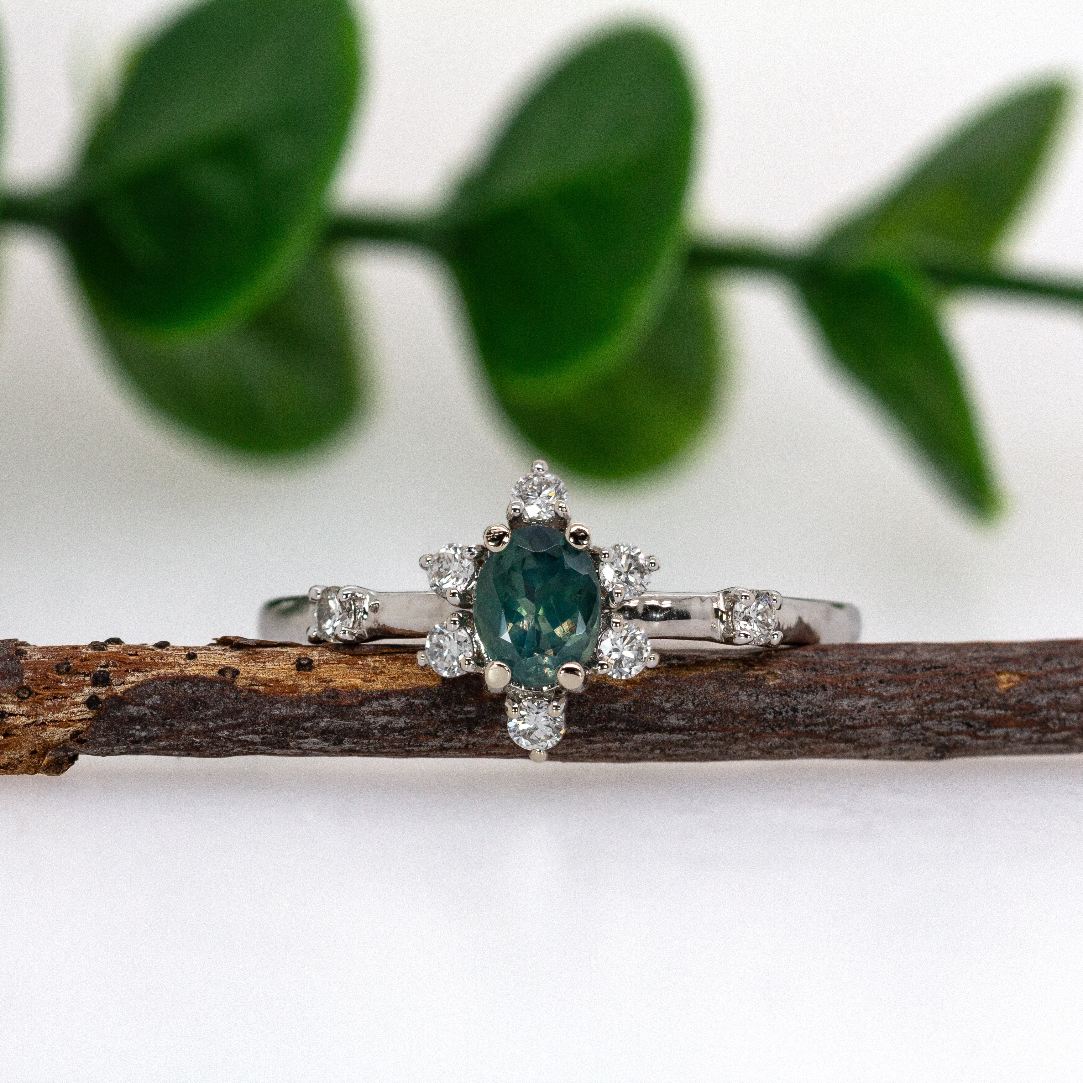 Sanvi 14K White Gold Alexandrite Diamond Ring | Oval 5x4mm
