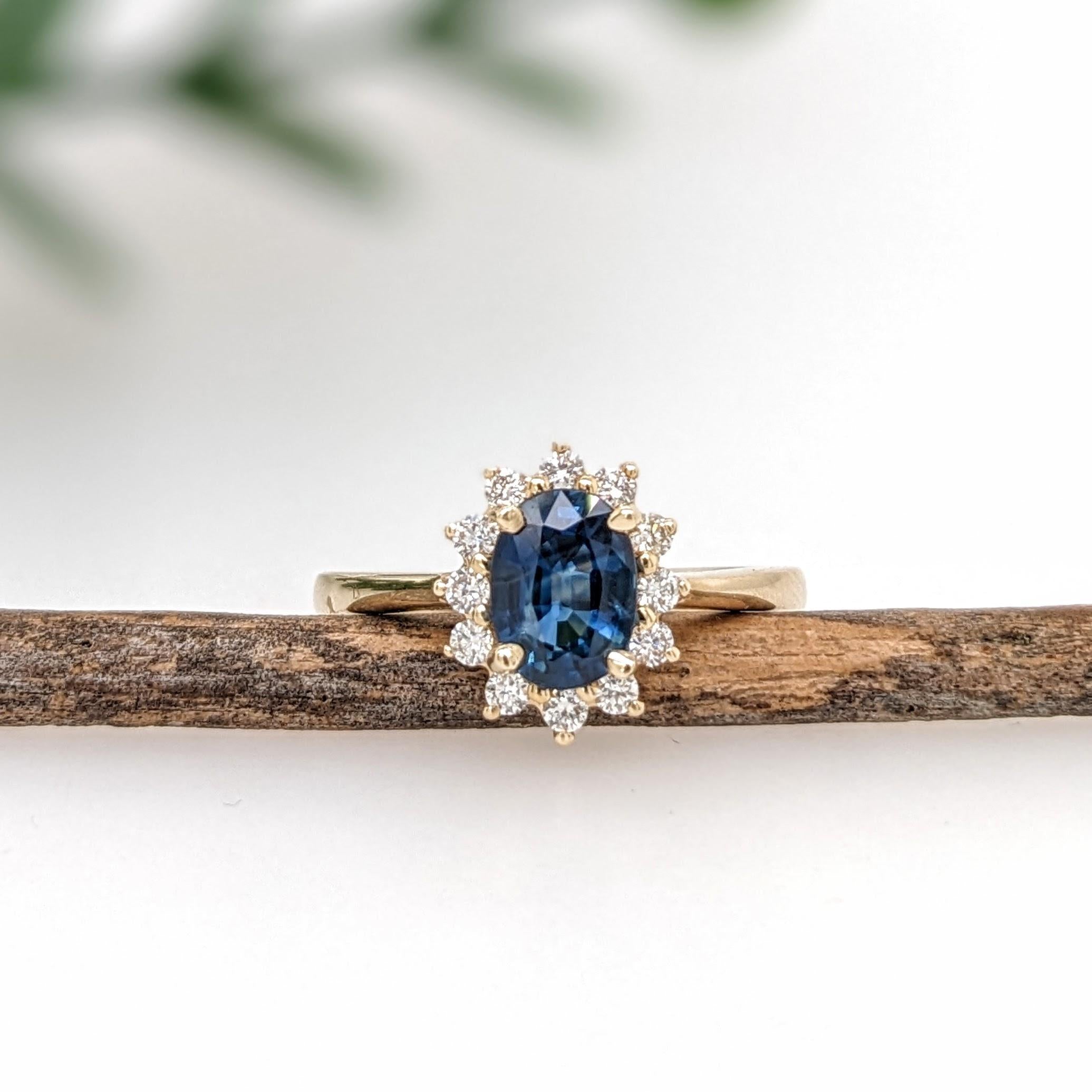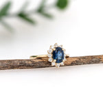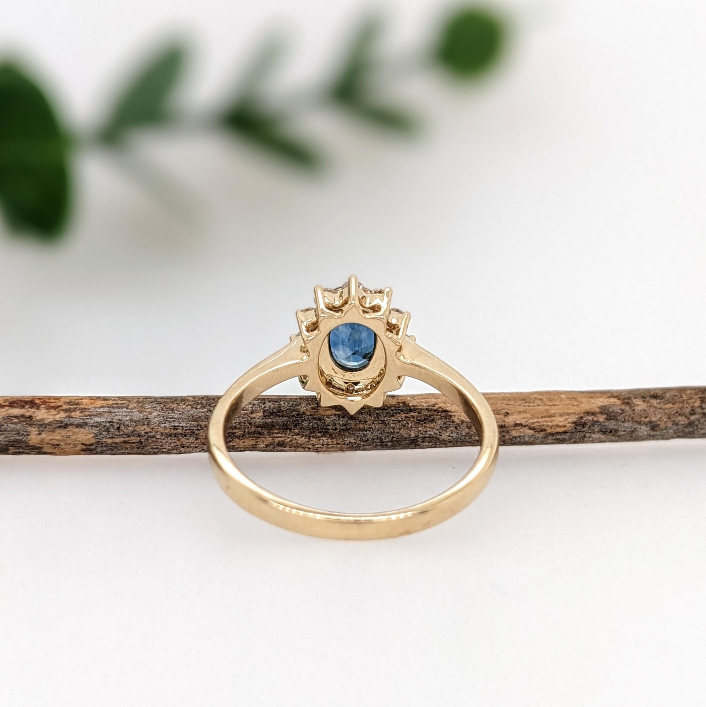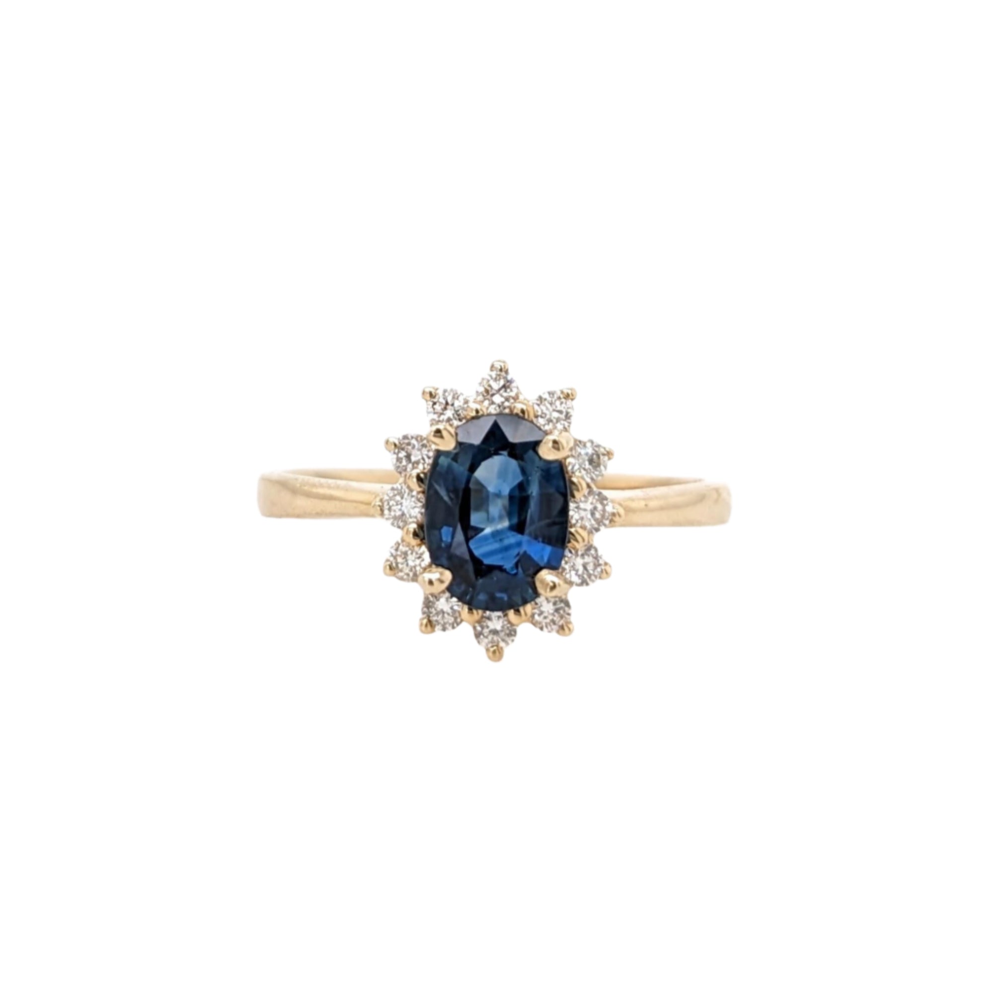 Blue Sapphire Ring w Earth Mined Diamonds in Solid 14K Yellow Gold | Oval 7x5mm