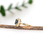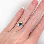This beautiful ring features a 0.90 carat Sapphire gemstone with a halo of natural earth mined diamonds set in solid 14K gold. This Sapphire ring makes a lovely September birthstone gift for your loved ones!