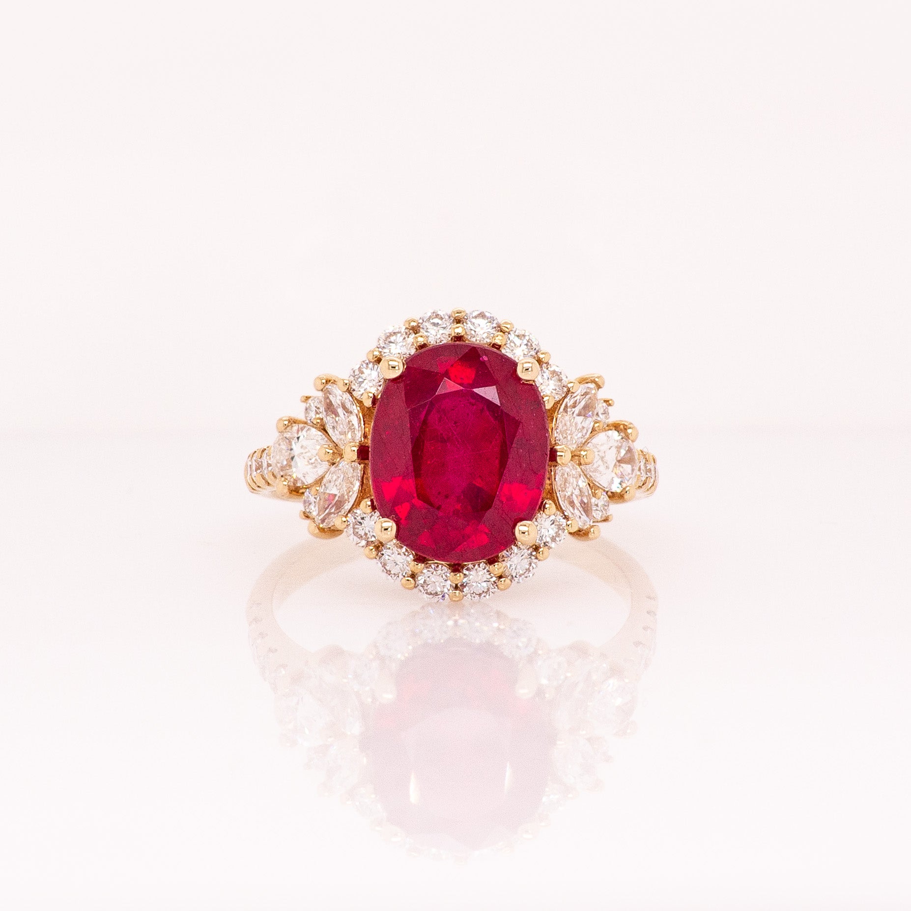 Brie 4.3cts Madagascar Ruby Ring with Natural Diamond Accents: 14k Solid Gold, 10x8mm