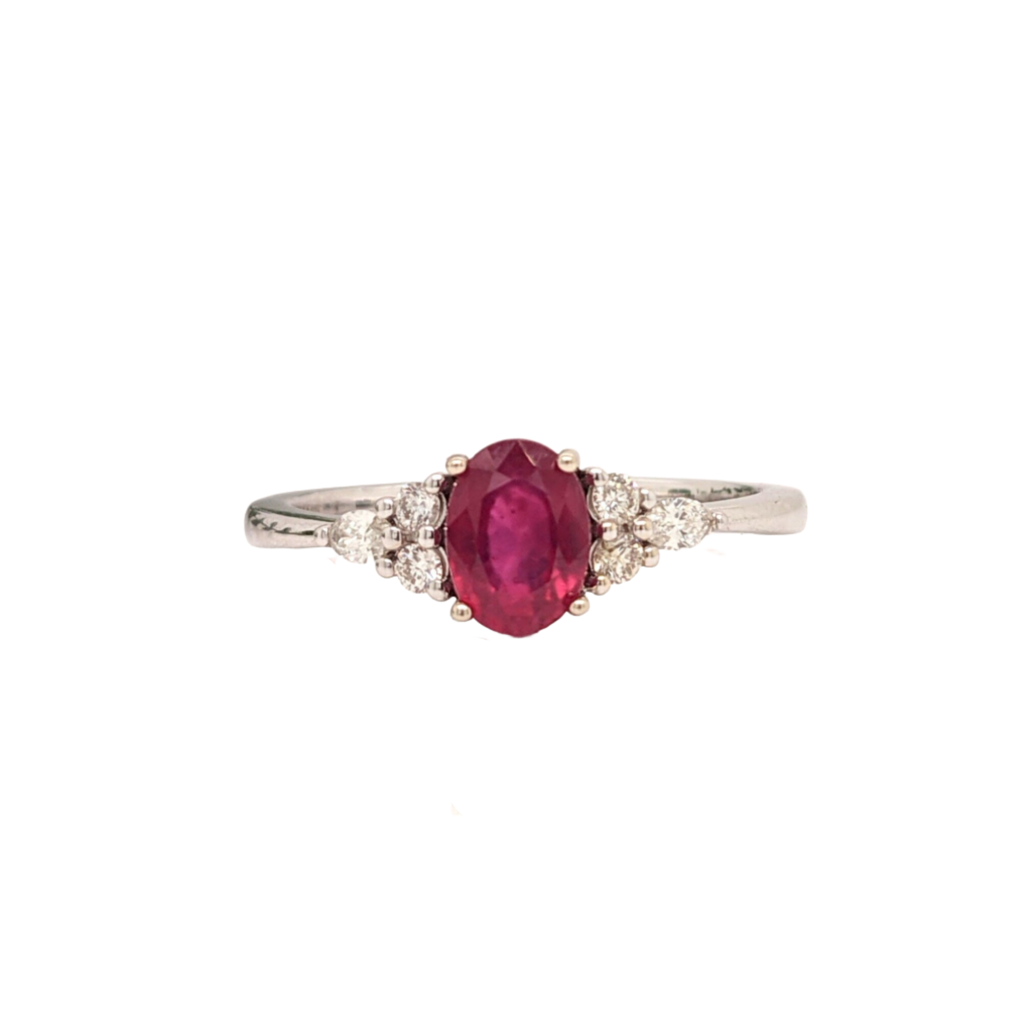 Gorgeous and timeless! Celebrate your love with this dazzling ruby and diamond ring in 14K white gold. The rich red ruby is perfectly offset by the round and marquise diamond accents, creating a piece of jewelry as unique as your relationship.