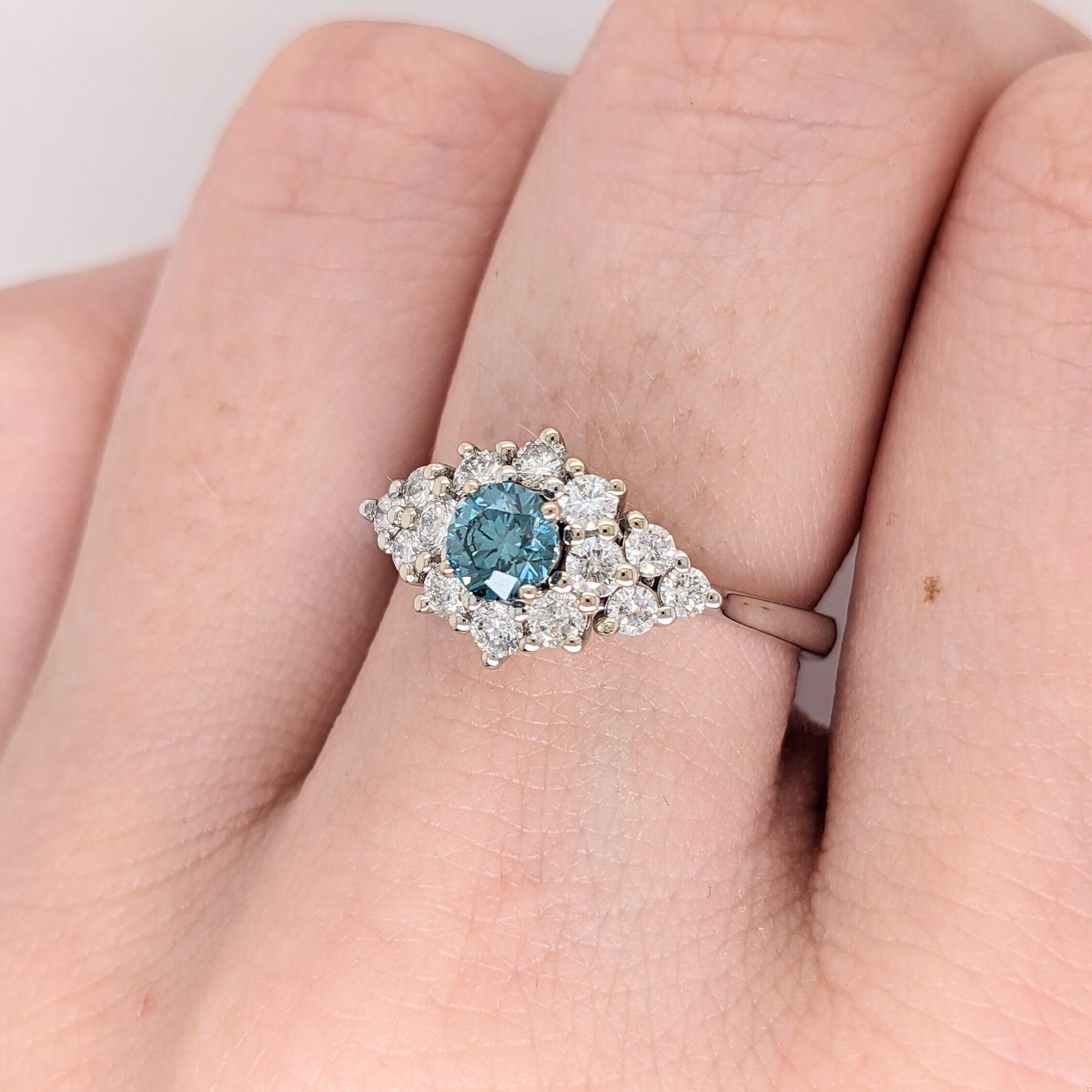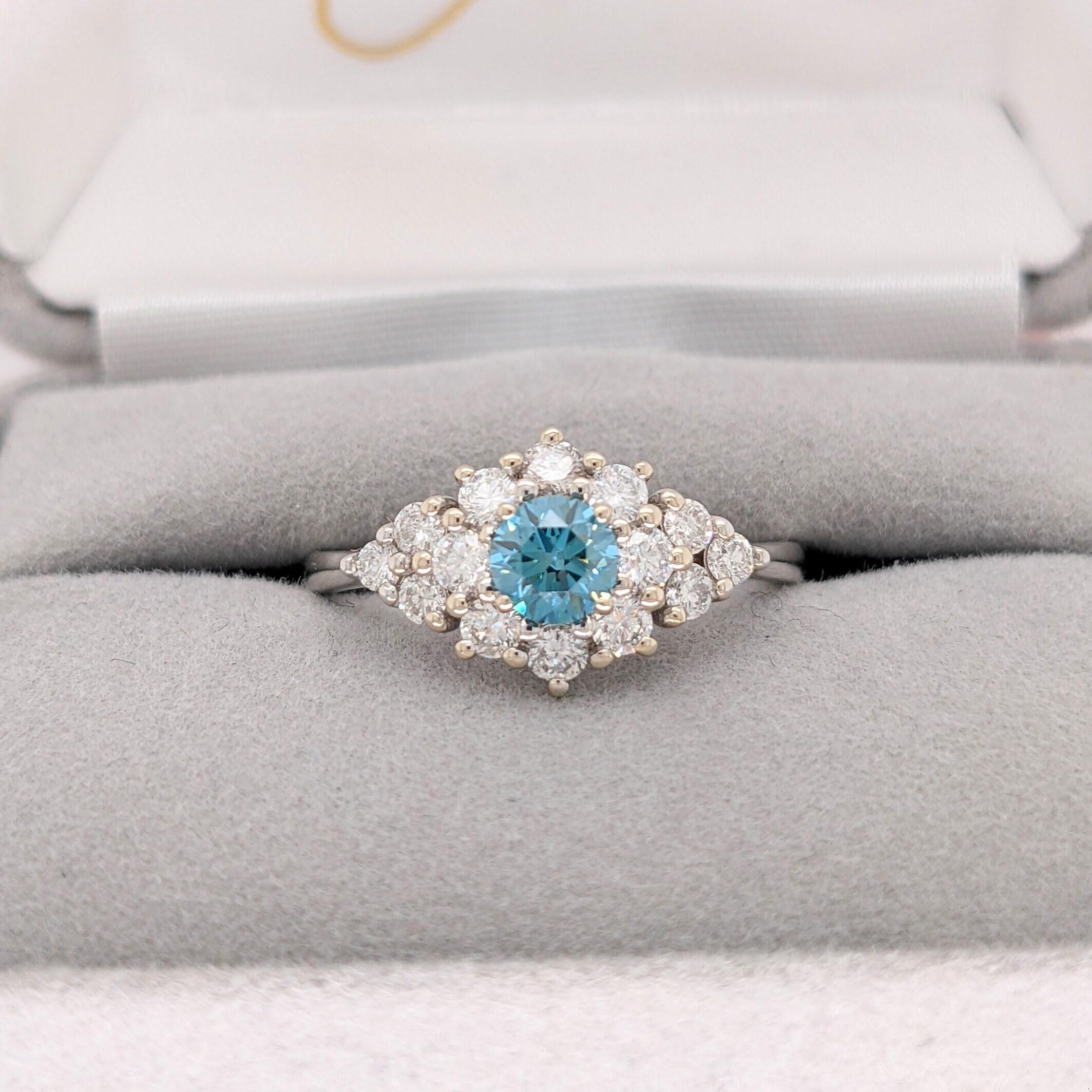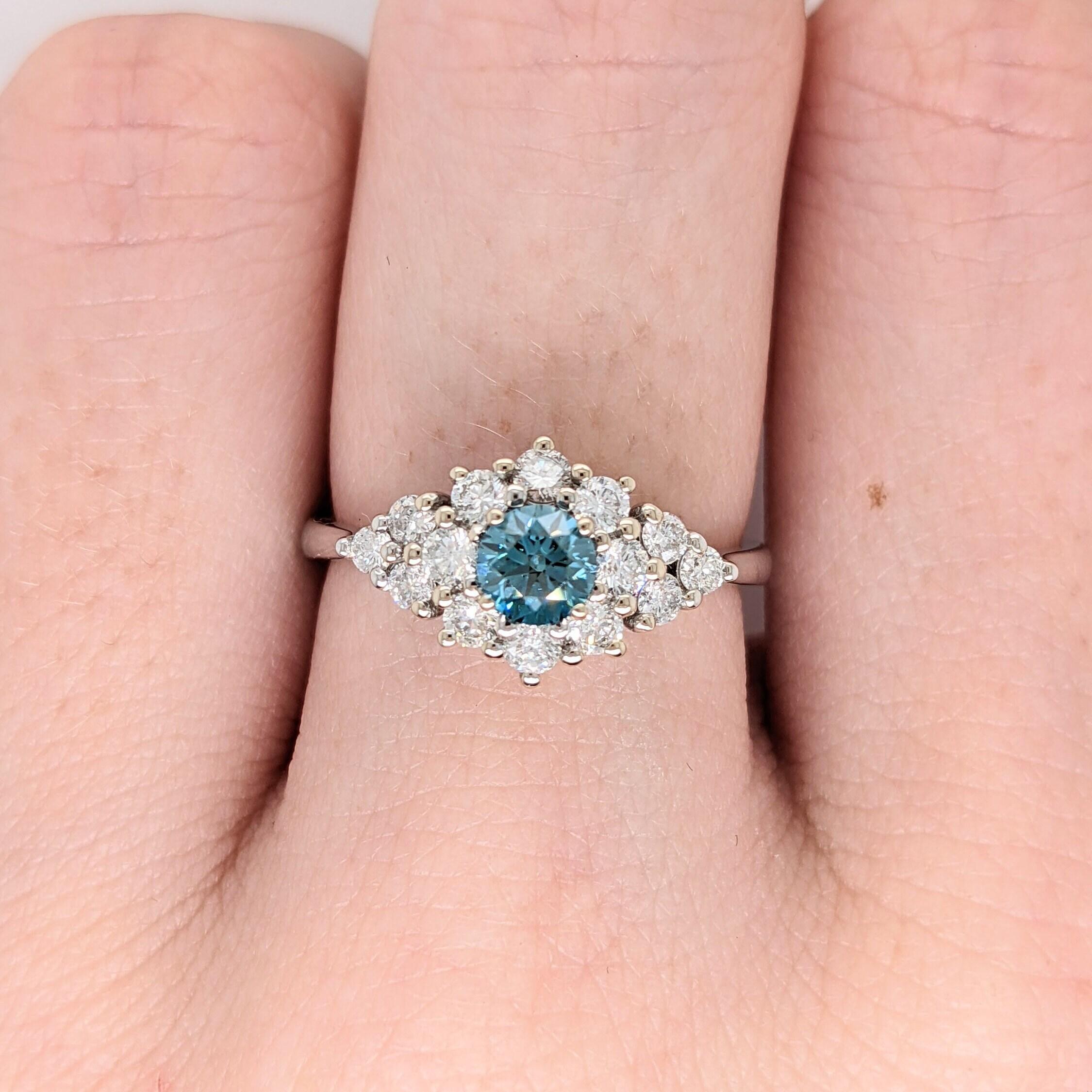 Classic Blue Diamond Ring W Earth Mined Diamonds in Solid 14k White Gold | Round 4mm