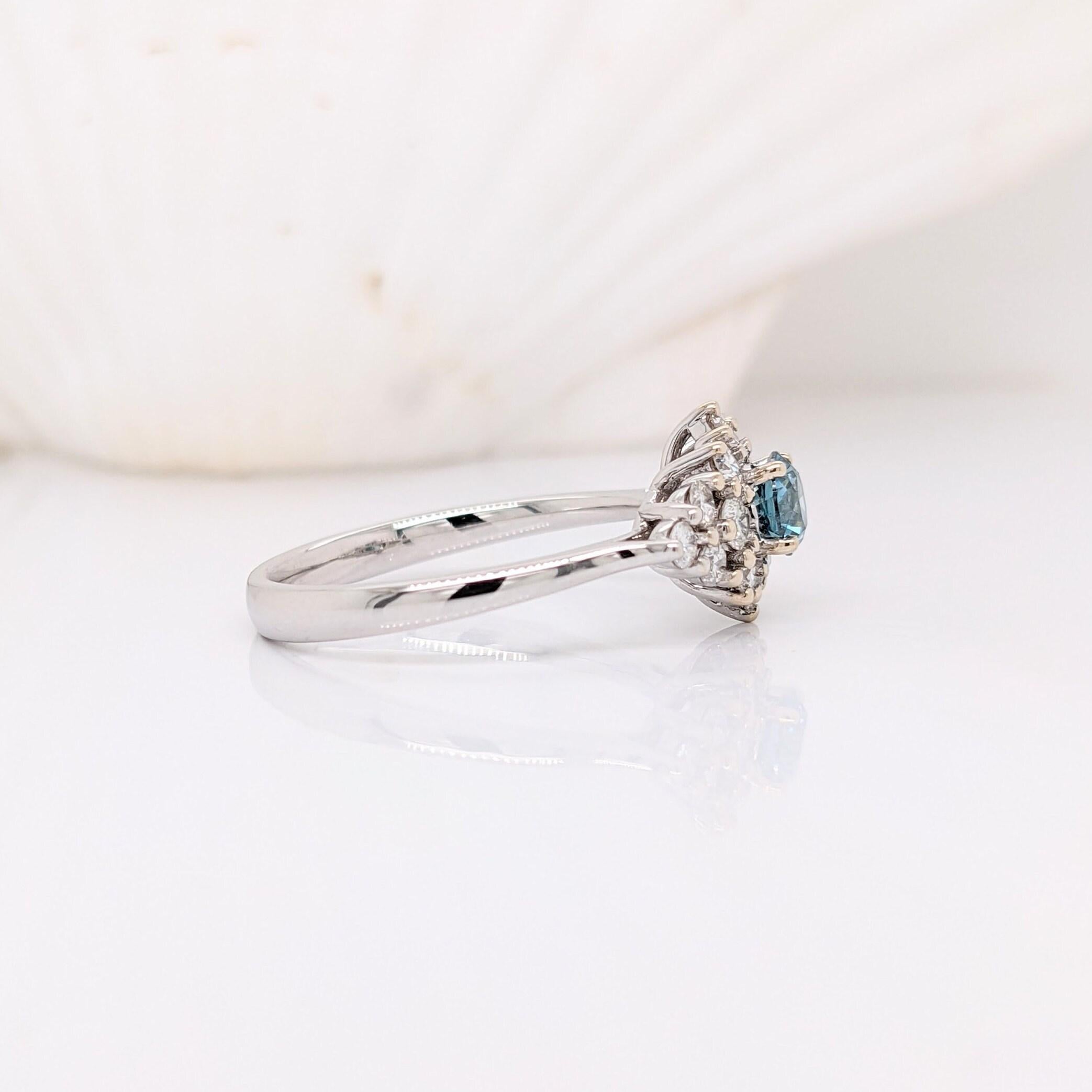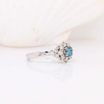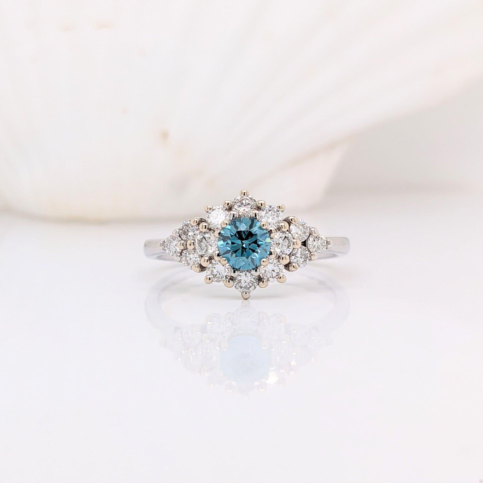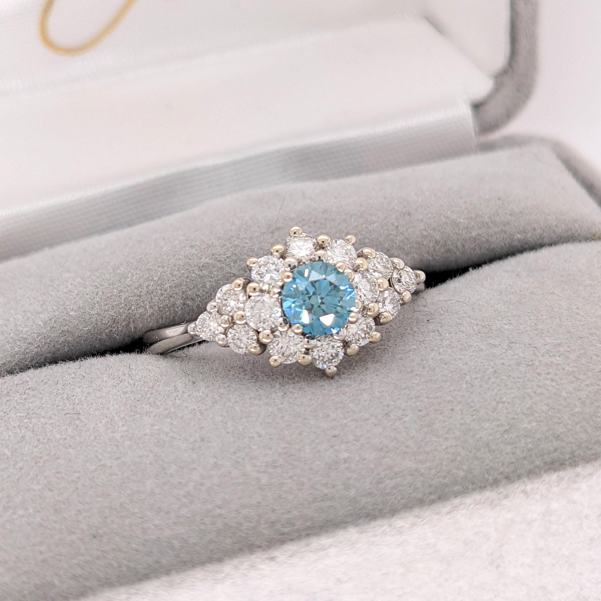 Classic Blue Diamond Ring W Earth Mined Diamonds in Solid 14k White Gold | Round 4mm