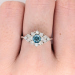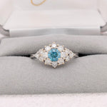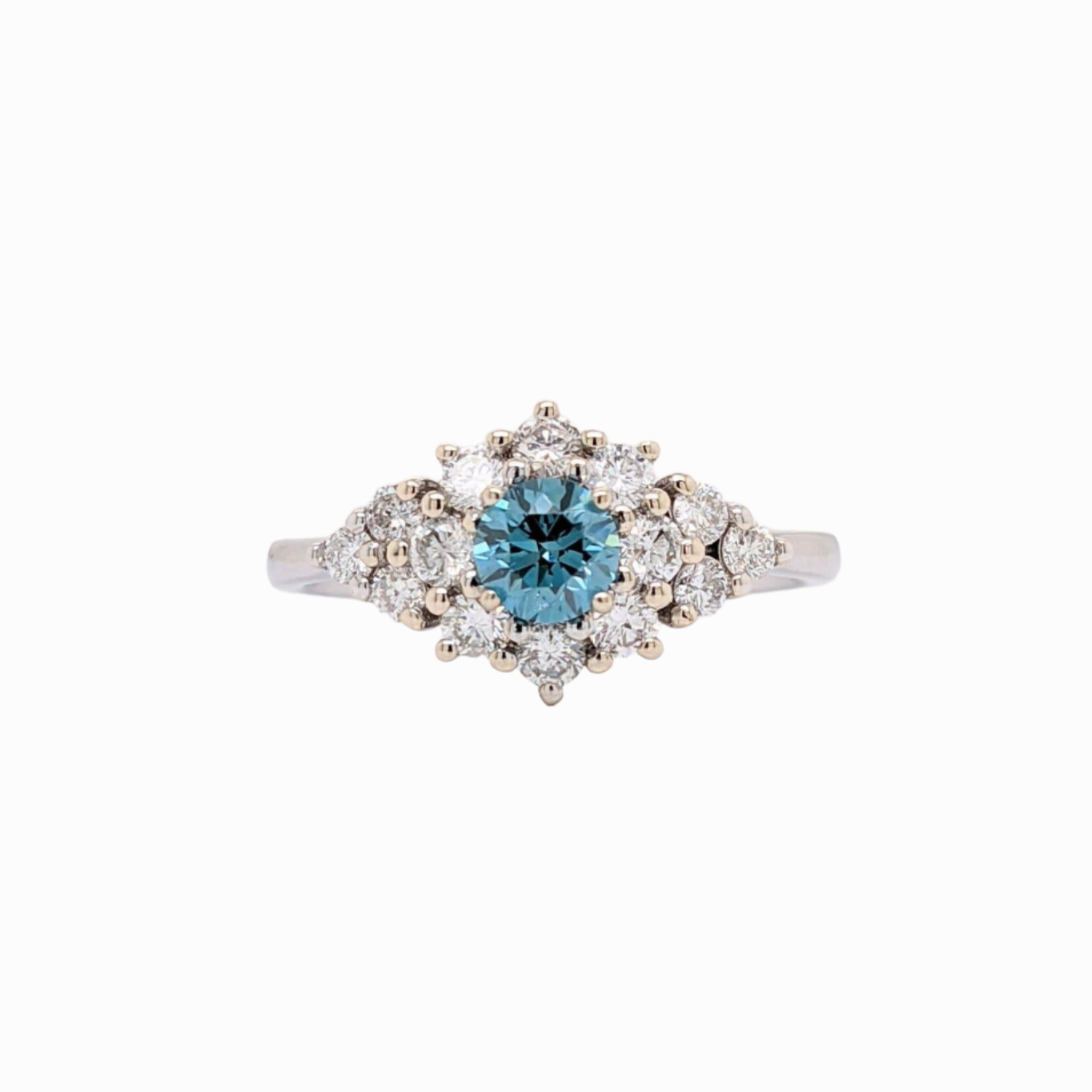 We've set this light Blue diamond with loads of white diamond accents to create the most sparkly and luxurious ring. Diamonds are set in solid 14K gold with strong prongs to allow you be able to wear it worry free daily!