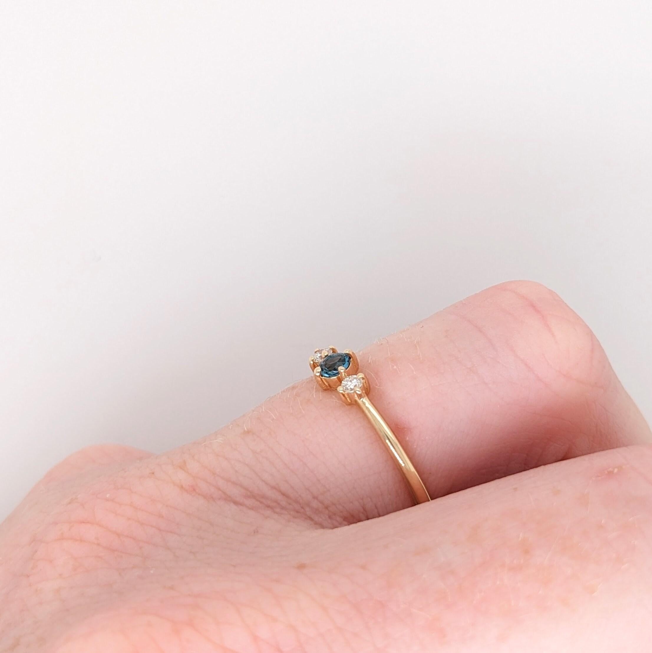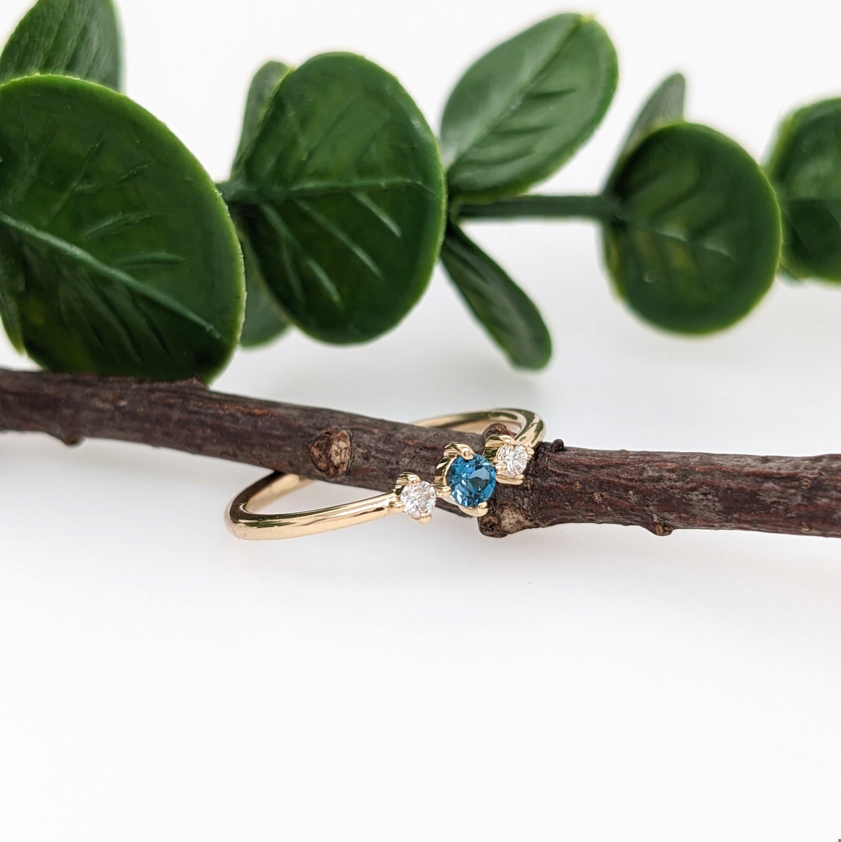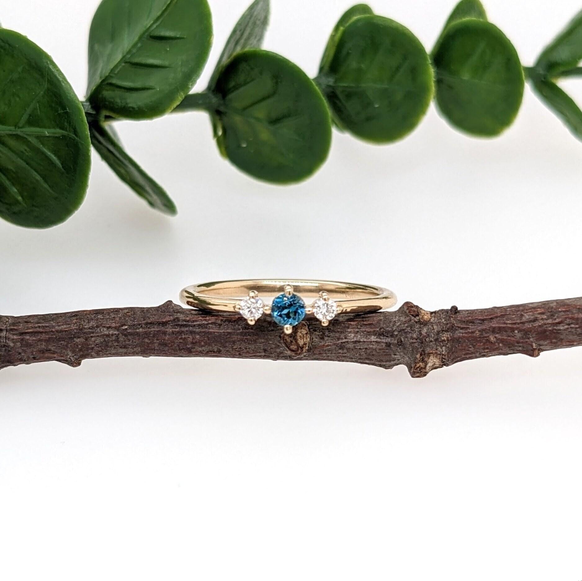 Dainty London Blue Topaz Ring in Solid 14K Yellow Gold w Natural Diamond Accents | Round 3mm | December Birthstone | Daily Wear