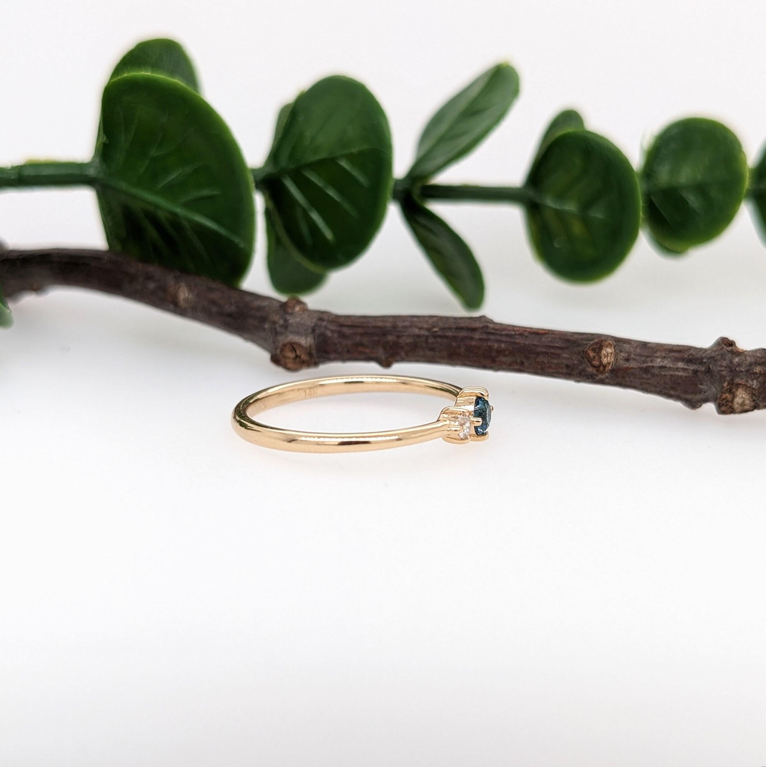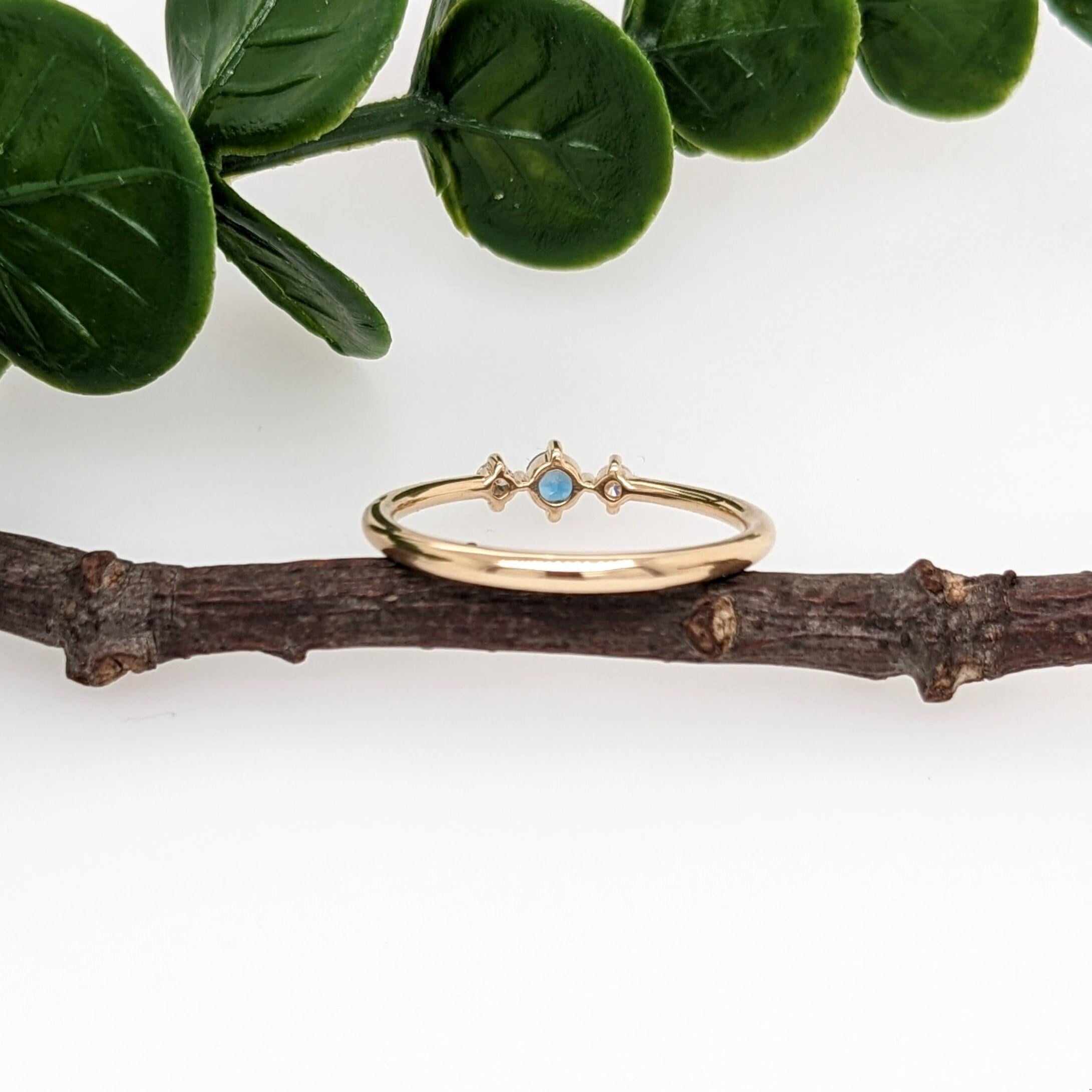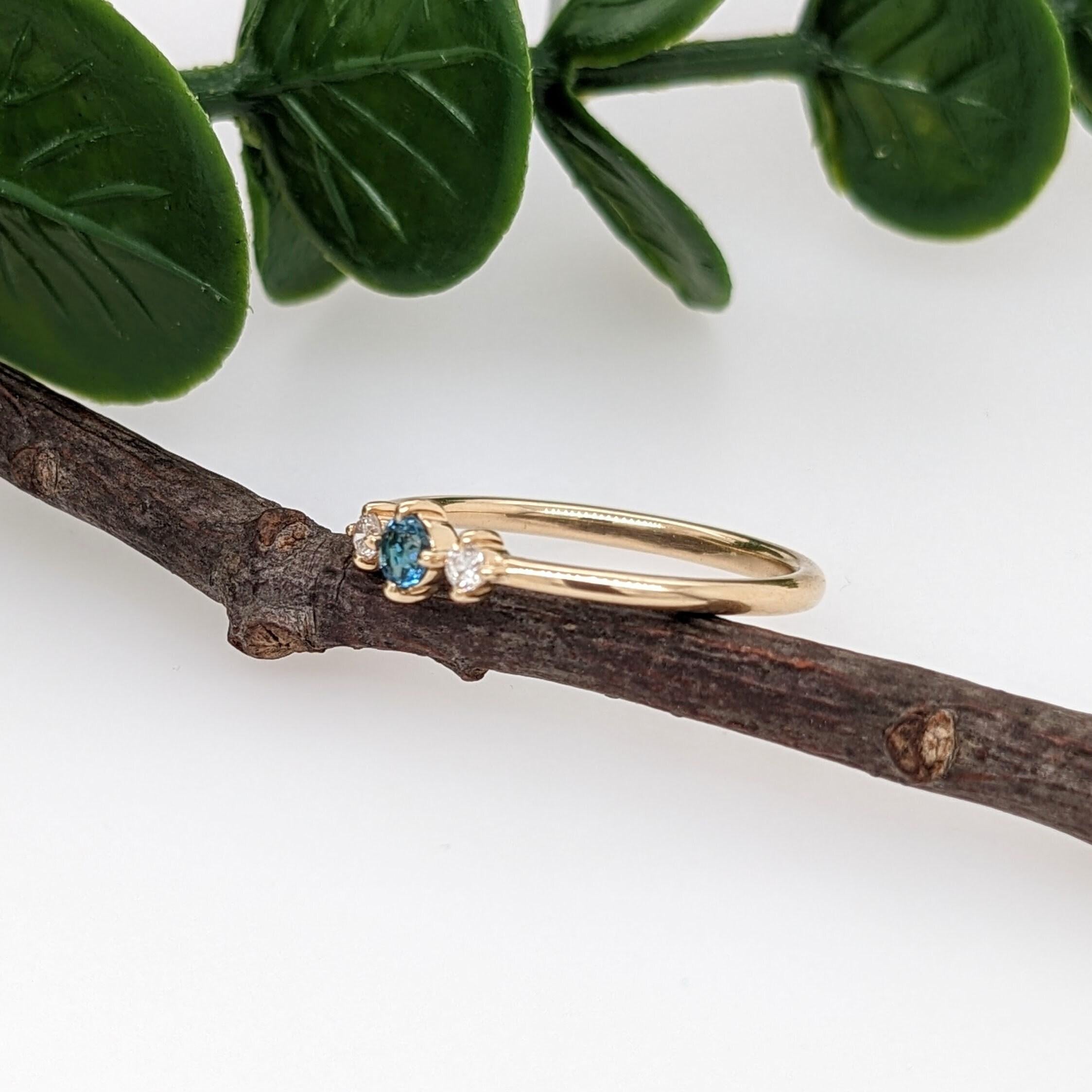 Dainty London Blue Topaz Ring in Solid 14K Yellow Gold w Natural Diamond Accents | Round 3mm | December Birthstone | Daily Wear