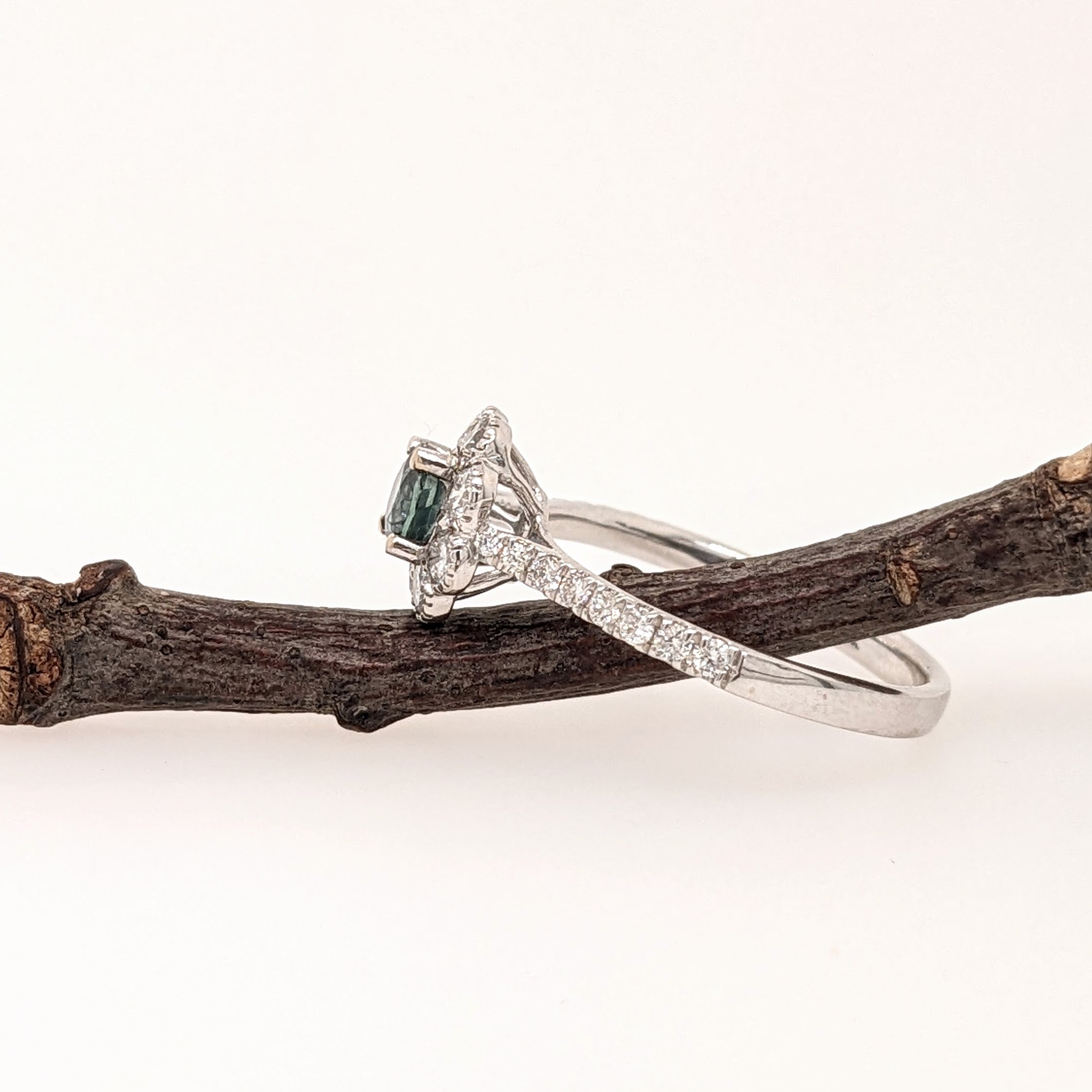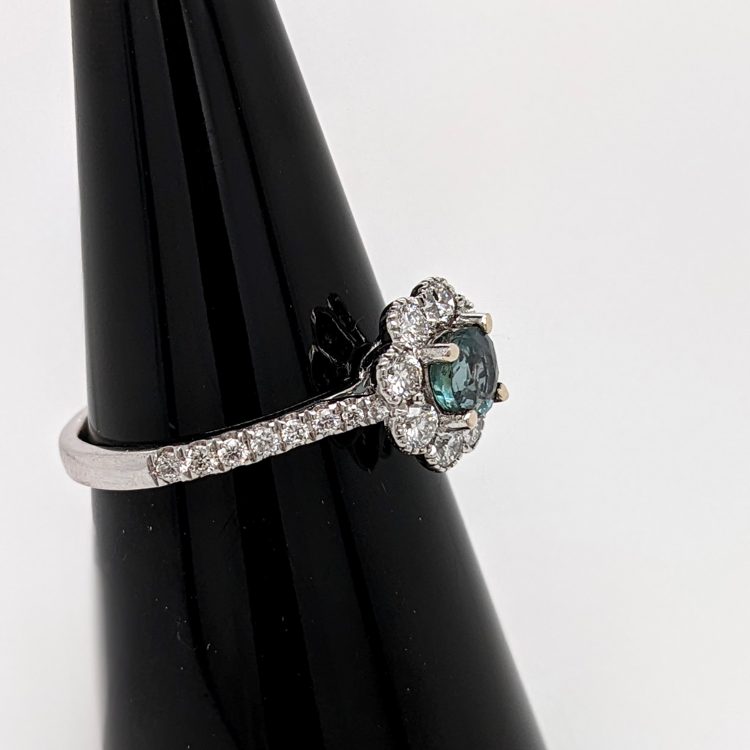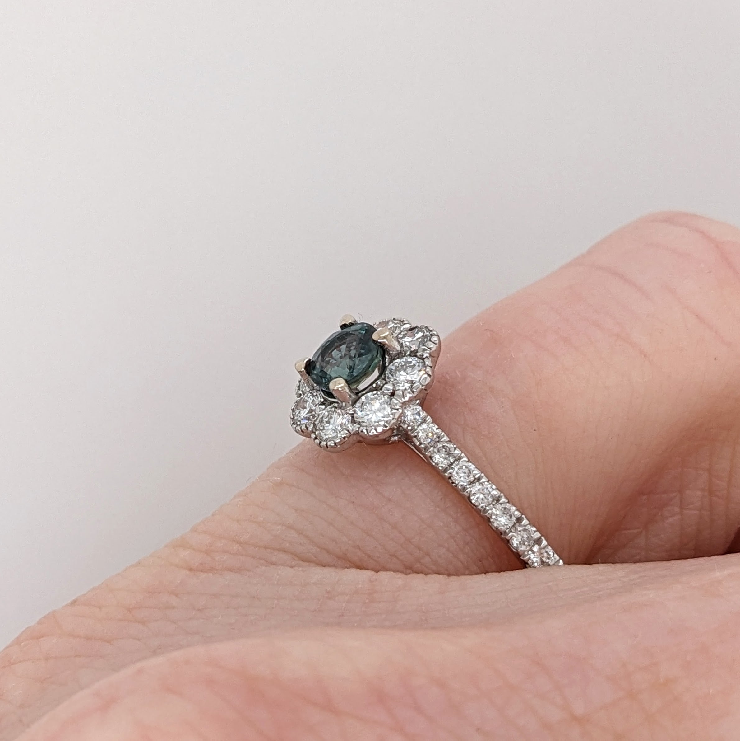 Dainty Round Alexandrite Ring w Natural Diamond Accents in Solid 14K White Gold