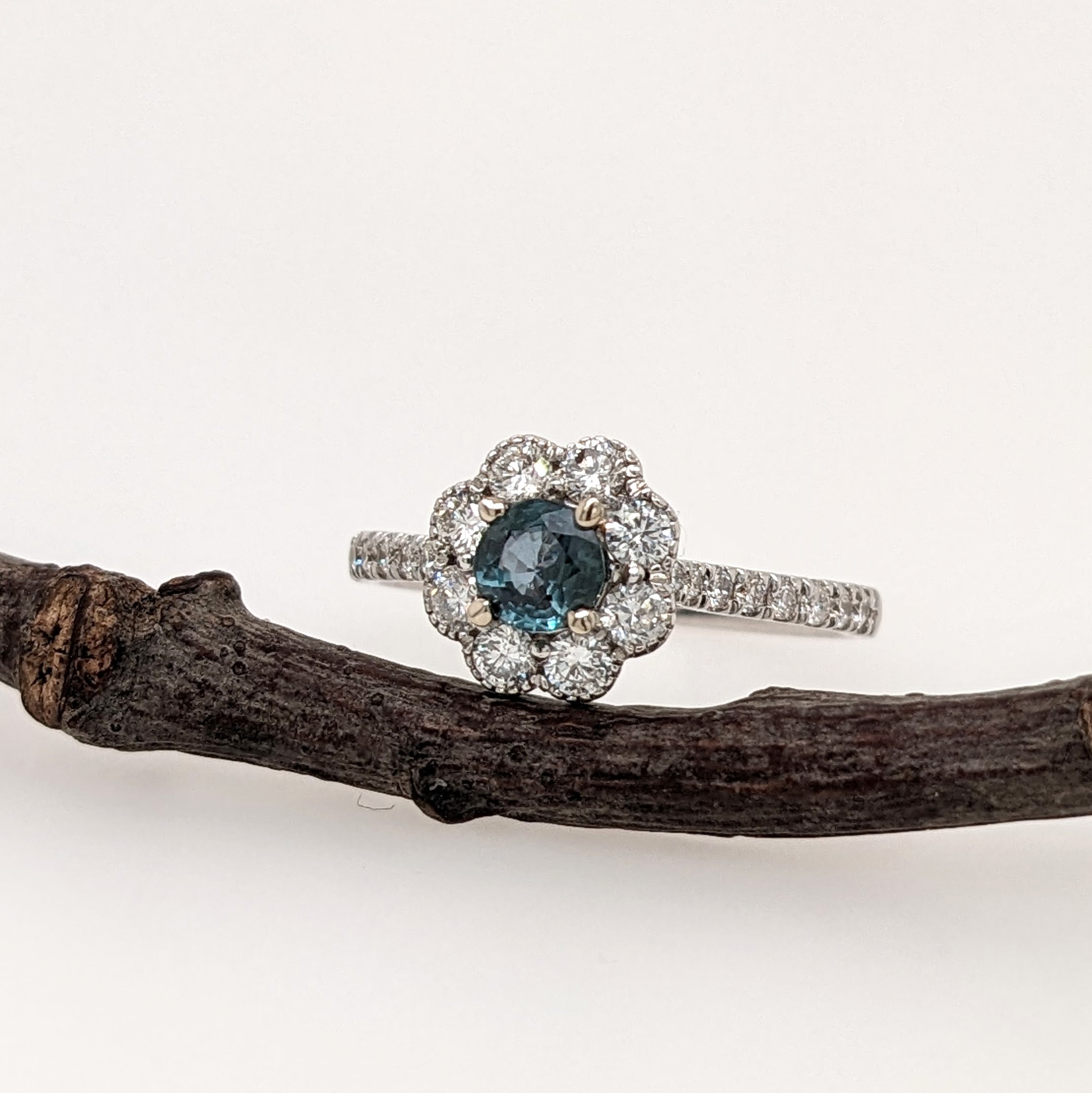 Flower Power Natural Color Changing Alexandrite Ring in 14K WhiteGold | Round 4.3mm