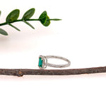 Timeless elegance meets natural beauty in the Naksha Colombian Emerald Ring, a luxurious piece designed to captivate. This exquisite ring features a 6x4mm emerald-cut Colombian emerald, celebrated for its deep green hue and exceptional clarity. Set in 14K yellow gold, the band adds warmth and sophistication, perfectly complementing the vibrant center stone.