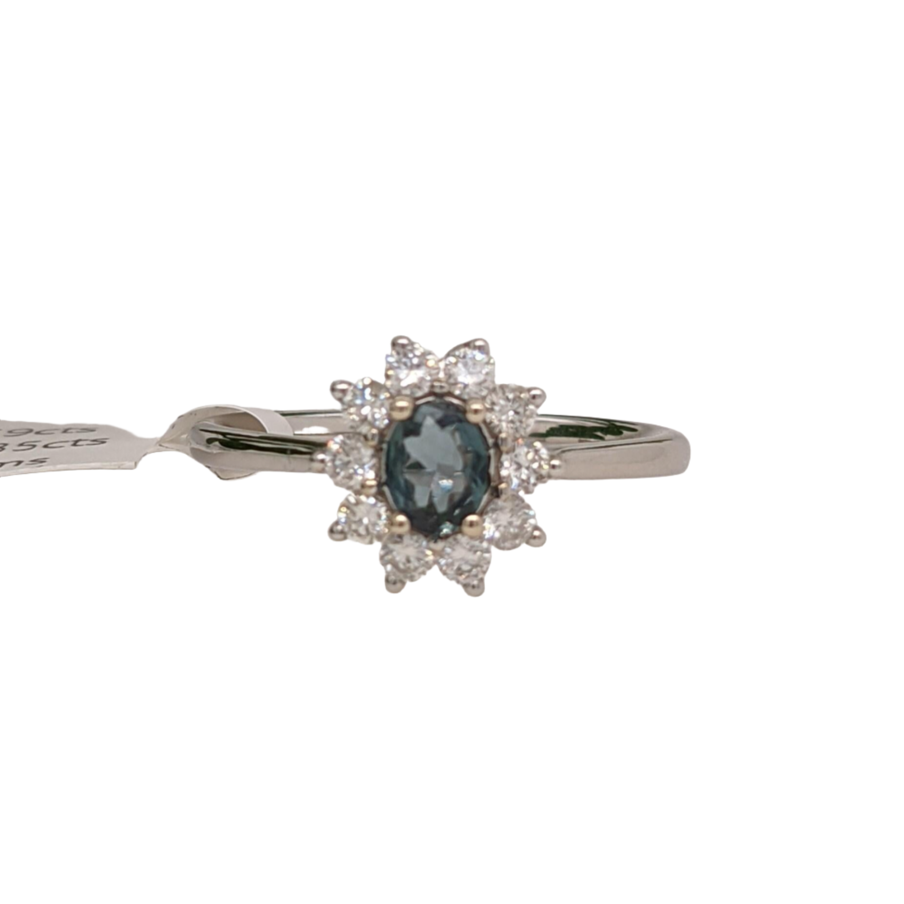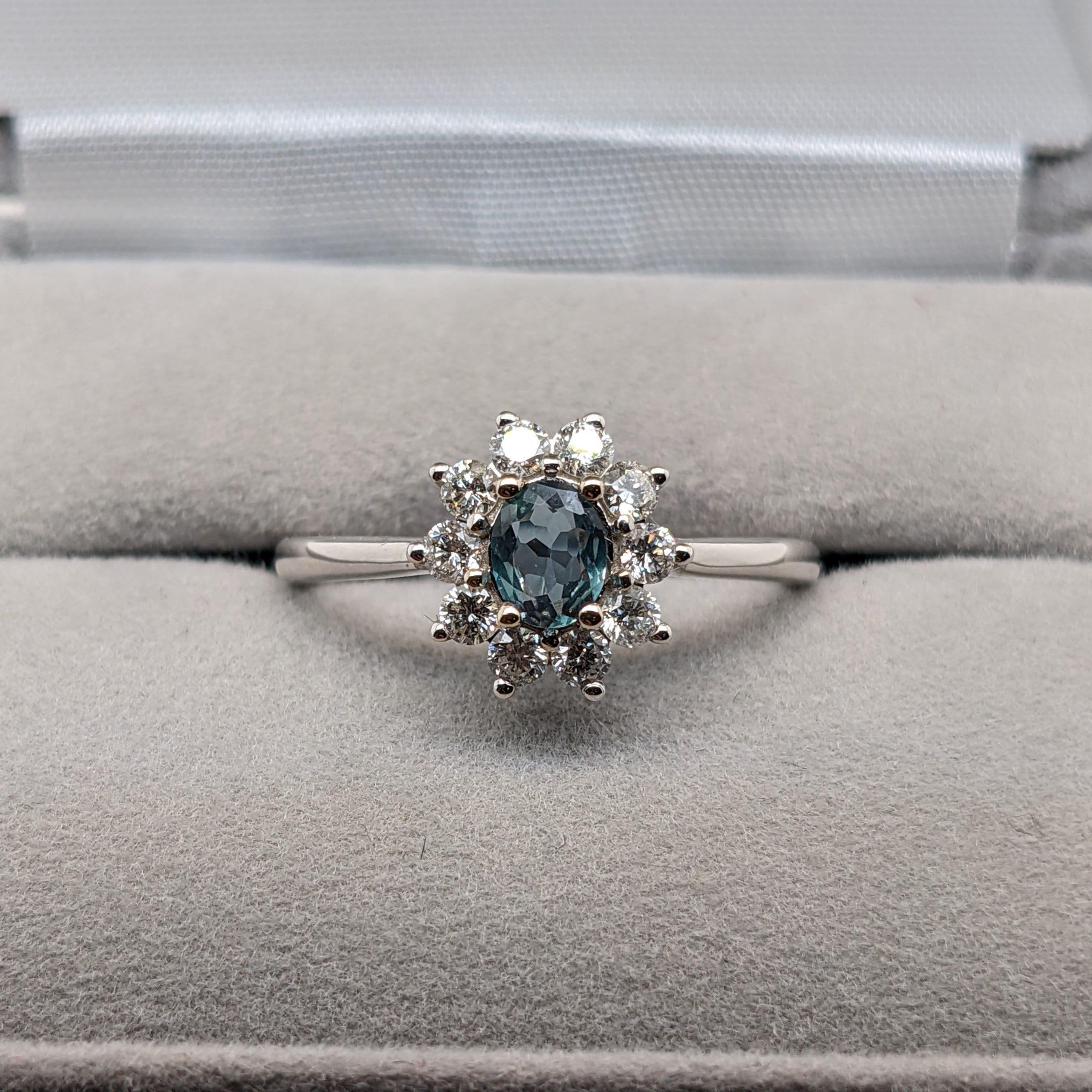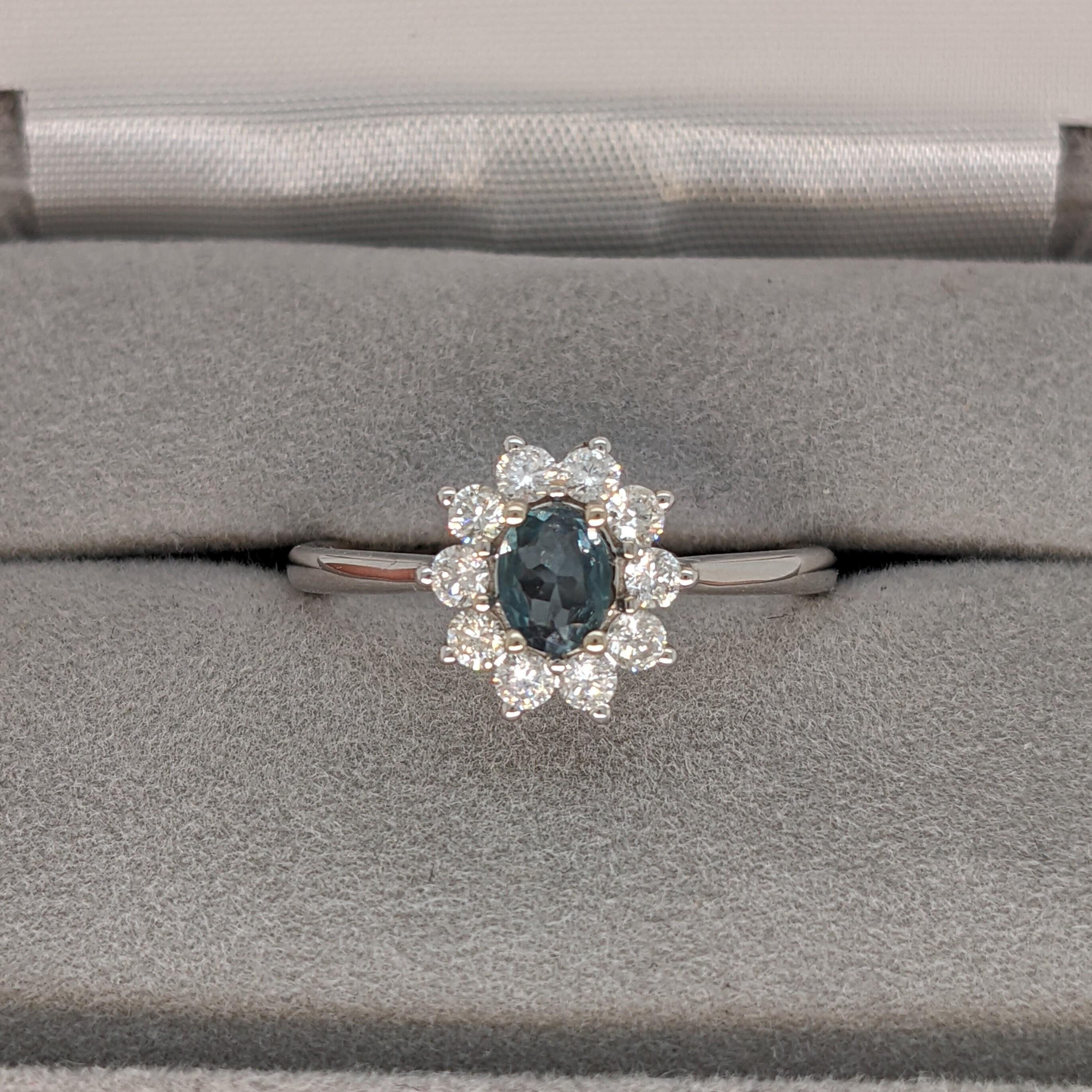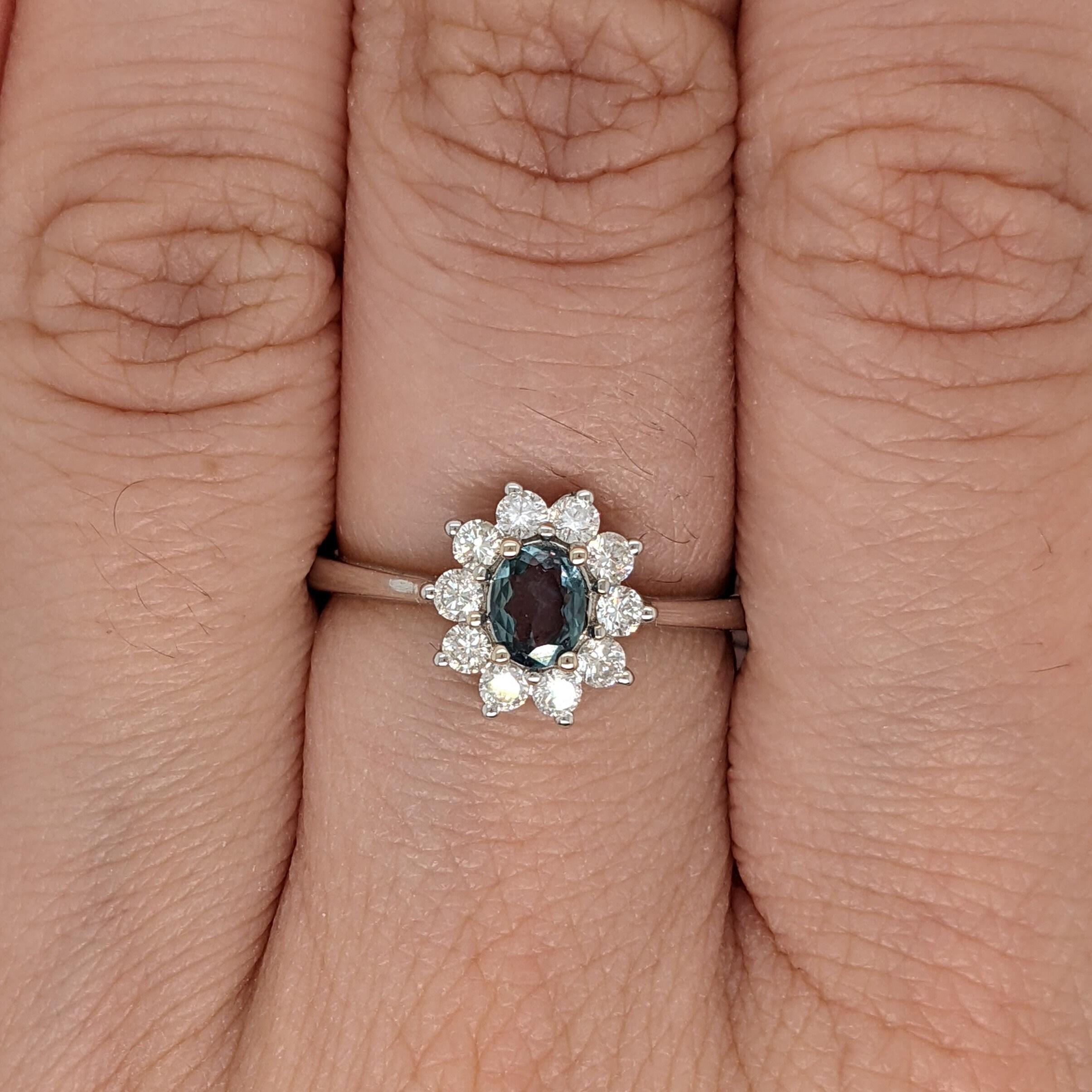 Natural Alexandrite Ring in Solid 14K White Gold with Natural Diamonds | Oval 5x4mm | June Birthstone