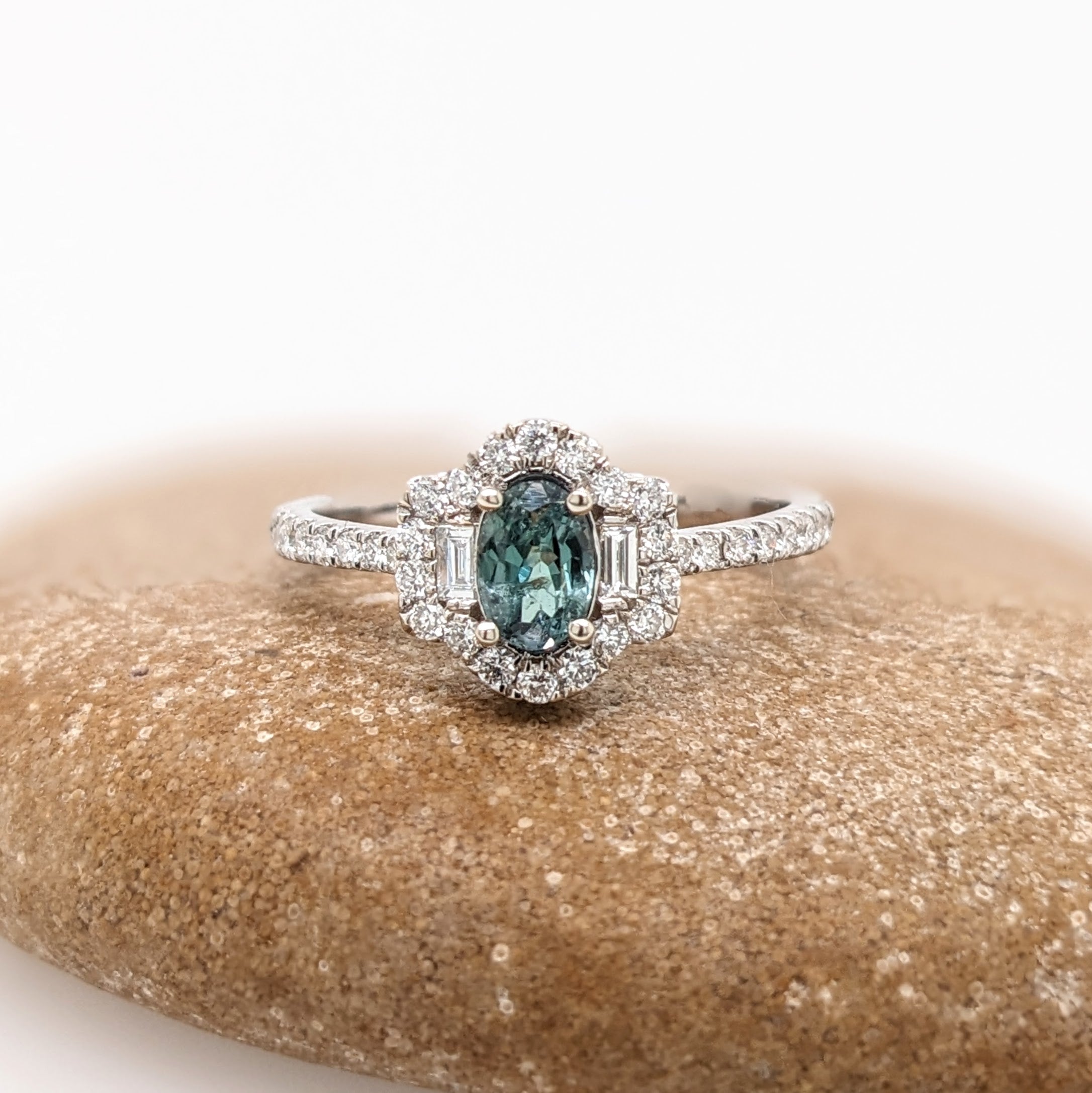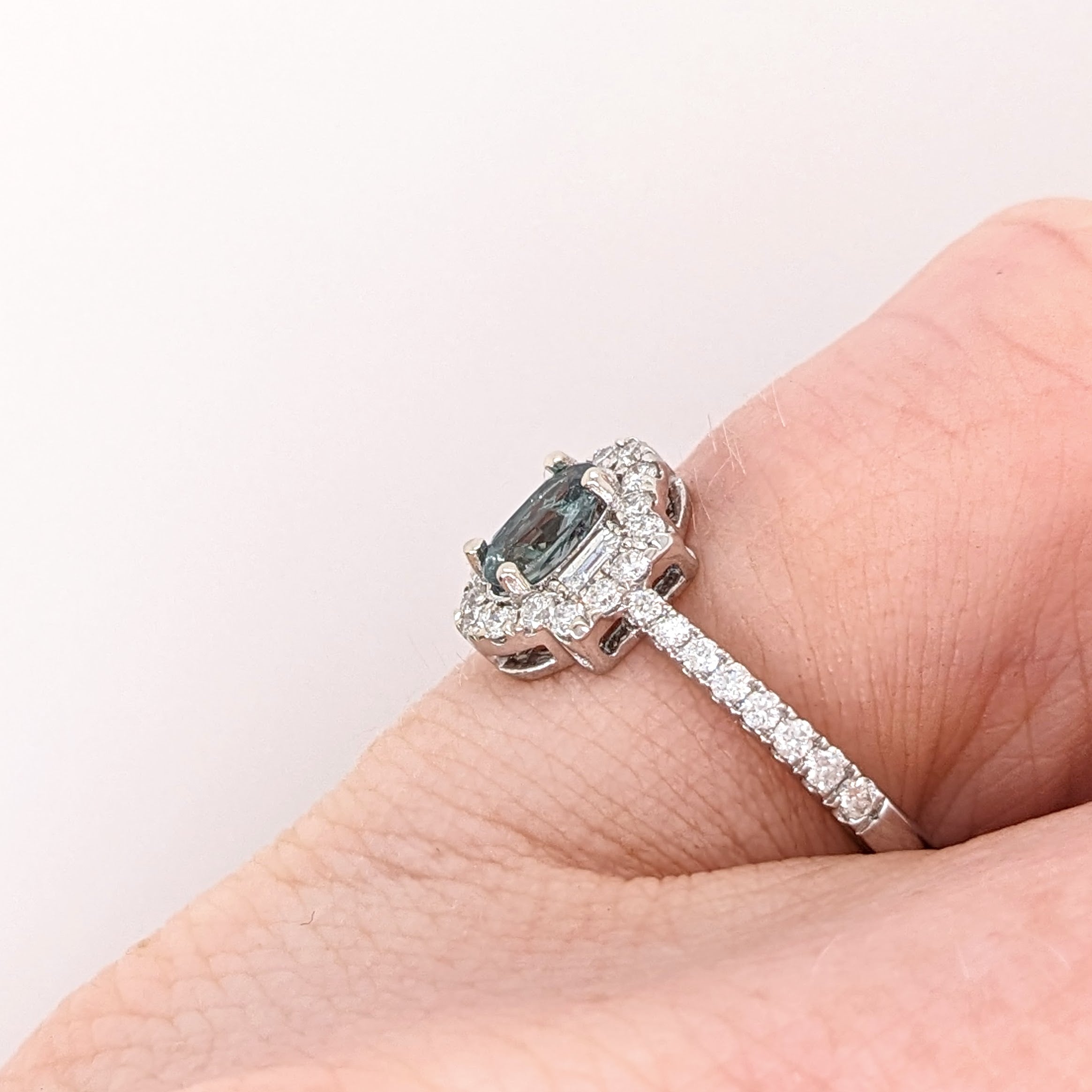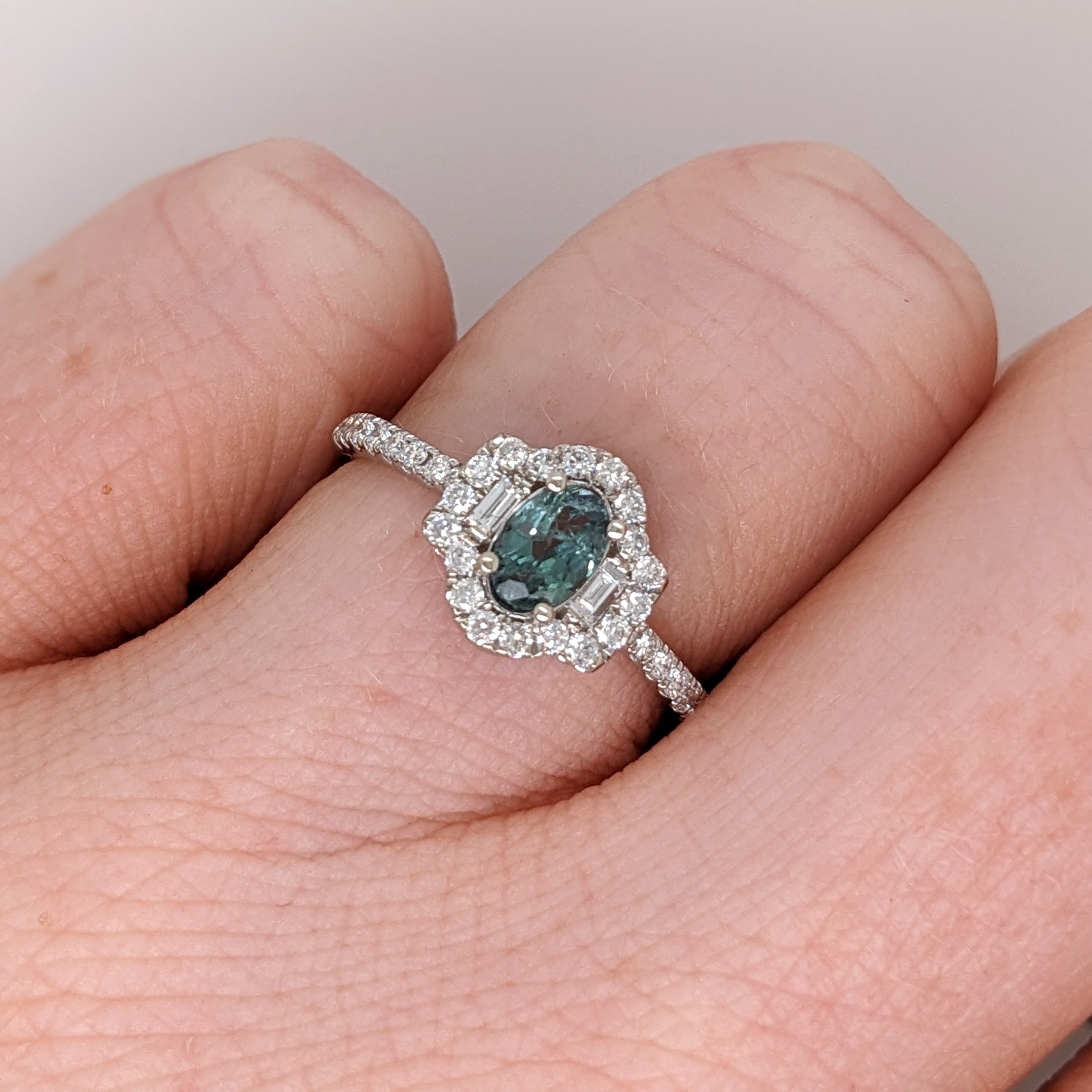 Unique Natural Color Changing Alexandrite Ring w Earth Mined Diamonds in Solid 14K White Gold | Oval 5x4mm | June Birthstone