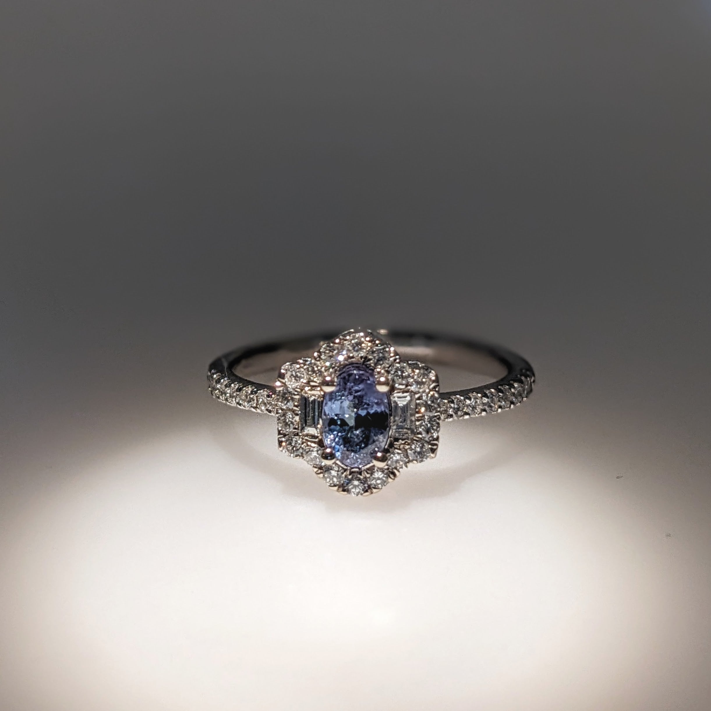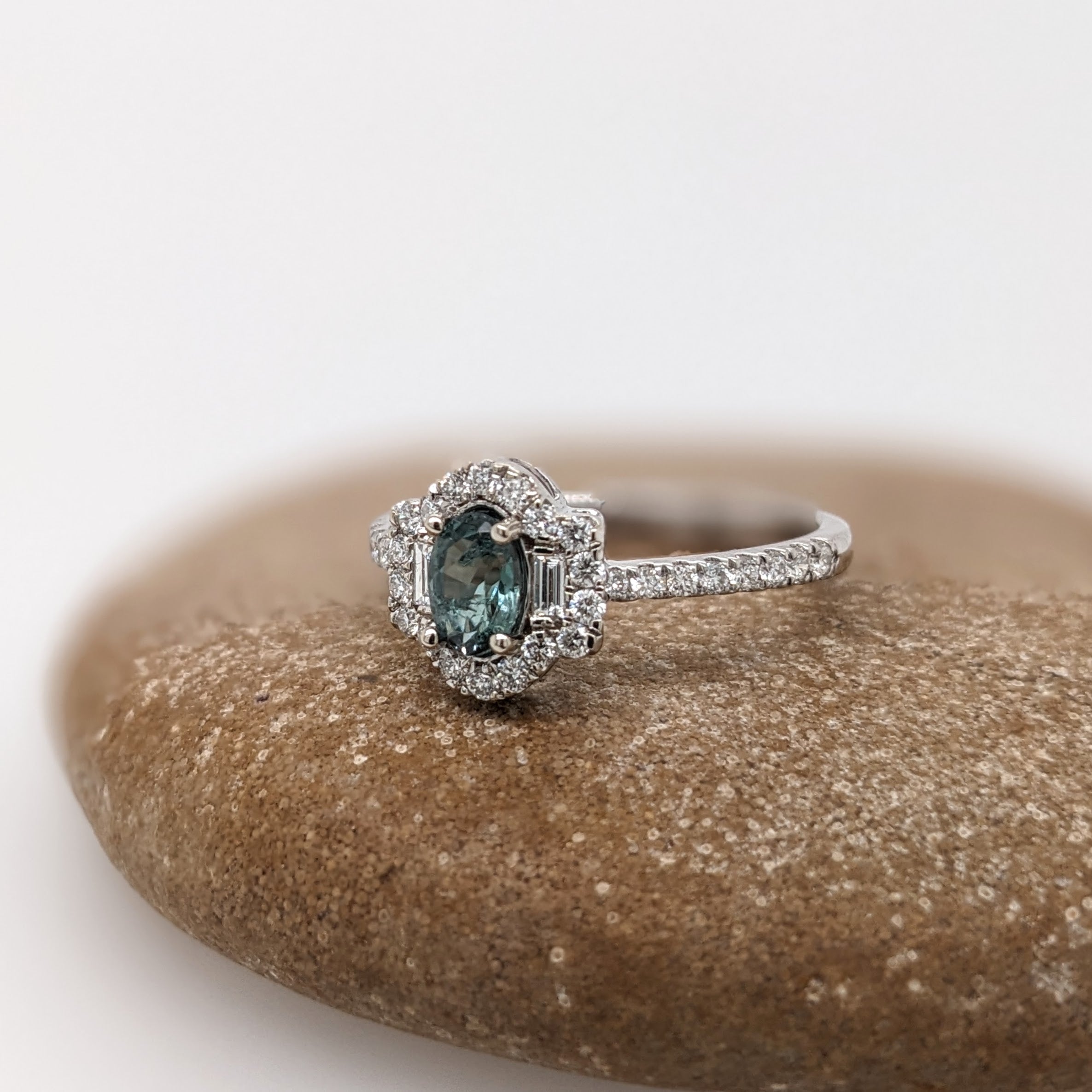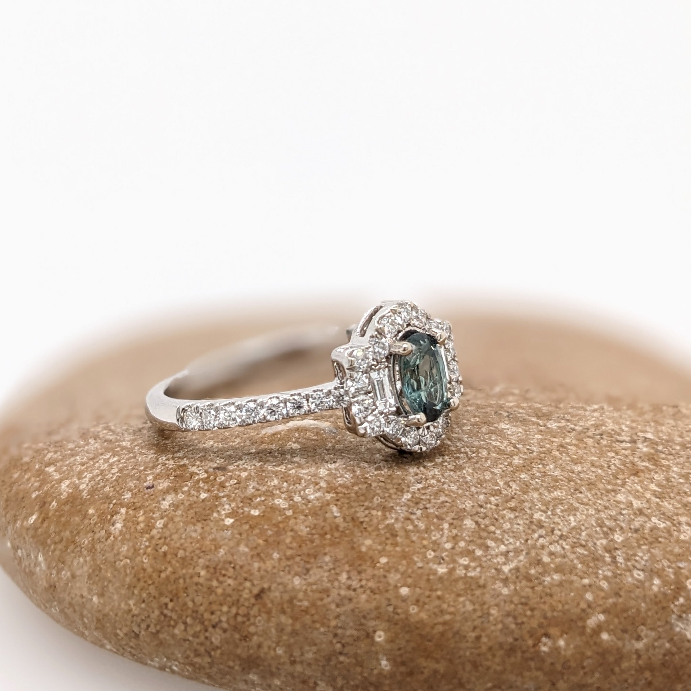 Unique Natural Color Changing Alexandrite Ring w Earth Mined Diamonds in Solid 14K White Gold | Oval 5x4mm | June Birthstone