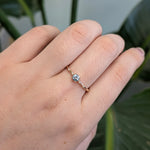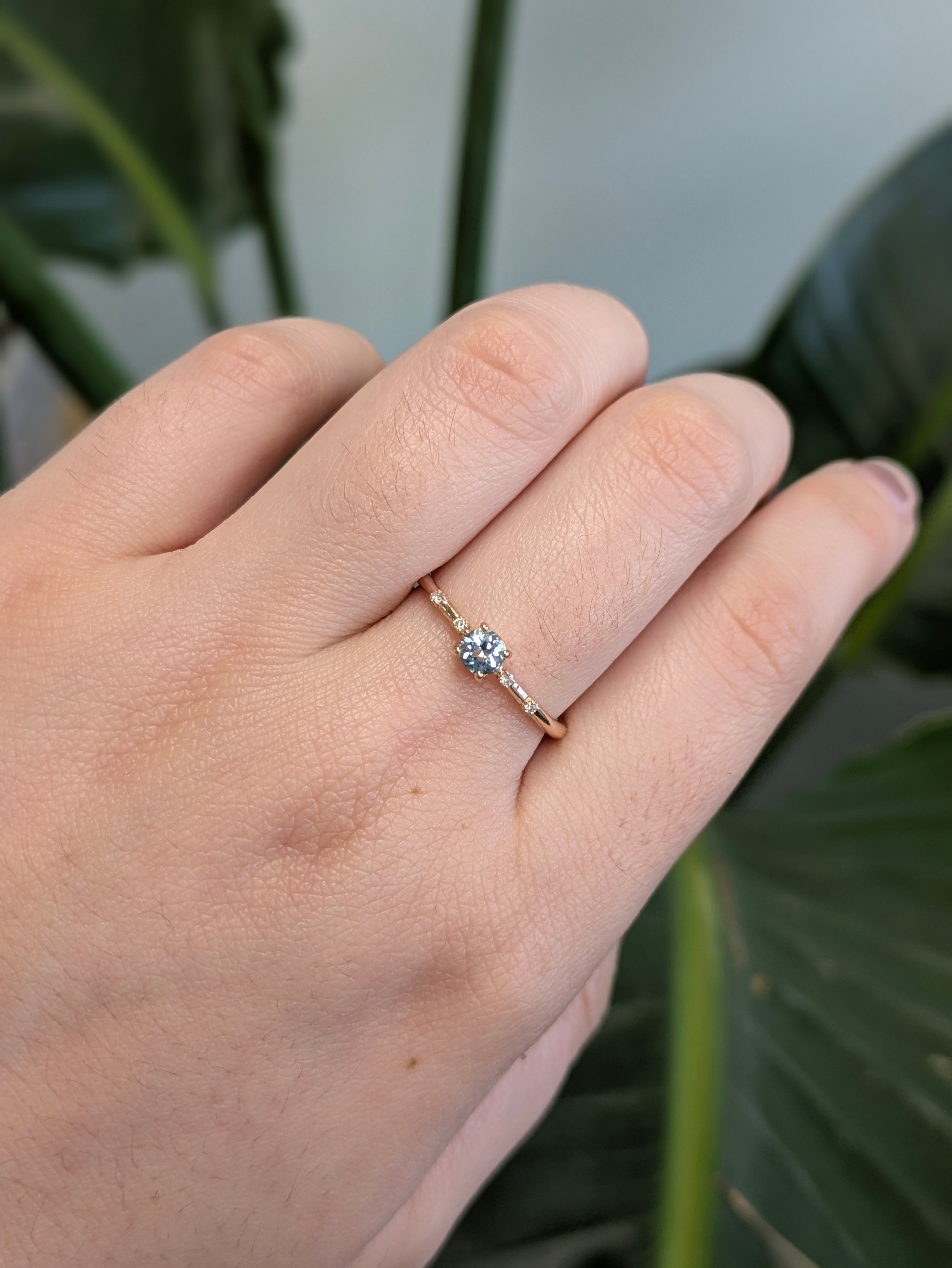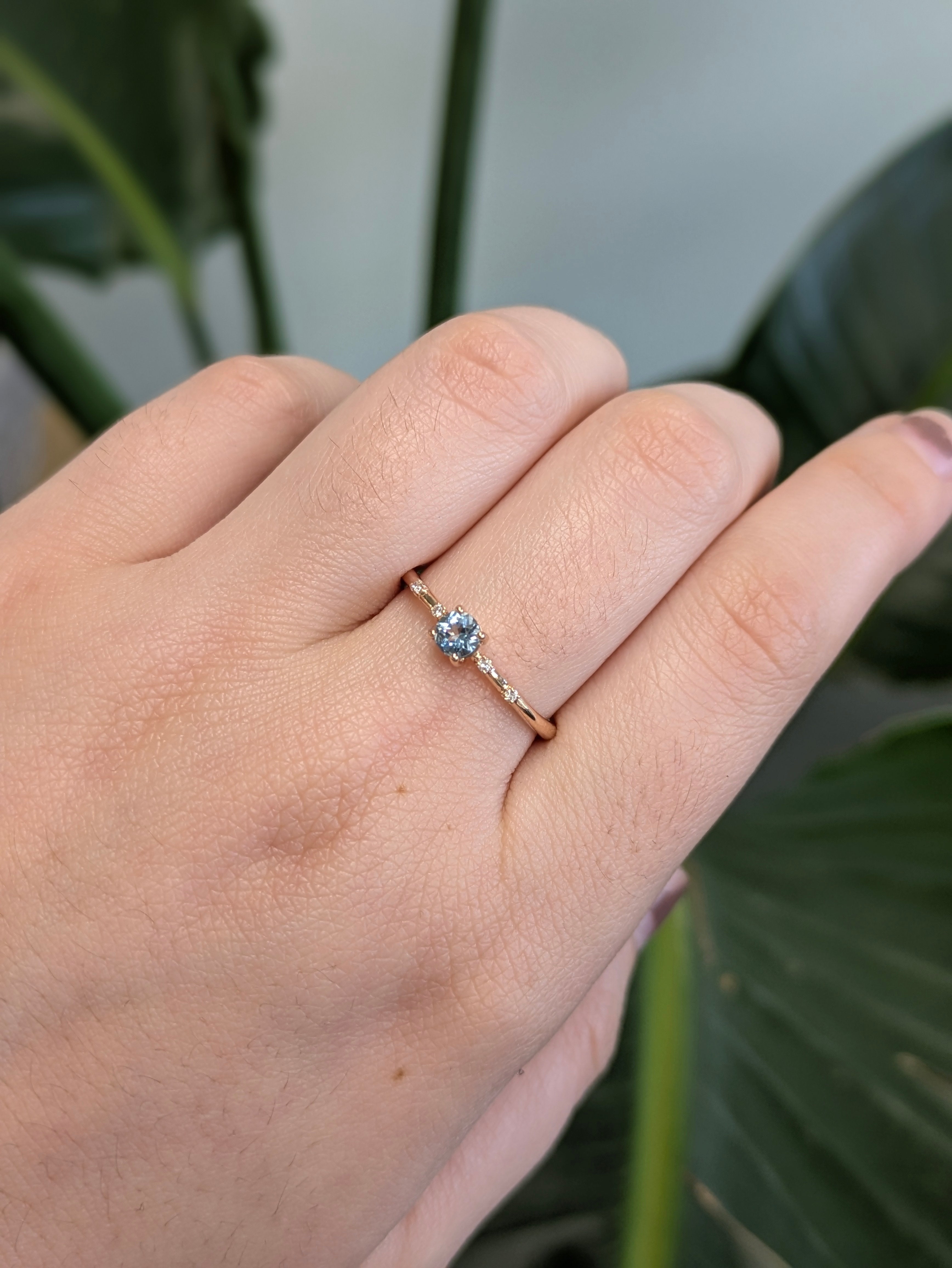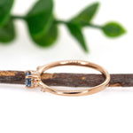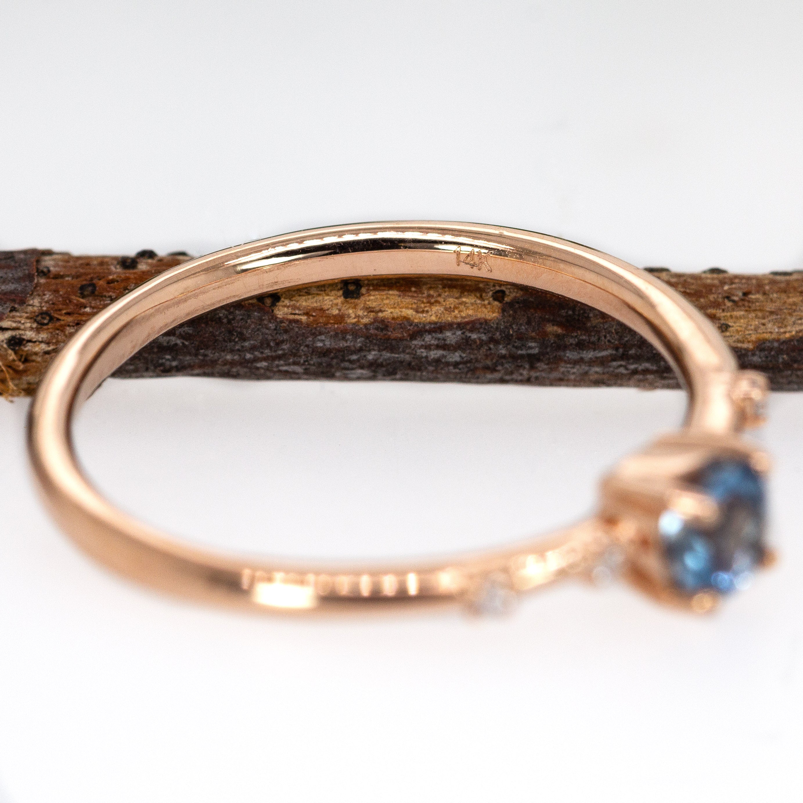 This beautifully crafted aquamarine ring is the definition of dainty romance. Set in glowing 14k rose gold, the 0.22-carat aquamarine shimmers with calm blue tones, complemented by natural diamond accents that add a gentle sparkle. Ideal for celebrating life’s small moments or giving “just because,” this piece makes a dreamy gift for someone special—or yourself.